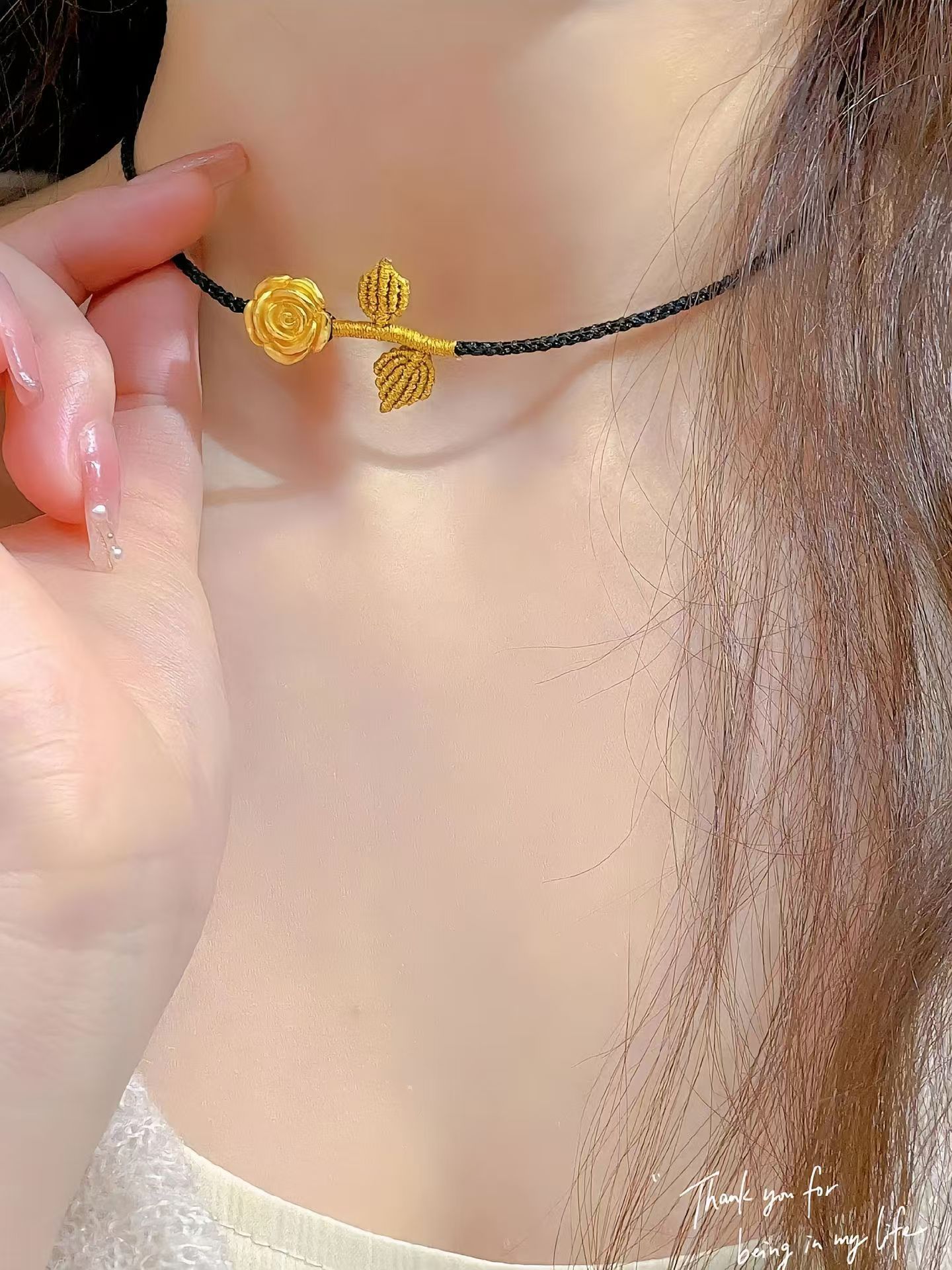 Color: Rose necklace (black rope)
