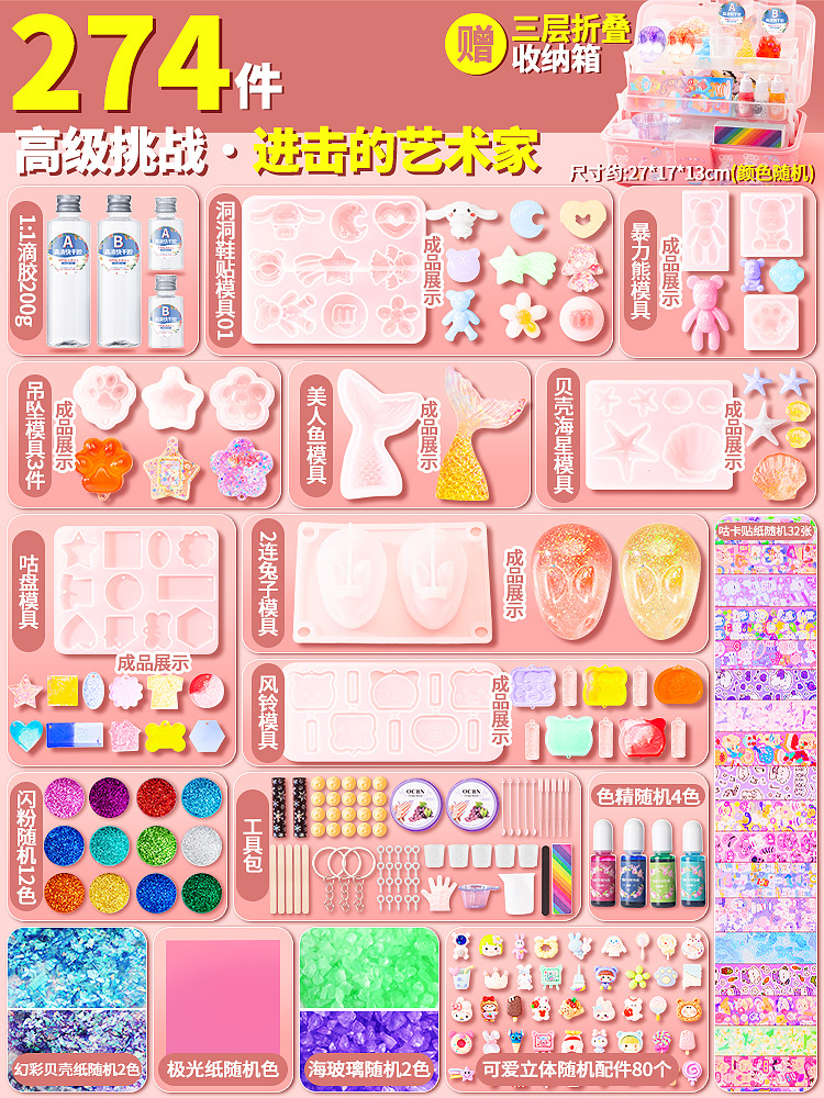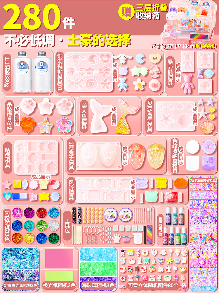 Color: Highly recommended⭐Epoxy diy wangba's way 278-piece set ([free three-layer storage box])