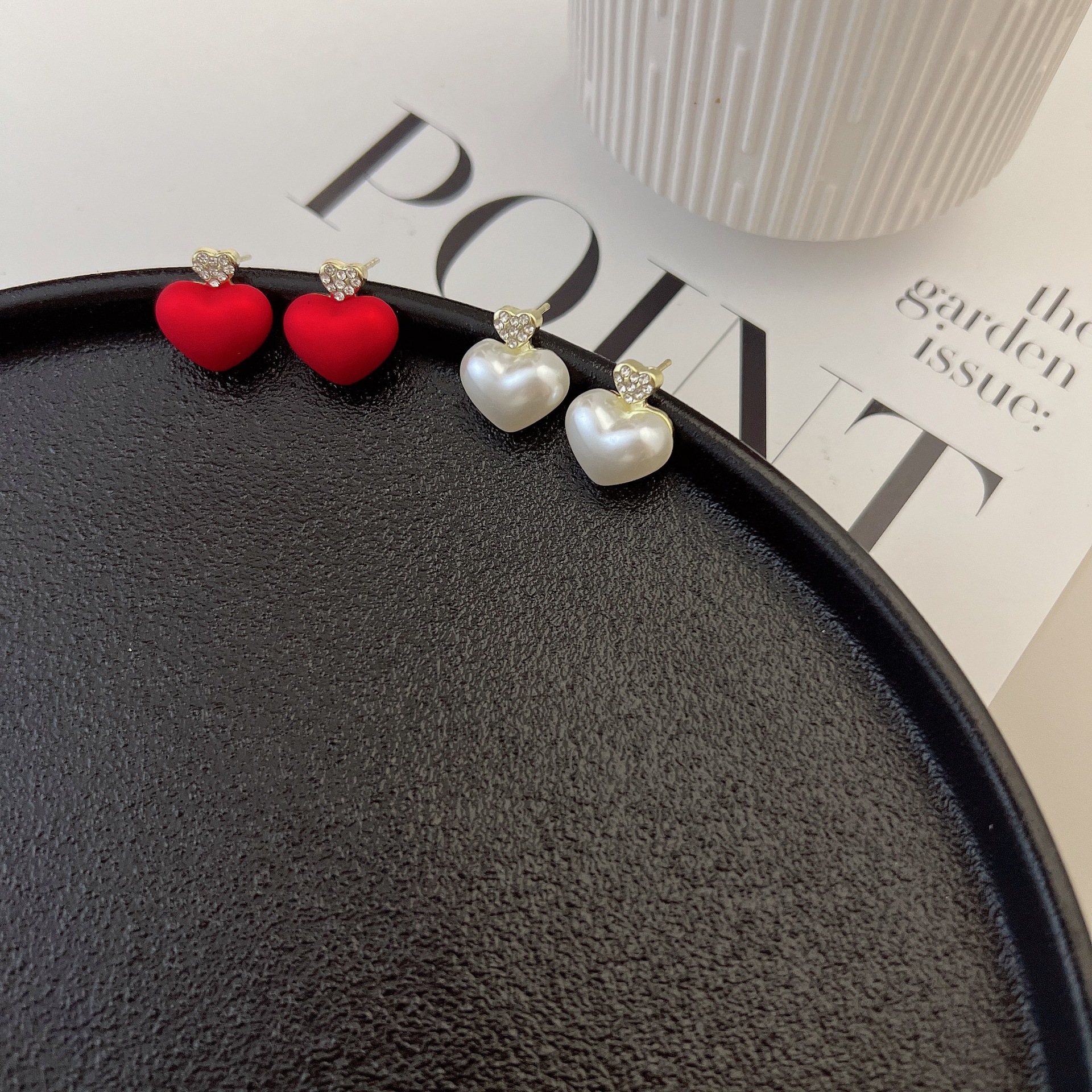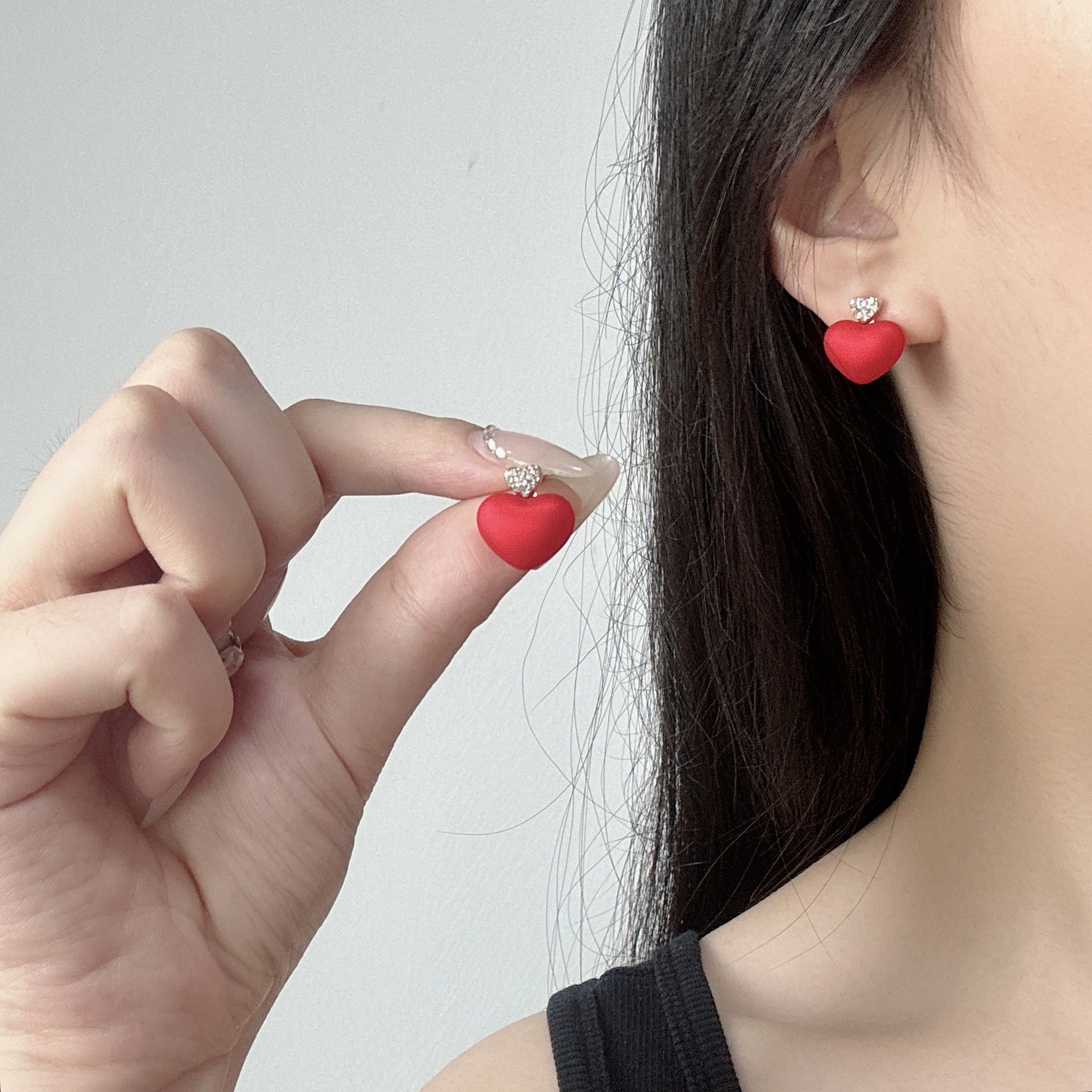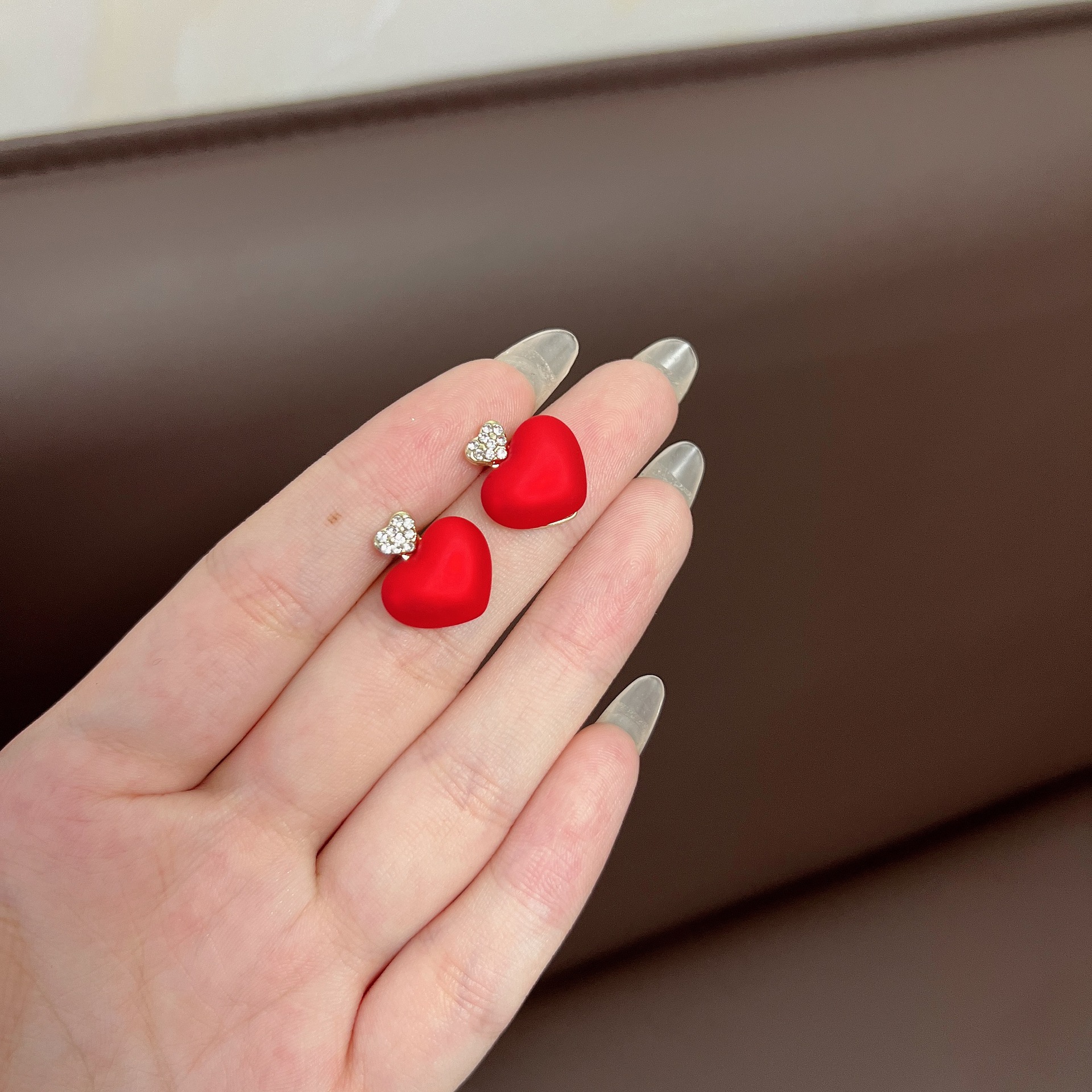 Korean-style Simple Autumn and Winter Explosions Diamond-encrusted Red Love Earrings Unique Design Small and Exquisite Gentle Ear Accessories