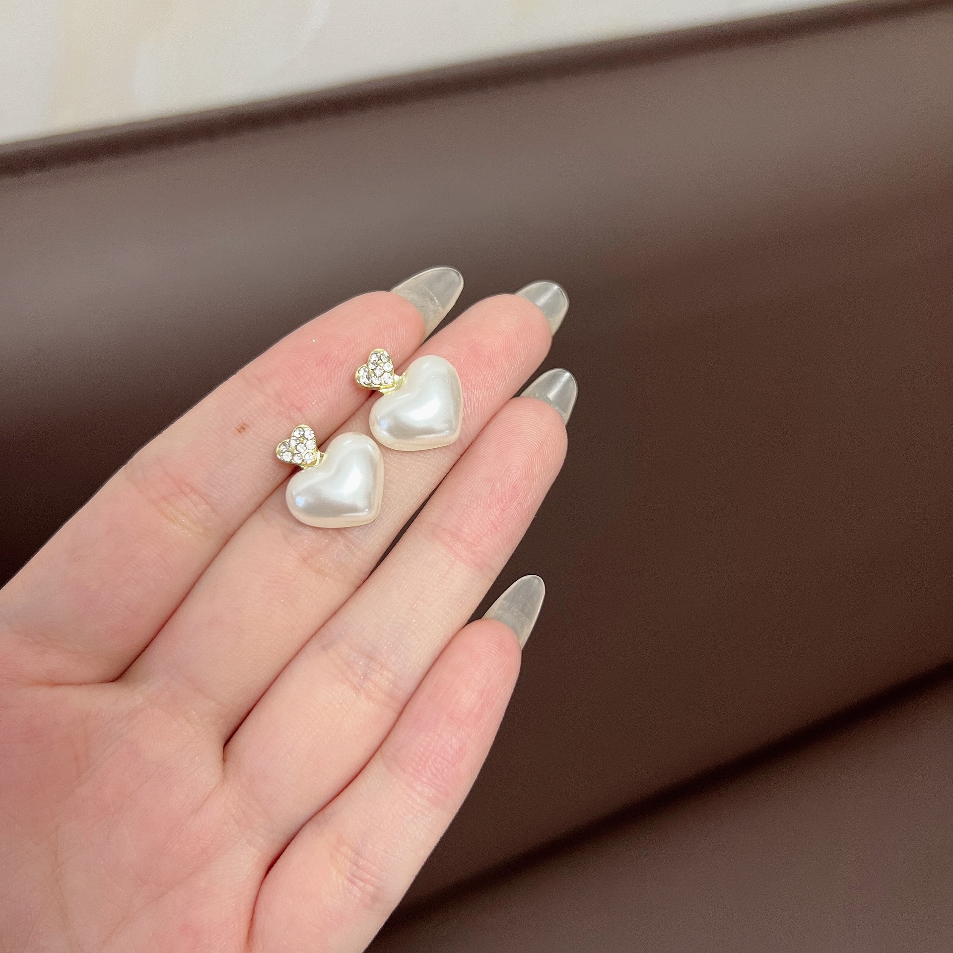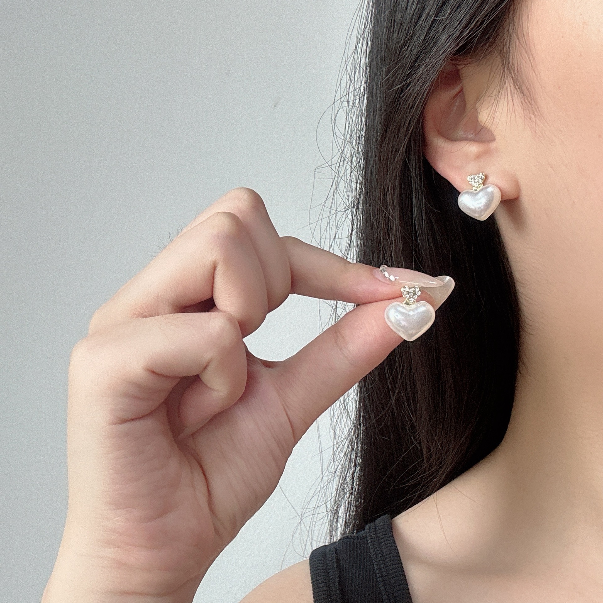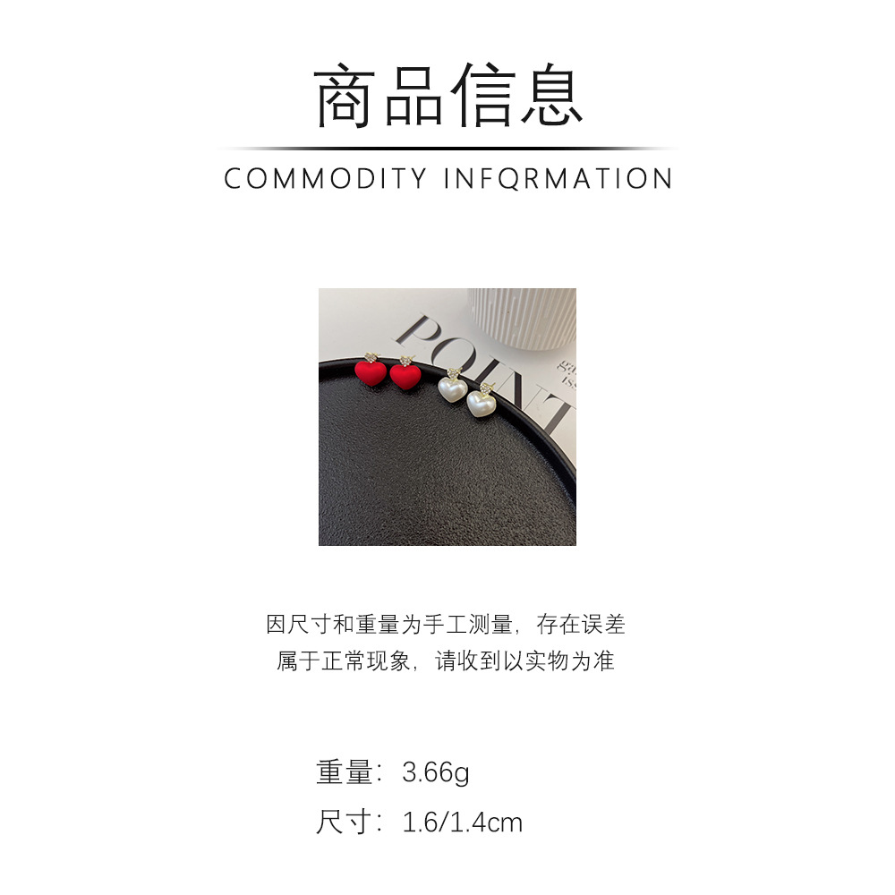 Korean-style Simple Autumn and Winter Explosions Diamond-encrusted Red Love Earrings Unique Design Small and Exquisite Gentle Ear Accessories