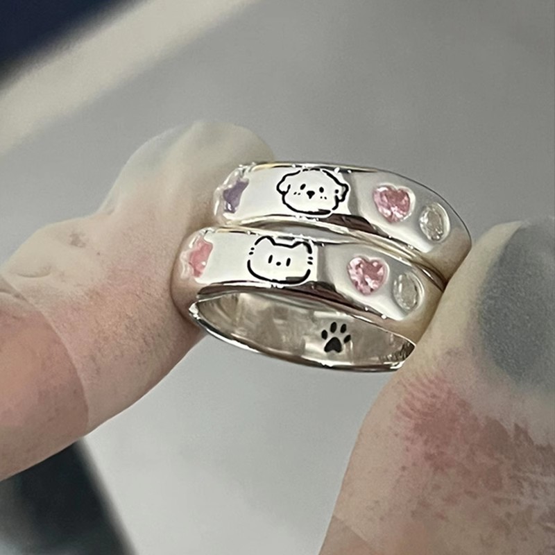 New puppy kitten ring female micro inlaid love zircon cat claw sweet opening all-match finger ring for girlfriends