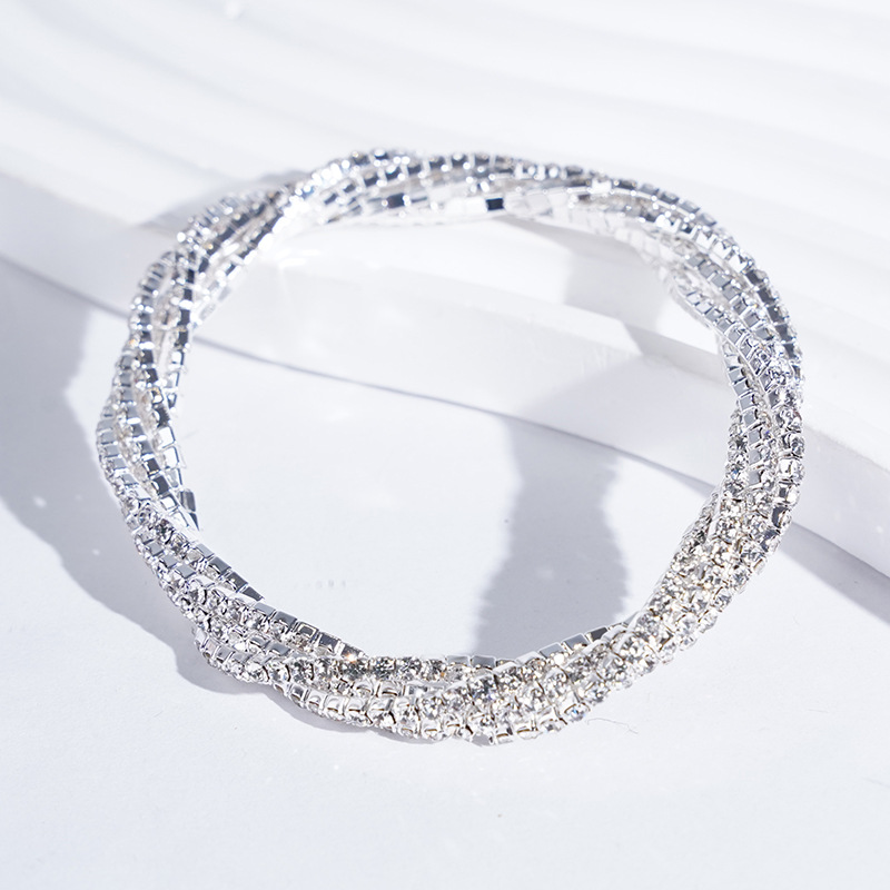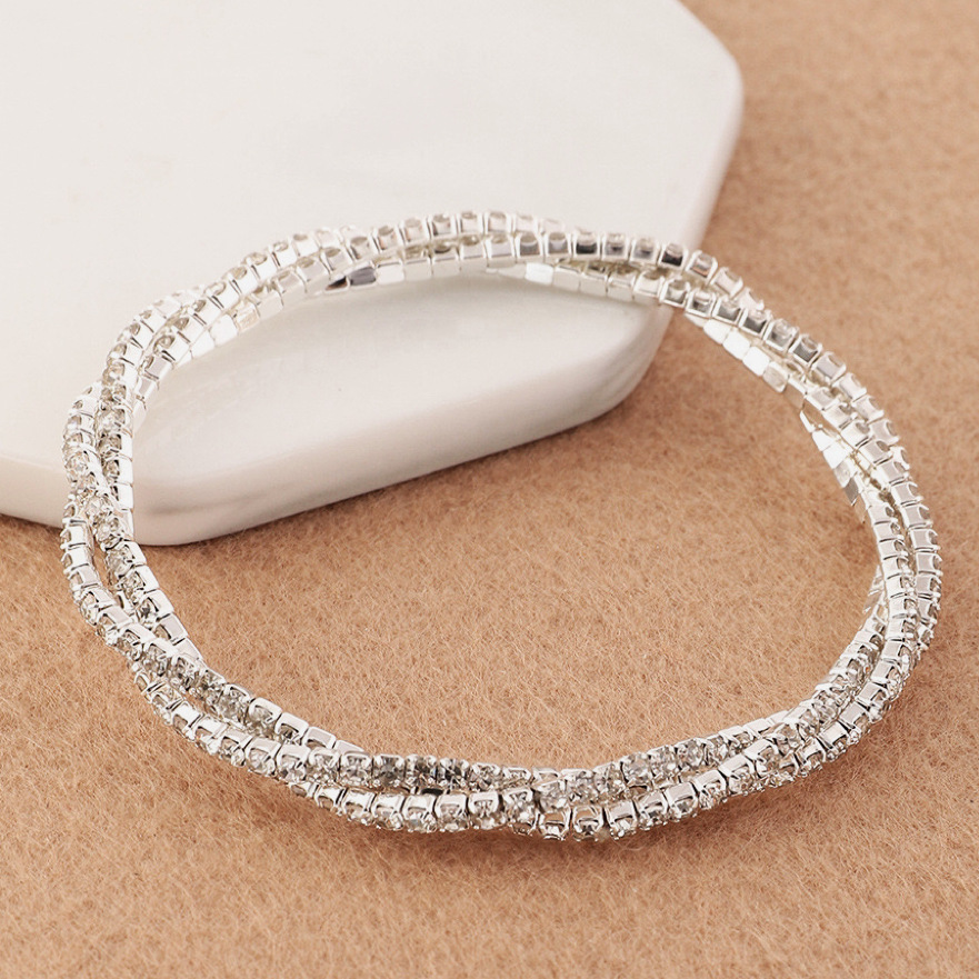 Color: Silver plated white diamond 3 strips