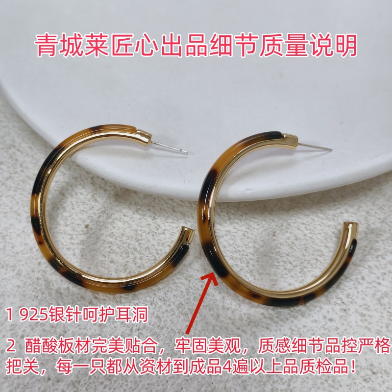 Early spring leopard print exaggerated large hoop earrings women's 2025 new high-end temperament C- type silver needle earrings earrings