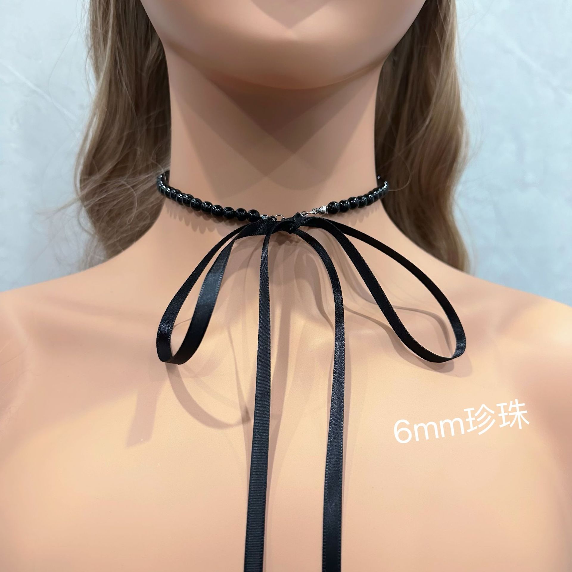 Color: 6mm black pearl (ribbon)