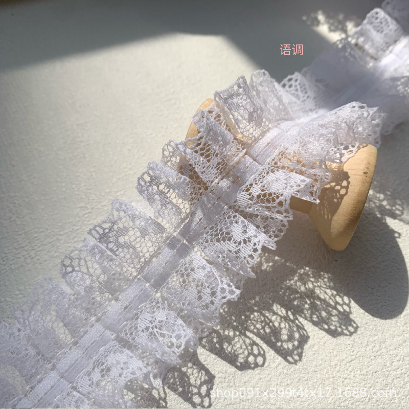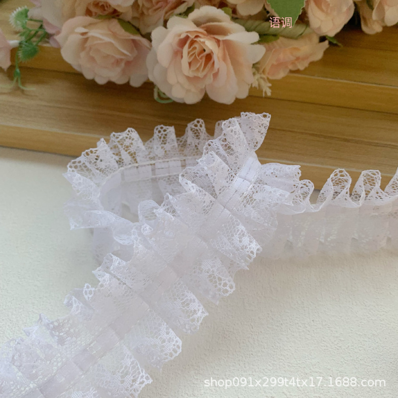 4cm Wide Handmade DIY White Lace Pleated Hair Band Lolita Doll Accessories Pleated Decorative Lace