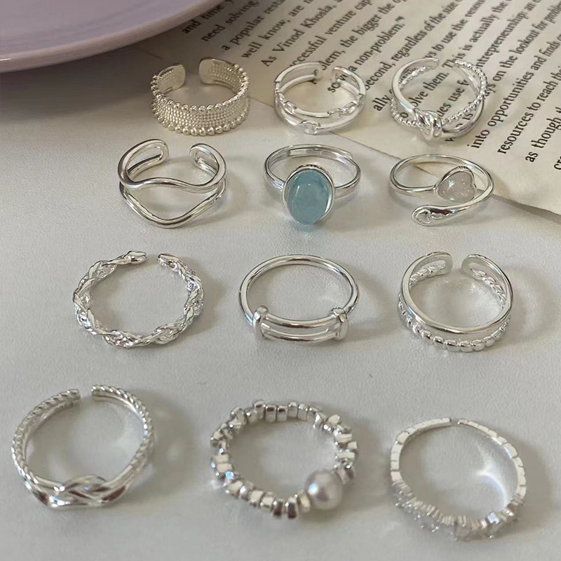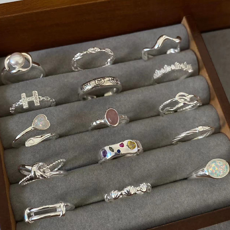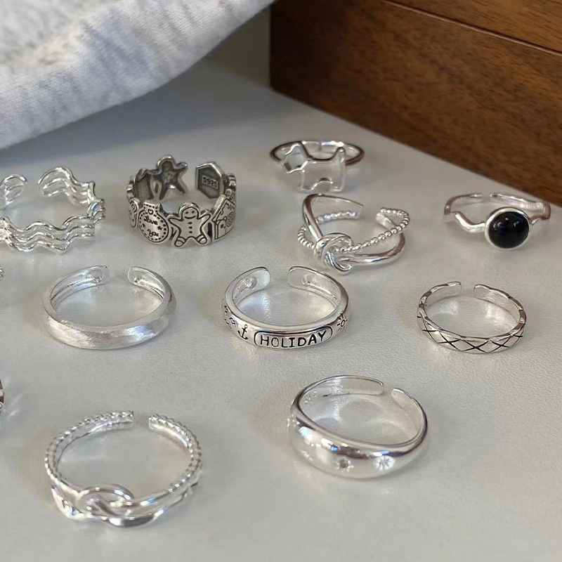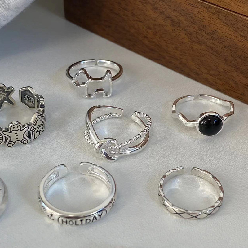 Korean Style 925 Sterling Silver Simple Style Double-Layer Cross Knot Ring Women's All-Match Niche Personalized Minimalist Style Hand Jewelry