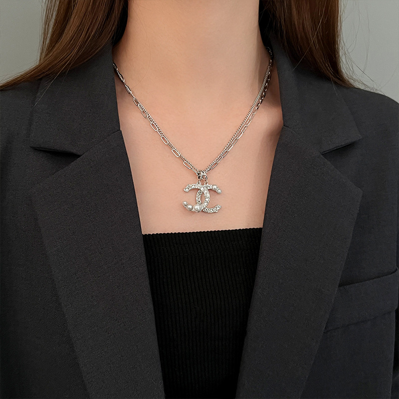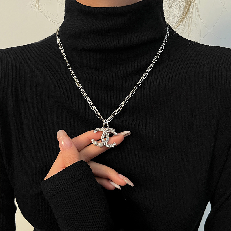 Cross-border Douyin Xiangfeng Double C Light Luxury Niche Design Sense Autumn and Winter Simple Fashion Personality Long Woolen Chain