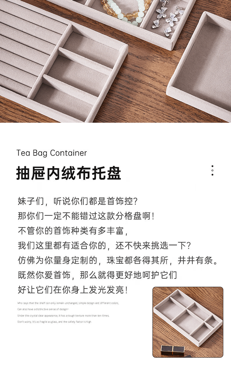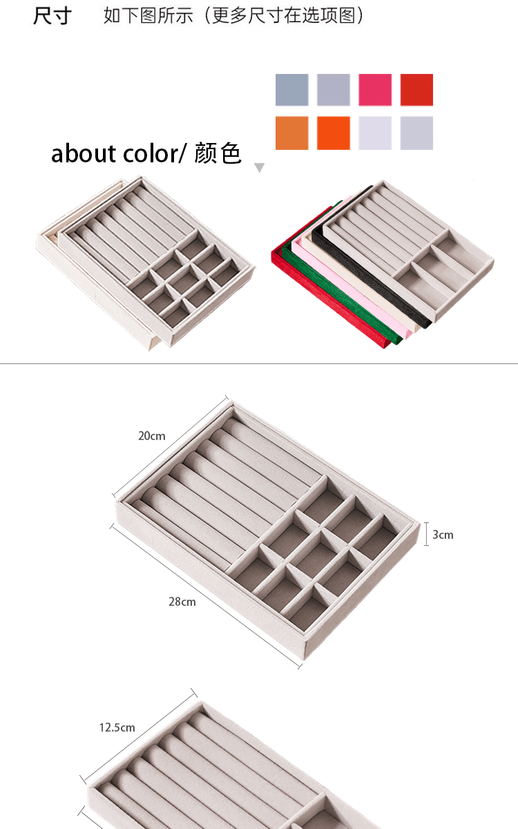 Applicable Scenarios: Gold store jewelry display tray, drawer jewelry storage, jewelry storage box, home jewelry storage, jewelry storage box, cross-border exclusive, jewelry storage tray