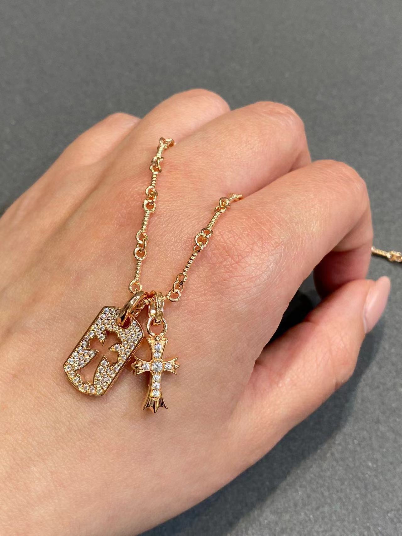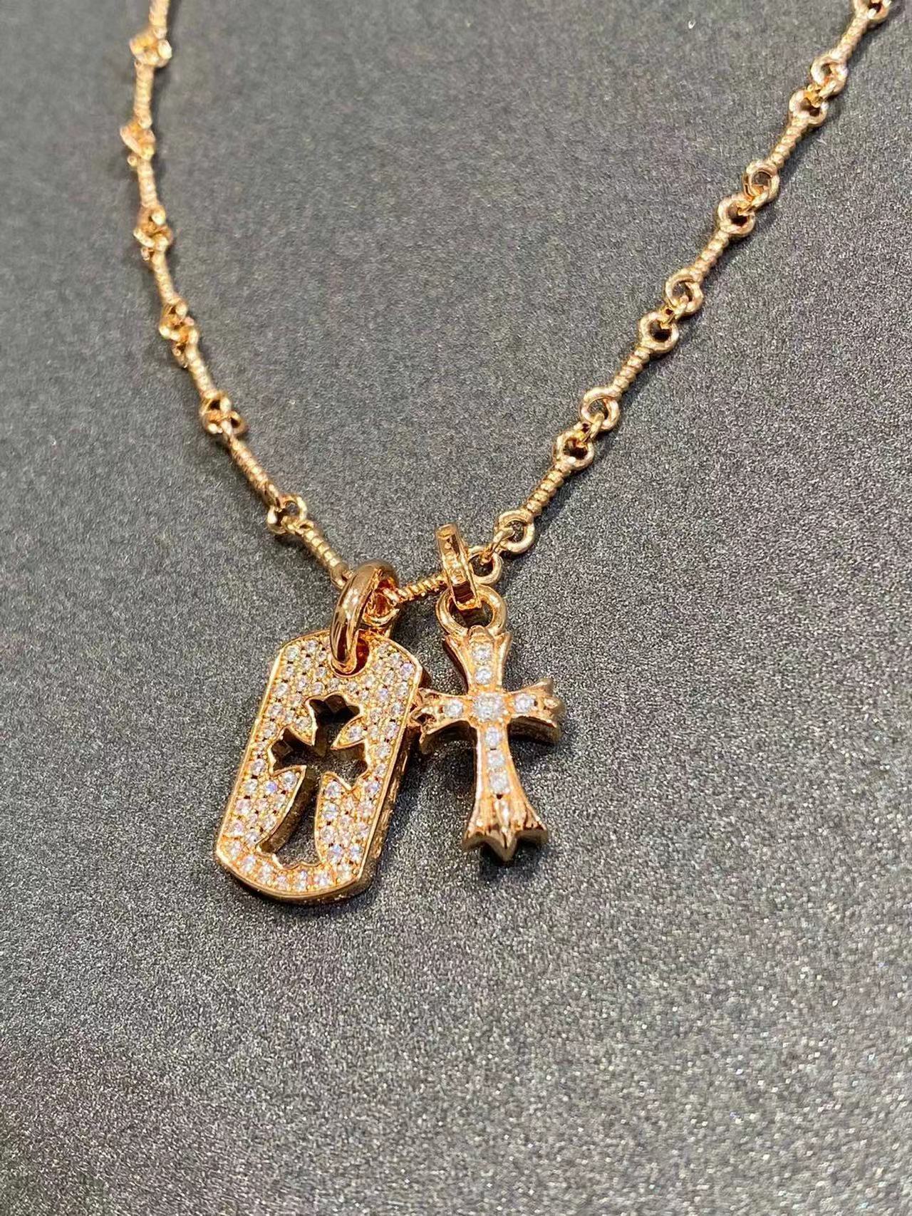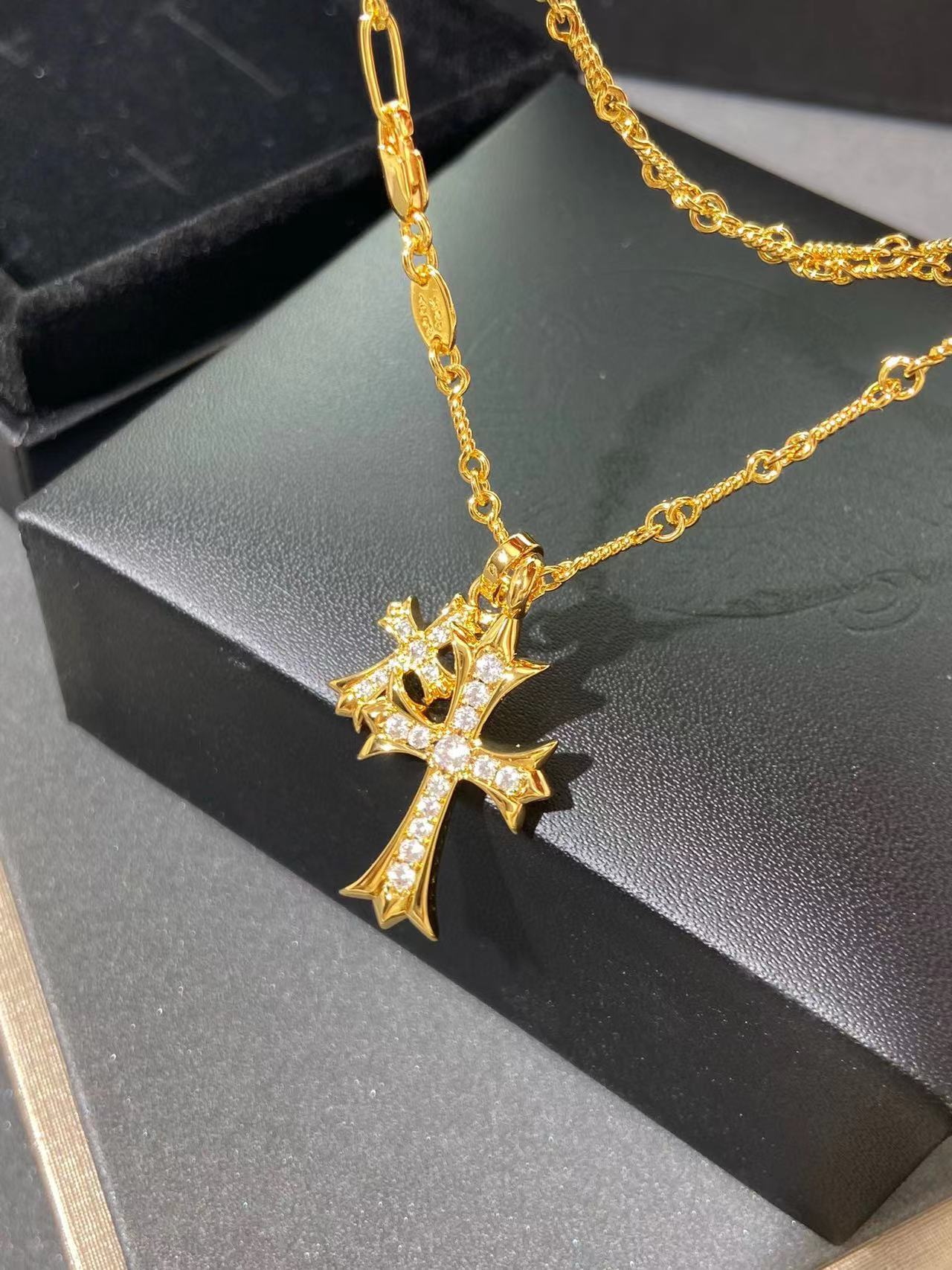 925 Sterling Silver High Version Croix for Women Double Cross Necklace Plated with 18K Gold for Men and Women Retro Full Diamond Shield Lifting