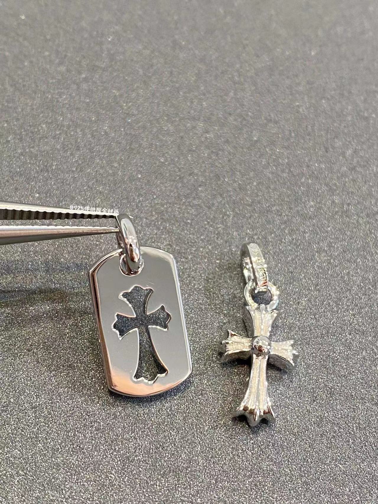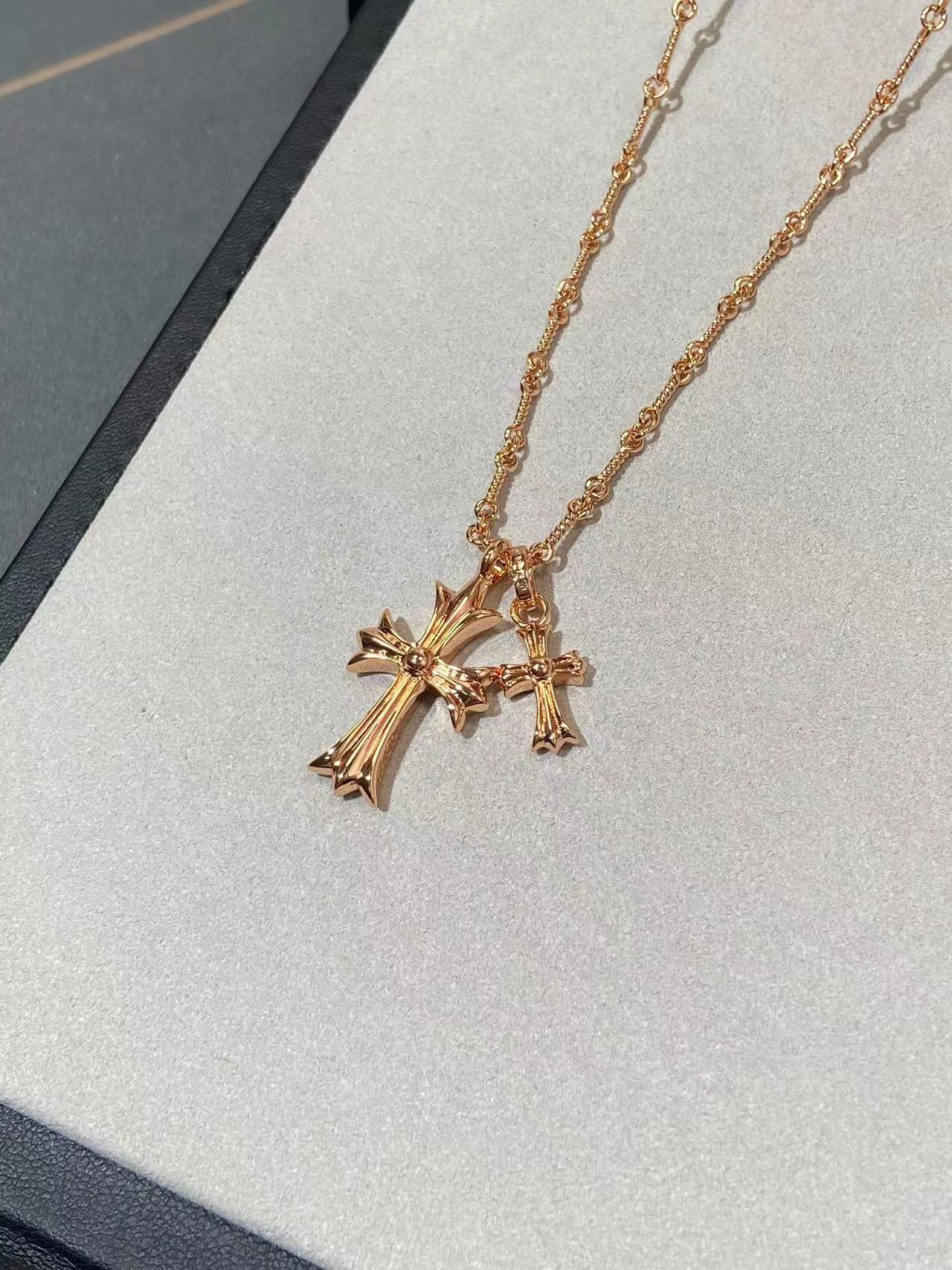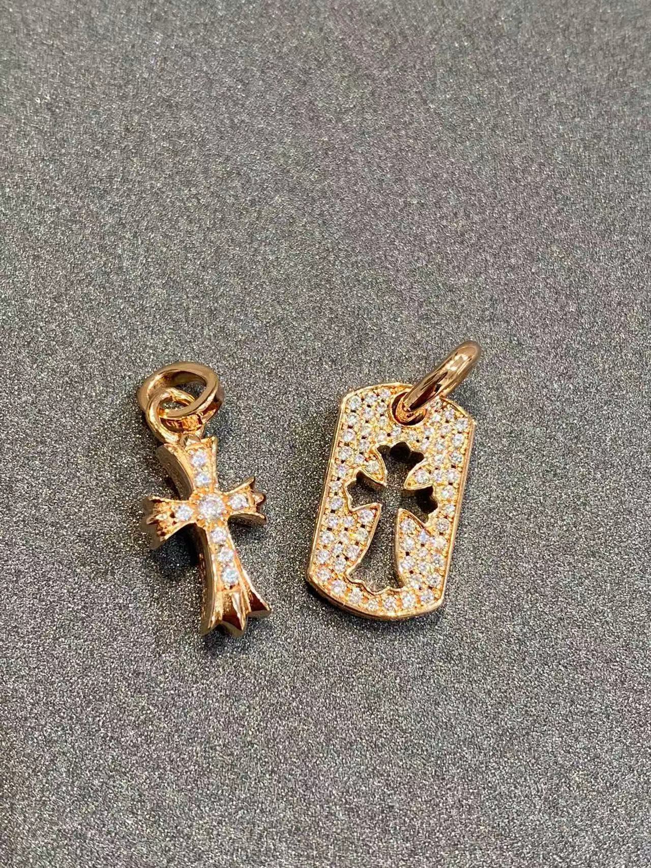 925 Sterling Silver High Version Croix for Women Double Cross Necklace Plated with 18K Gold for Men and Women Retro Full Diamond Shield Lifting