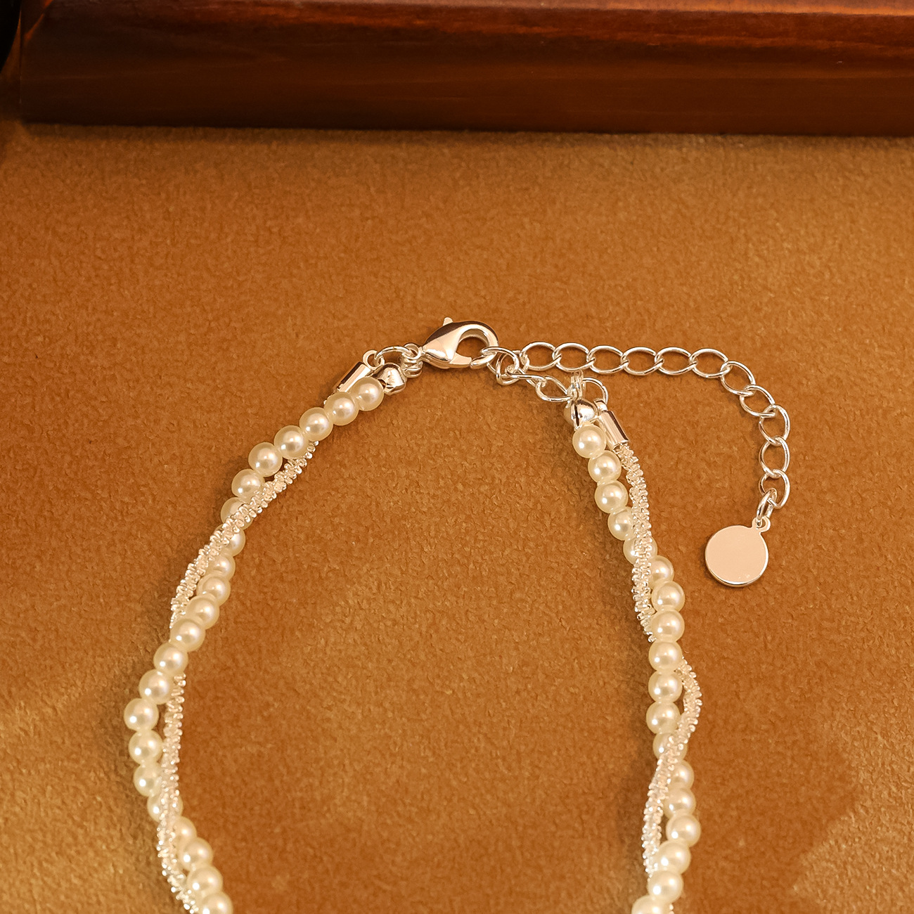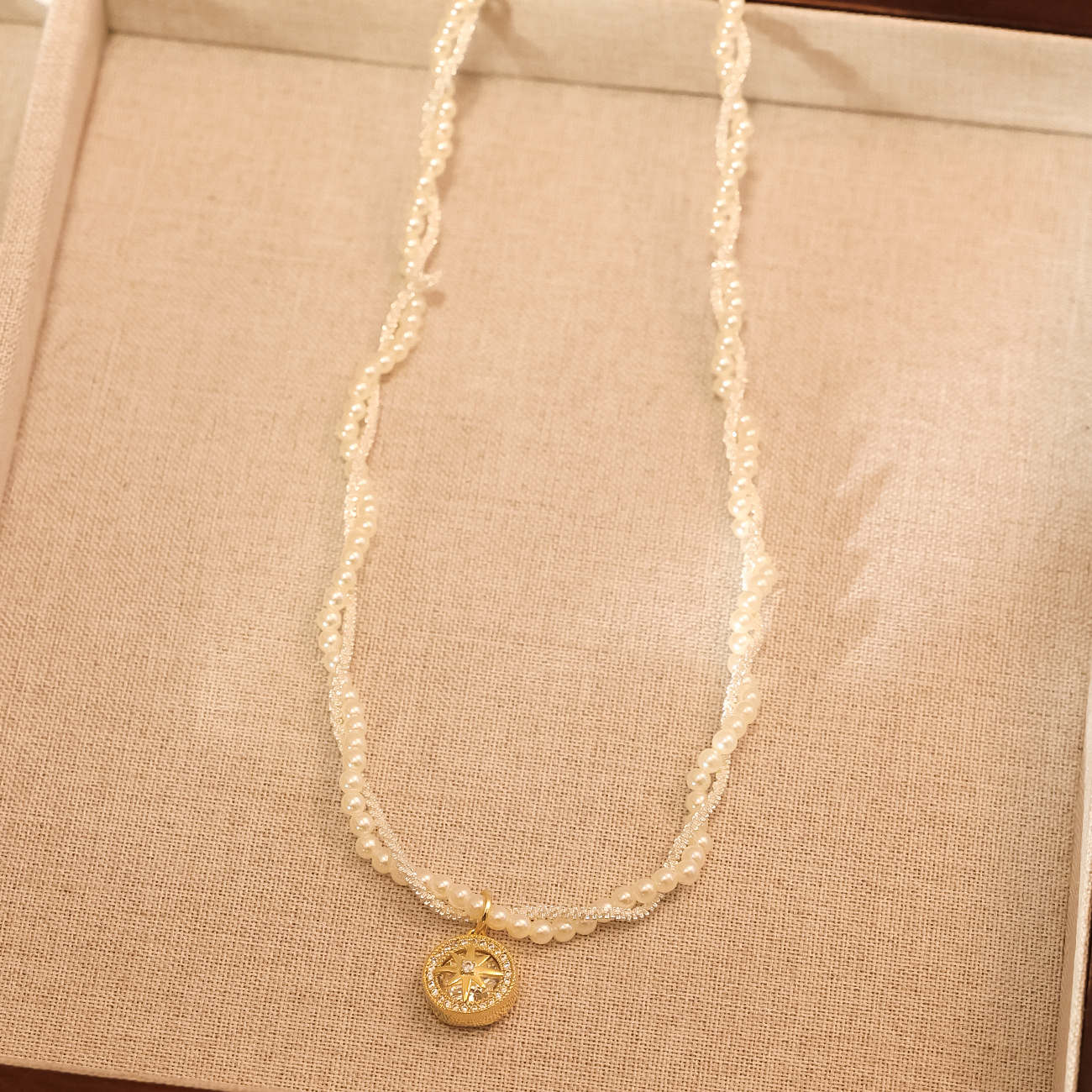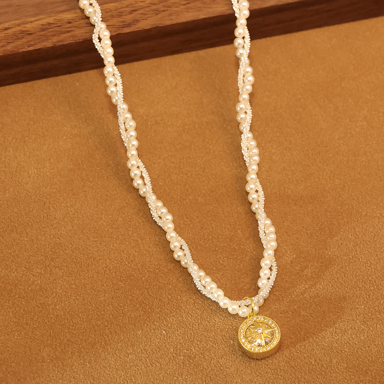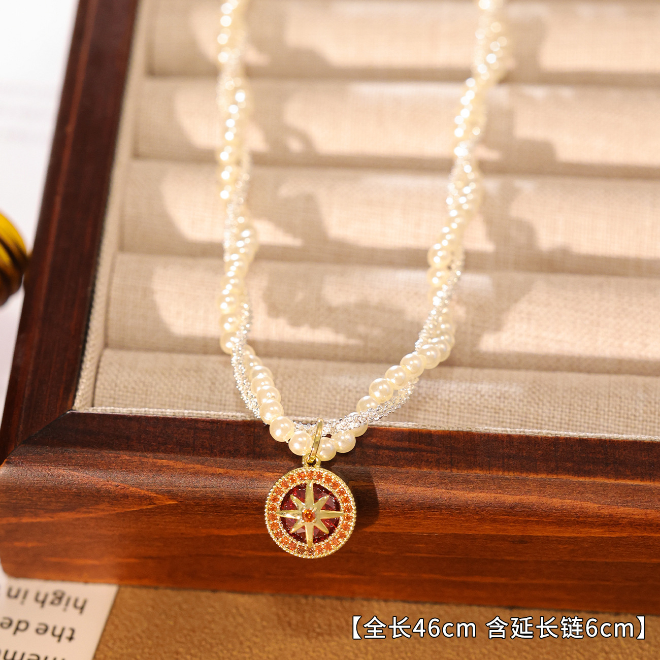 Eni Baini Double-layer Wrap Pearl Eight Mans Star Necklace Light Luxury Niche Design Sense Real Gold Electroplated Flash Diamond Necklace