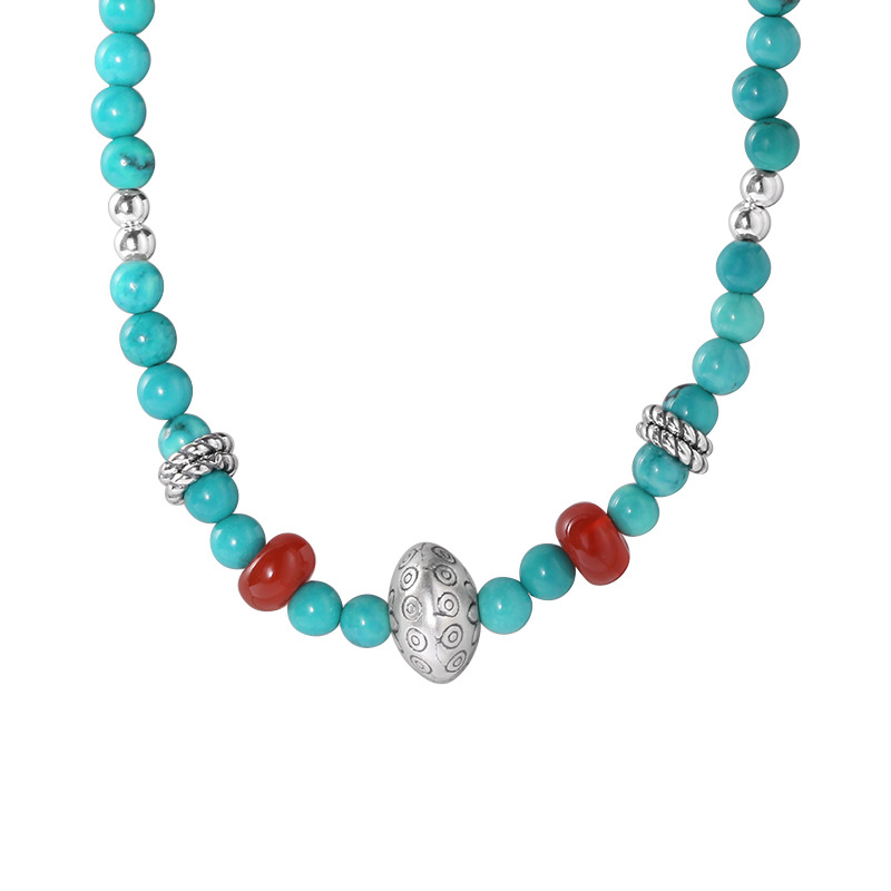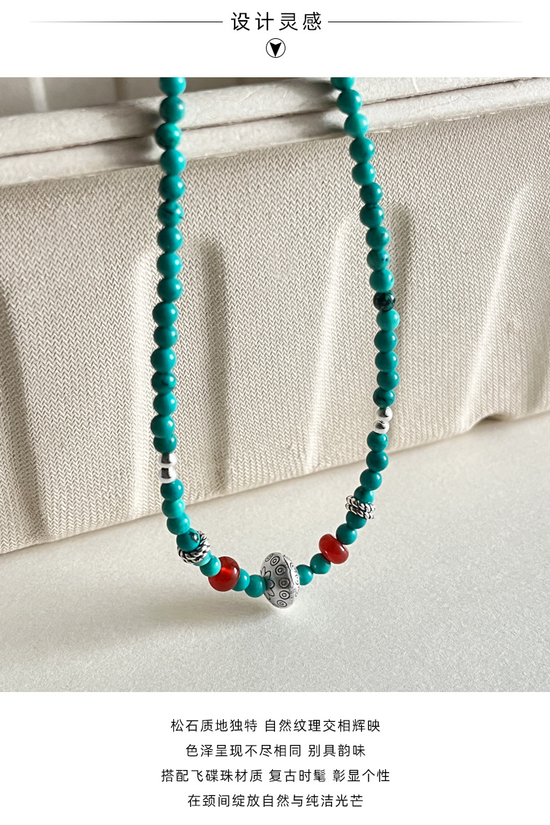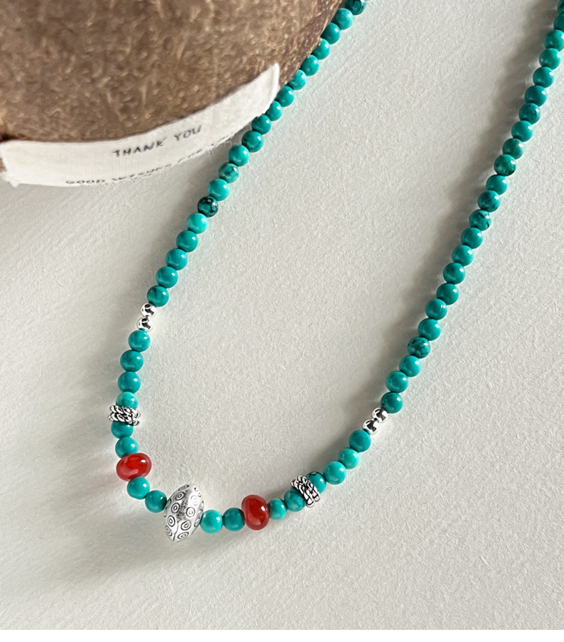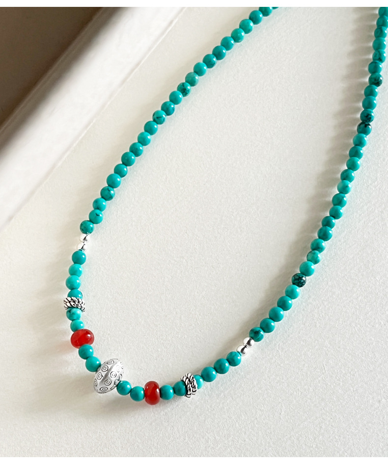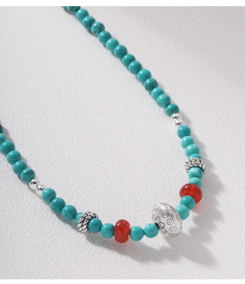 925 sterling silver synthetic turquoise disc necklace handmade beaded fashion retro ethnic style temperament clavicle chain N1179