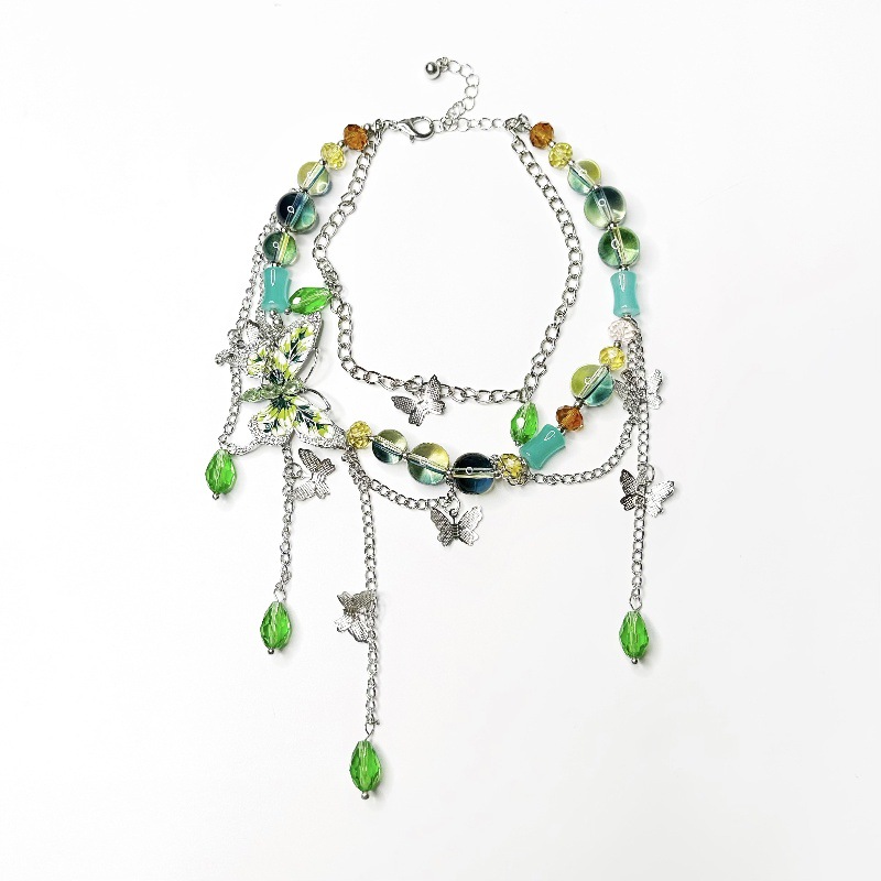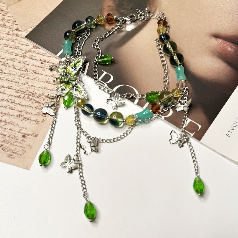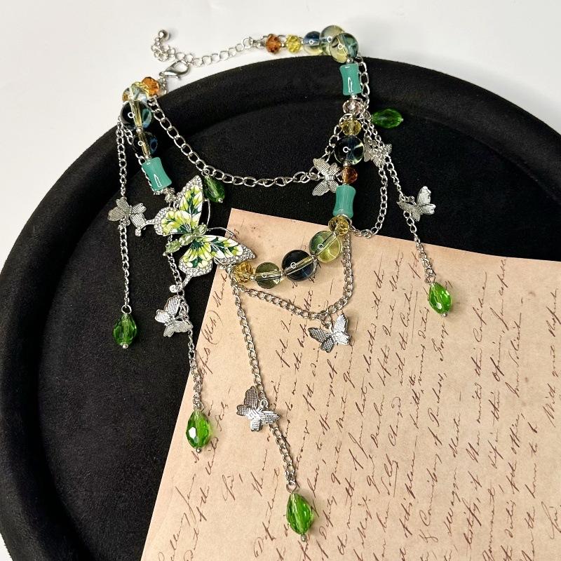 Yabifeng Culture Green Zircon Butterfly Necklace Women's Clavicle Chain Choker Light Luxury Niche Y2K Accessories
