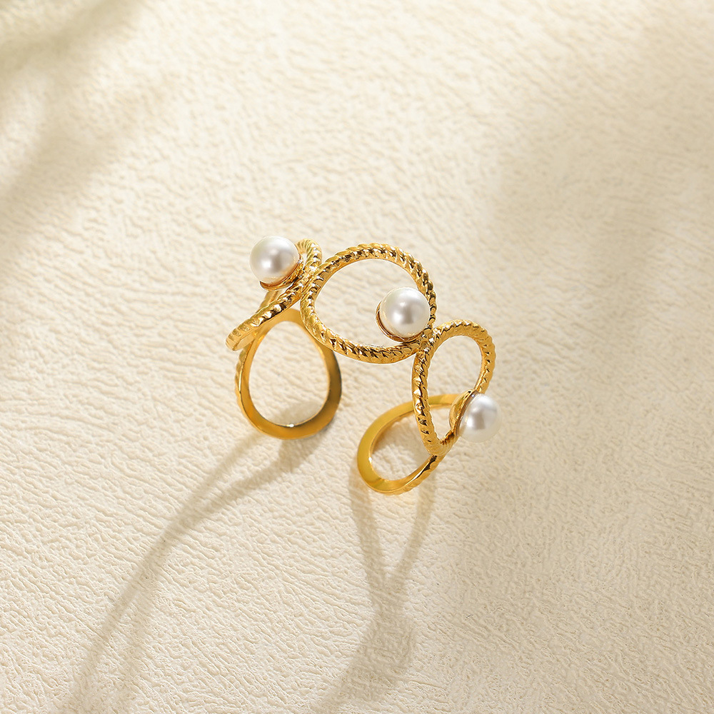 Cross-border stainless steel imitation pearl hollow geometric opening ring high sense mix and match temperament jewelry ring in stock batch