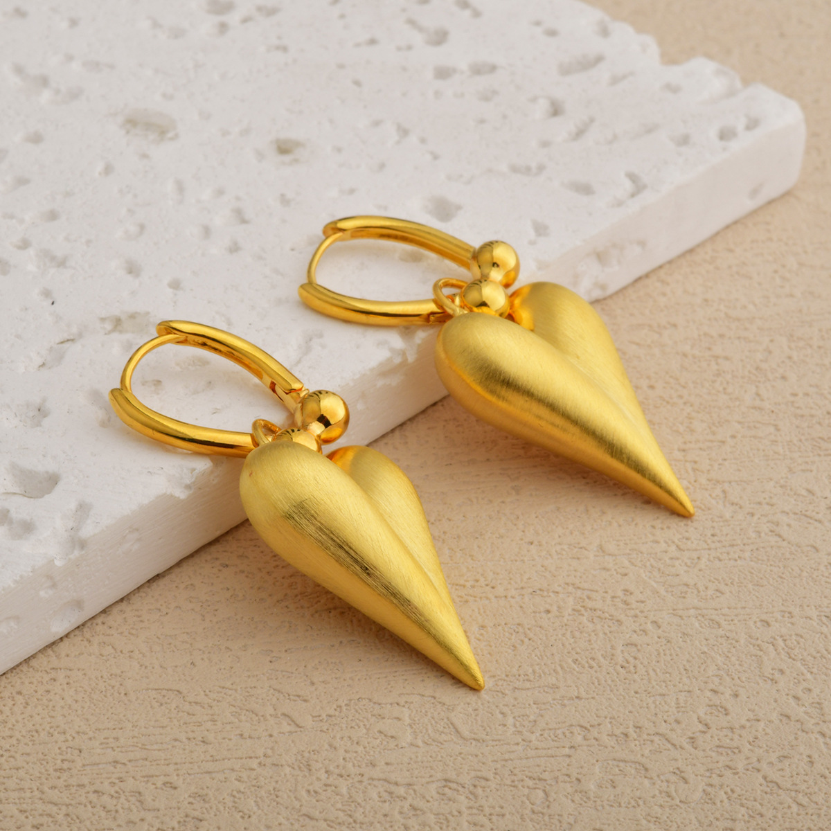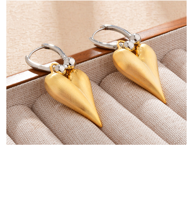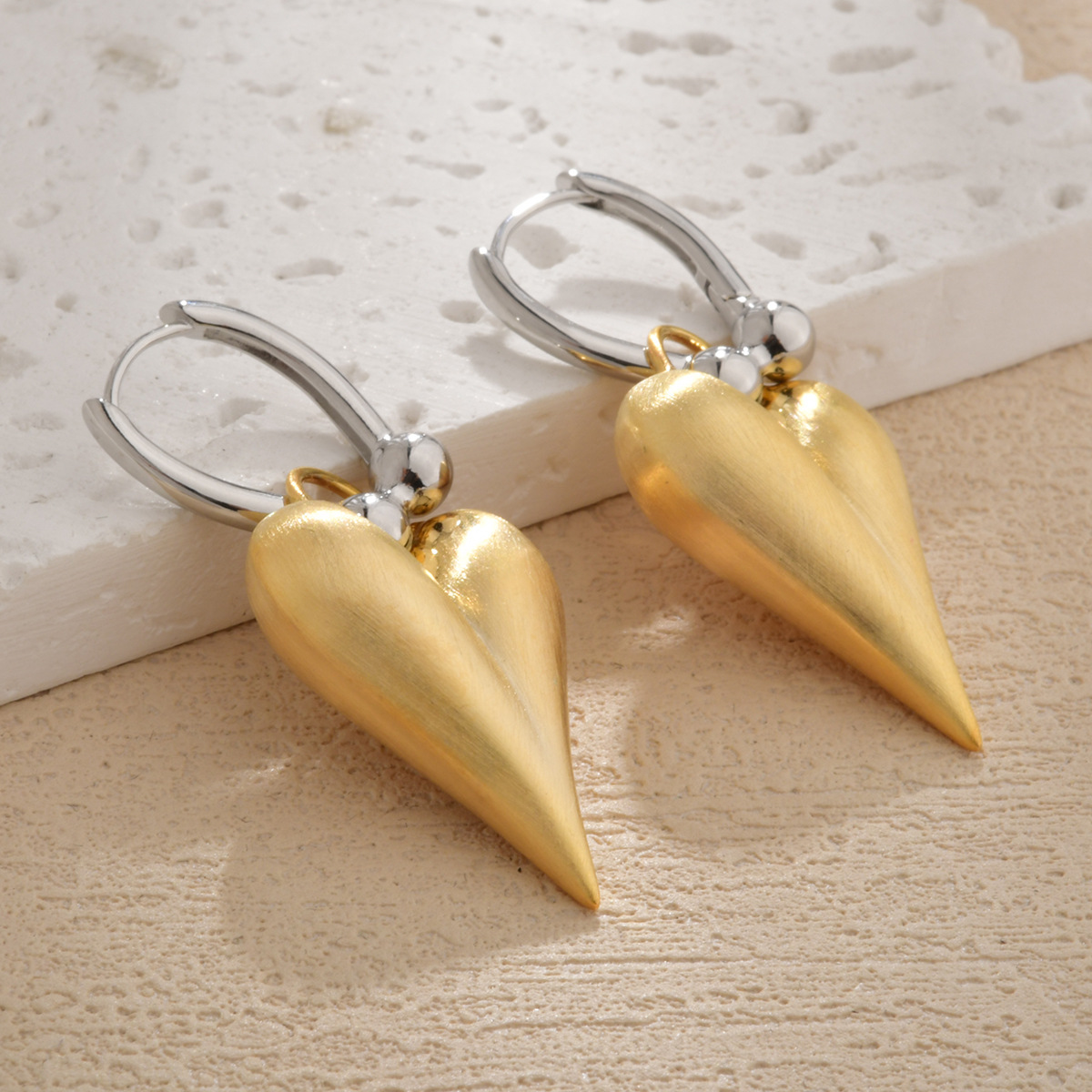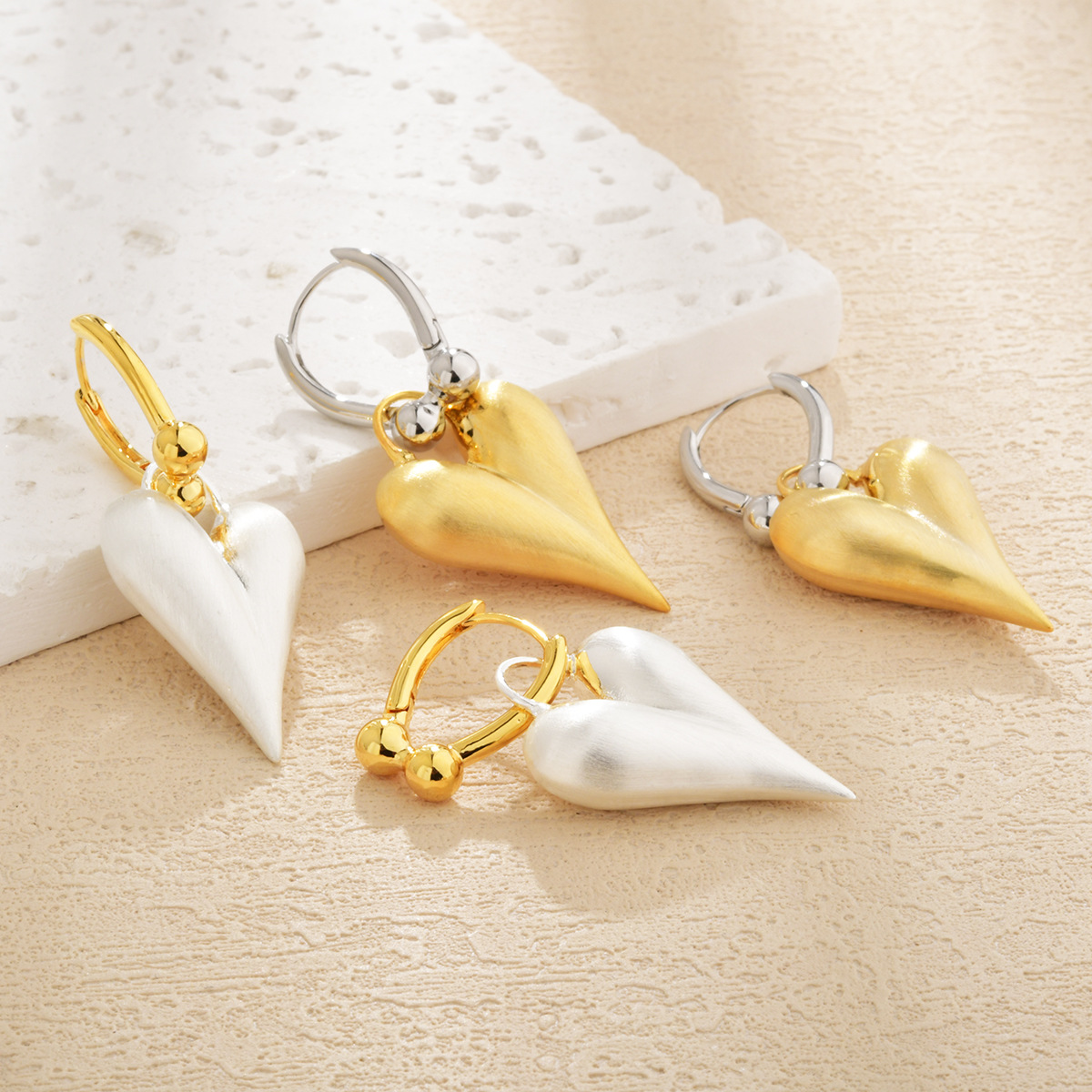 Cross-border European and American New Colored Brushed Peach Heart Ear Buckle Copper Plated Gold Love Eardrop Light Luxury High-end Ear Jewelry