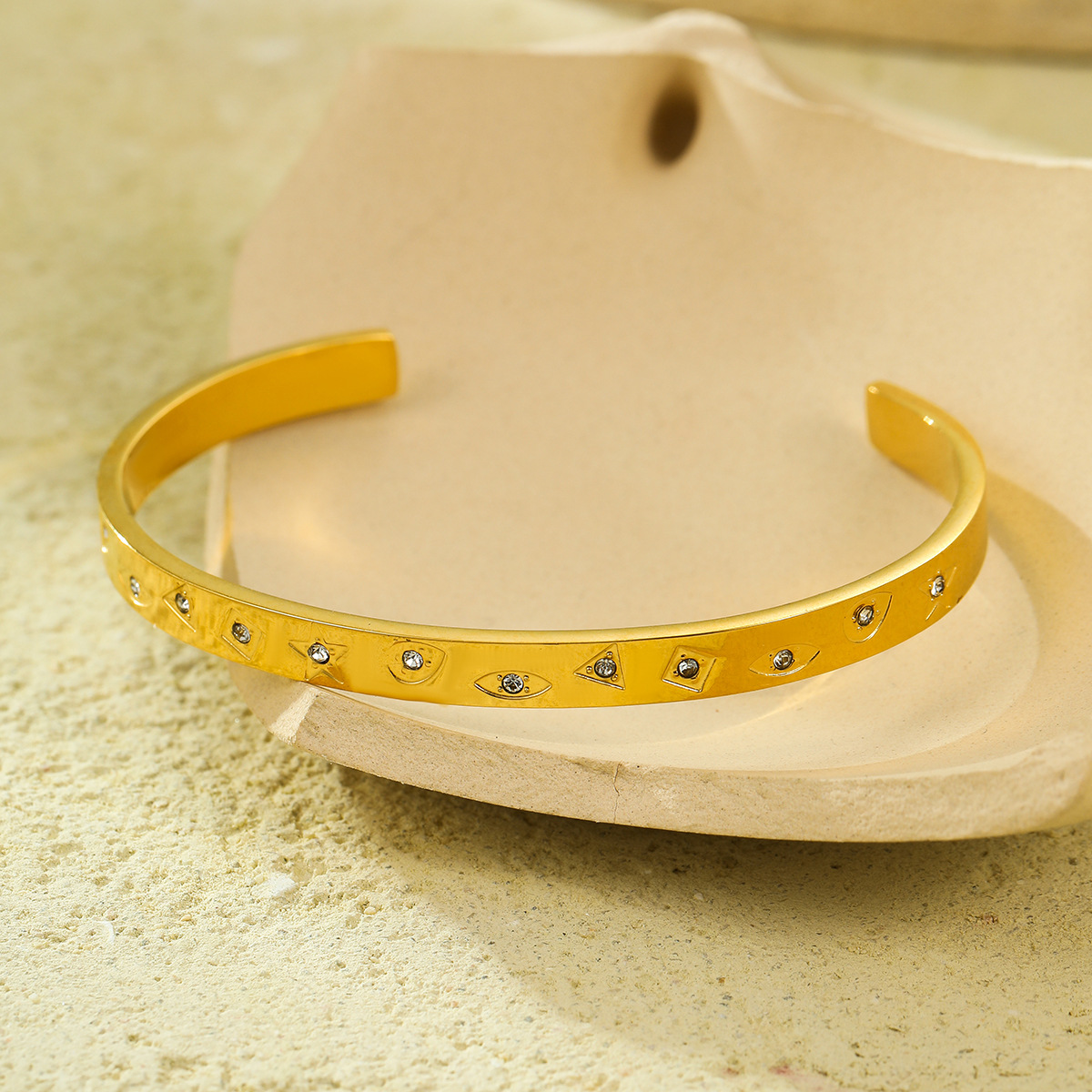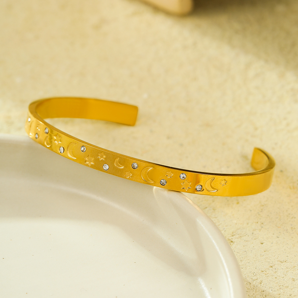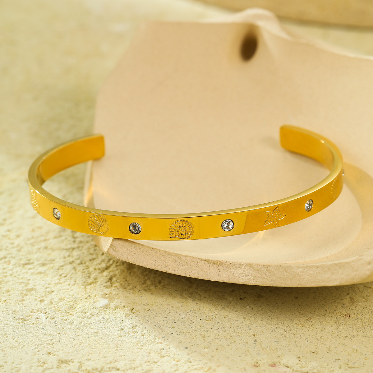Cross-border Europe and the United States exaggerated personality all-match titanium steel inlaid round zircon marine series stainless steel high-end sense open bracelet
