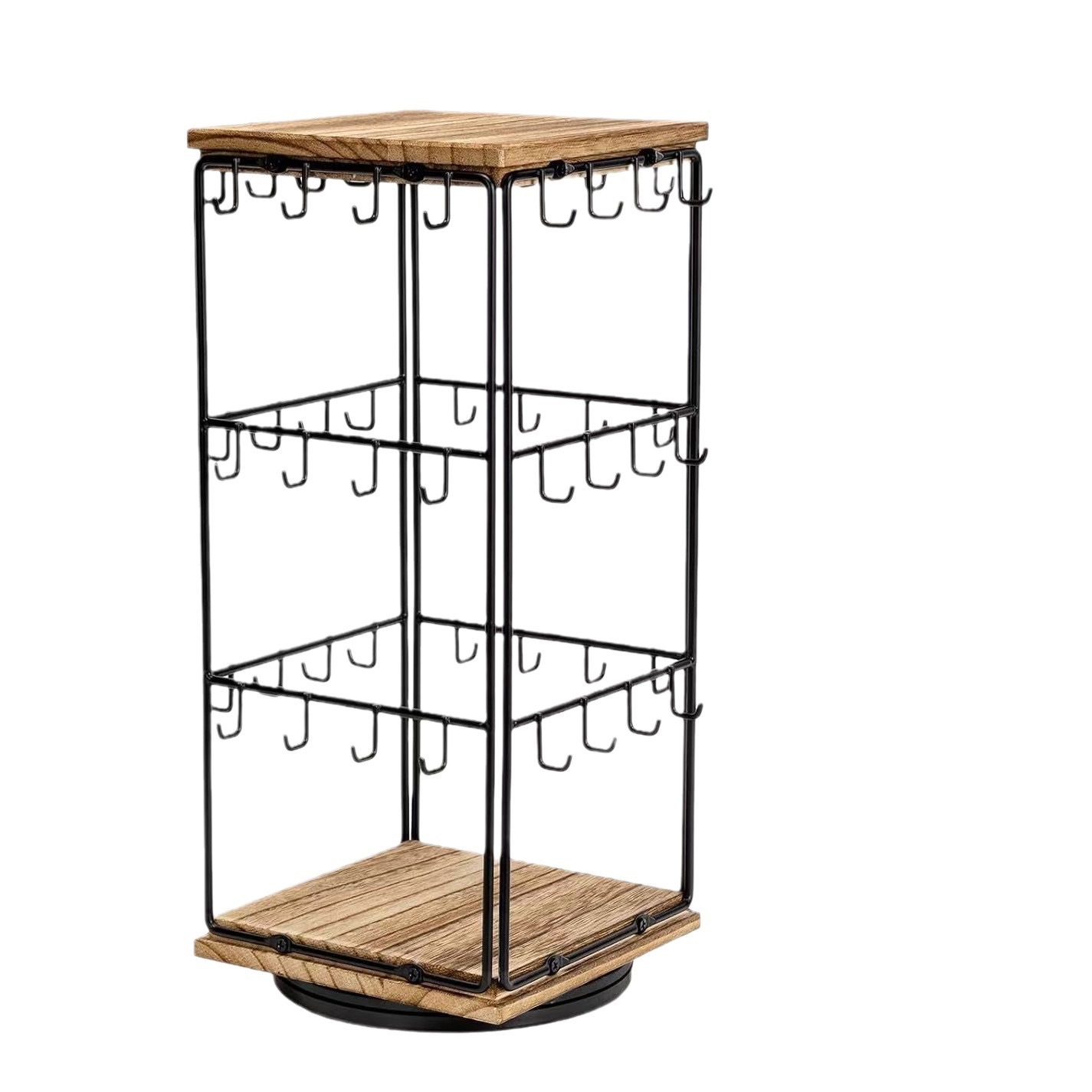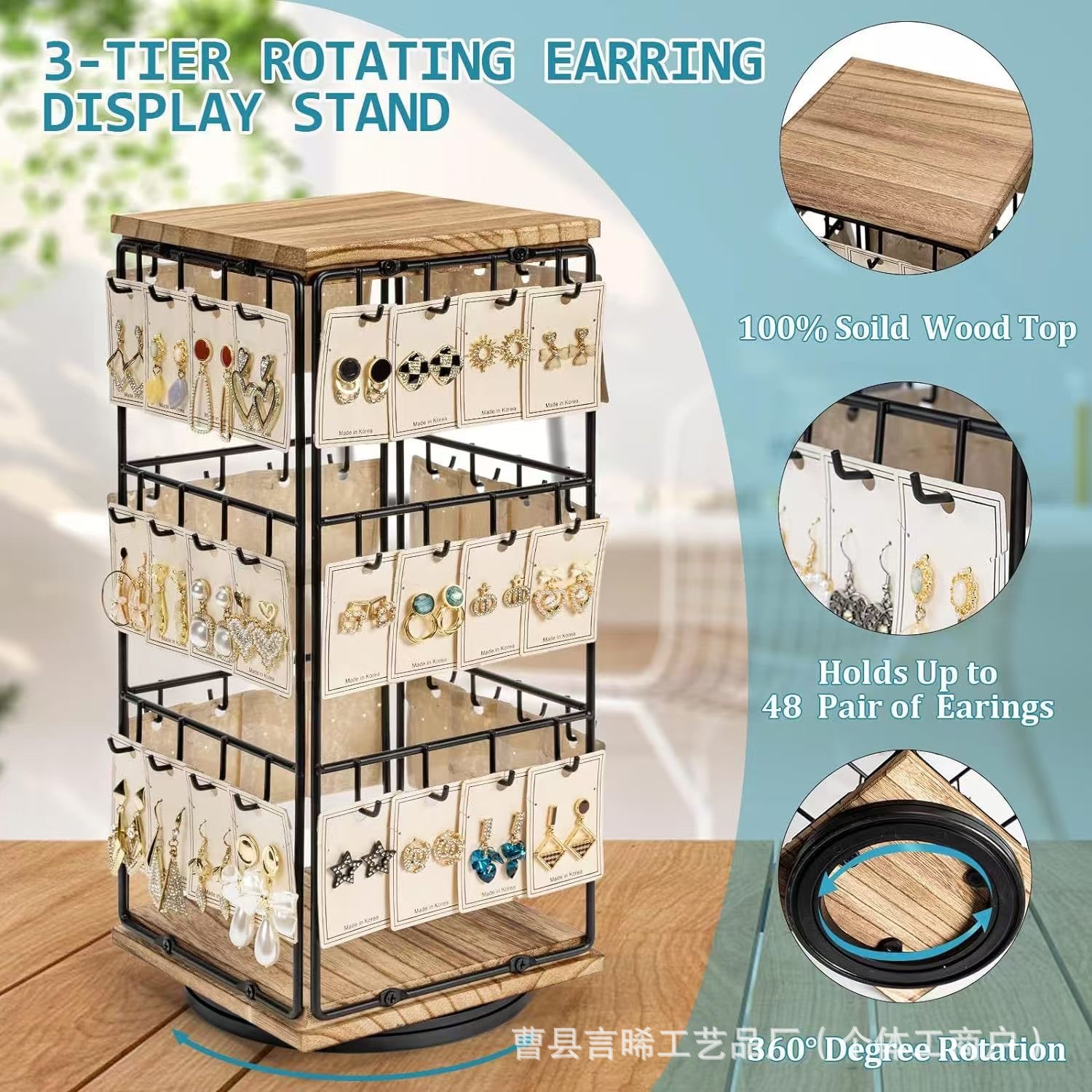 Cross-border Wooden Jewelry Storage Rack Rotatable Disassembly Ring Earrings Filing Rack Shopping Mall Store Jewelry Display Rack