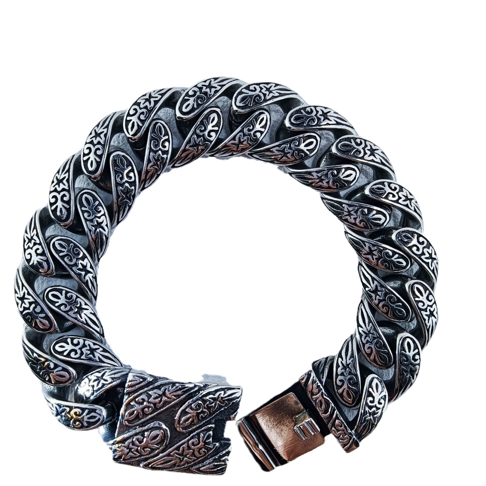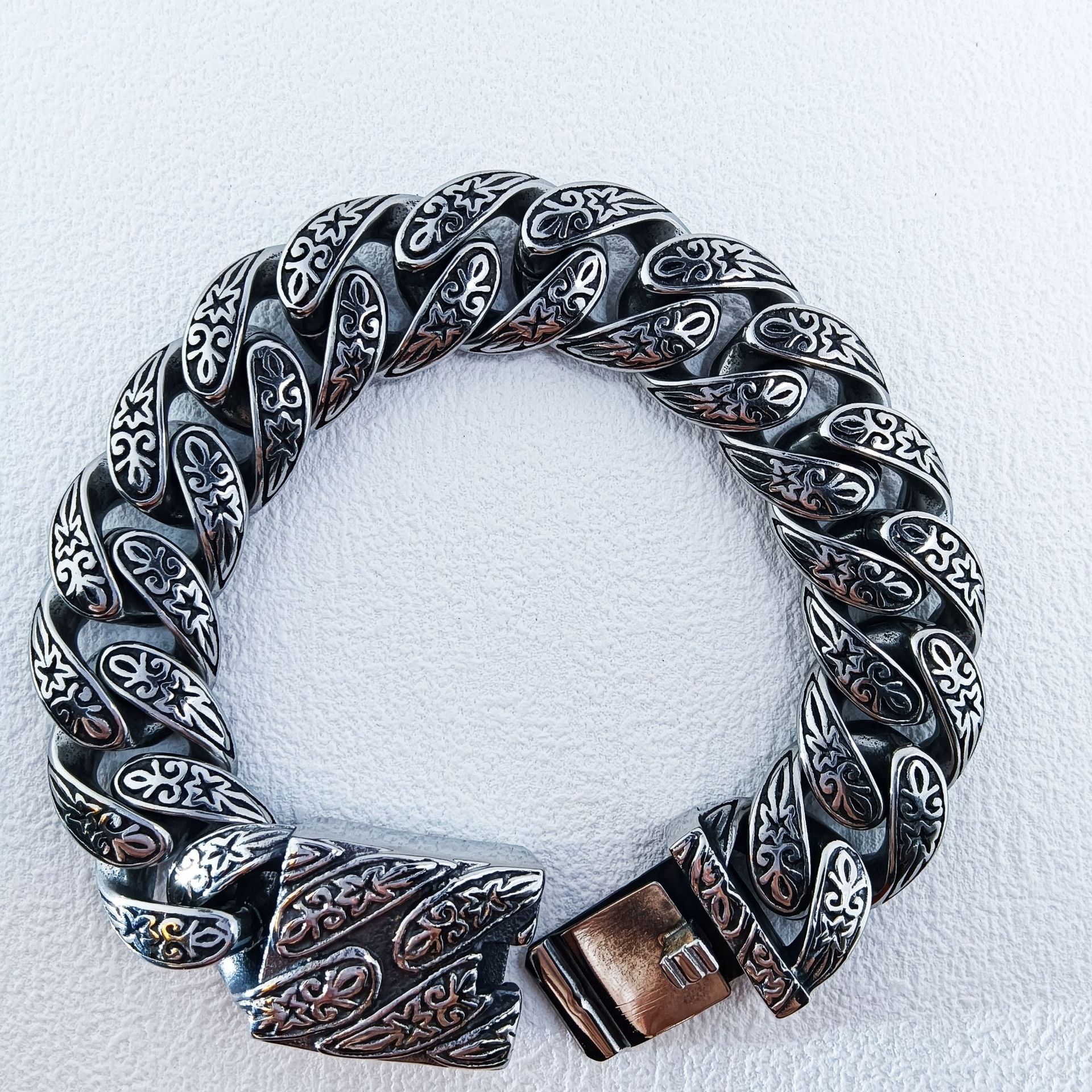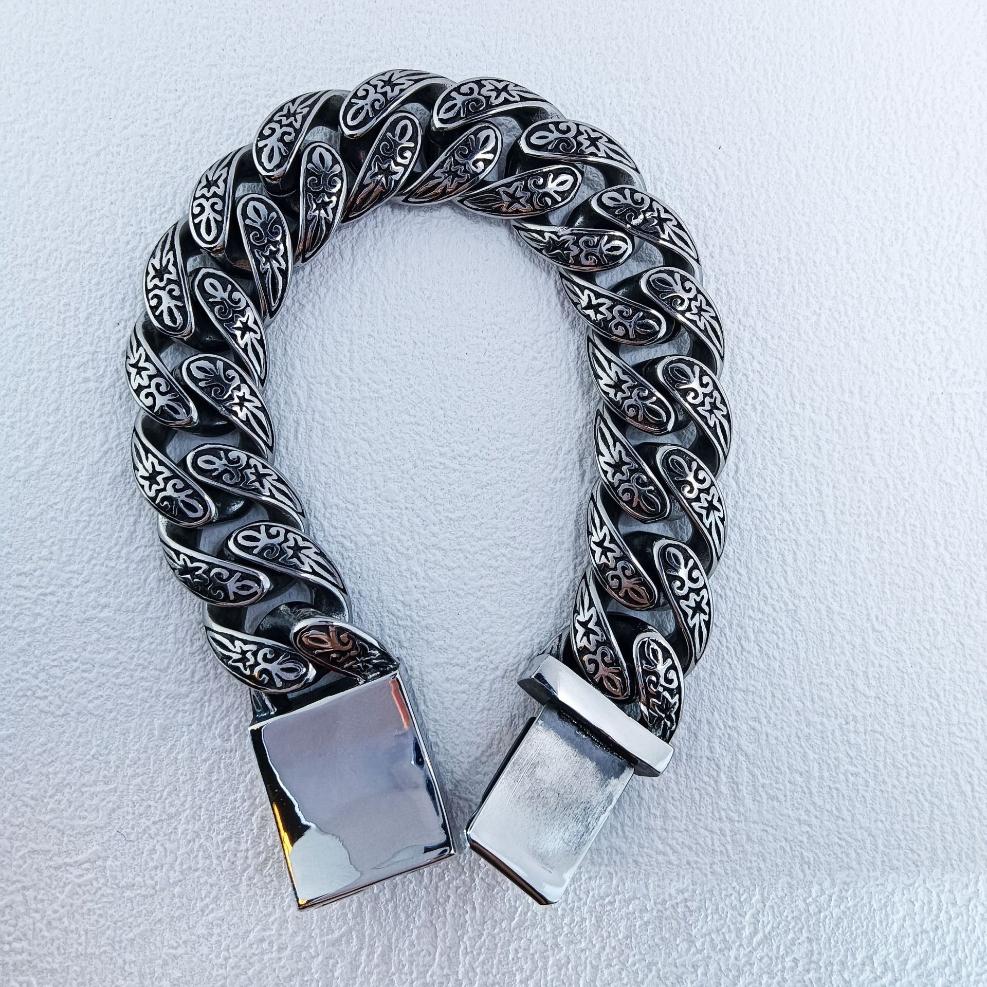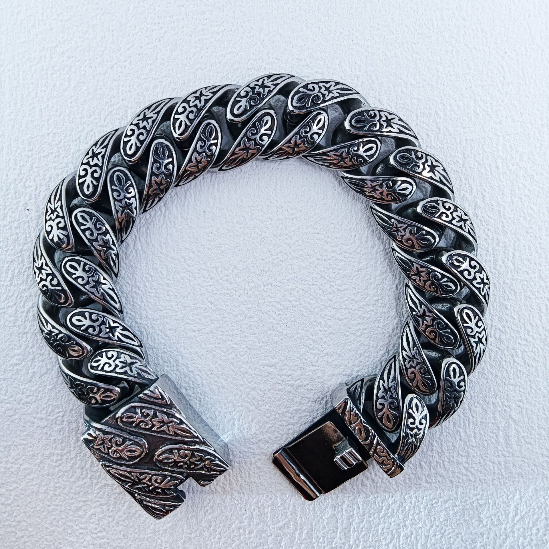 Bracelet: Stainless steel titanium steel stylish retro distressed craft castings and handmade chain combinations, ethnic cultural jewelry