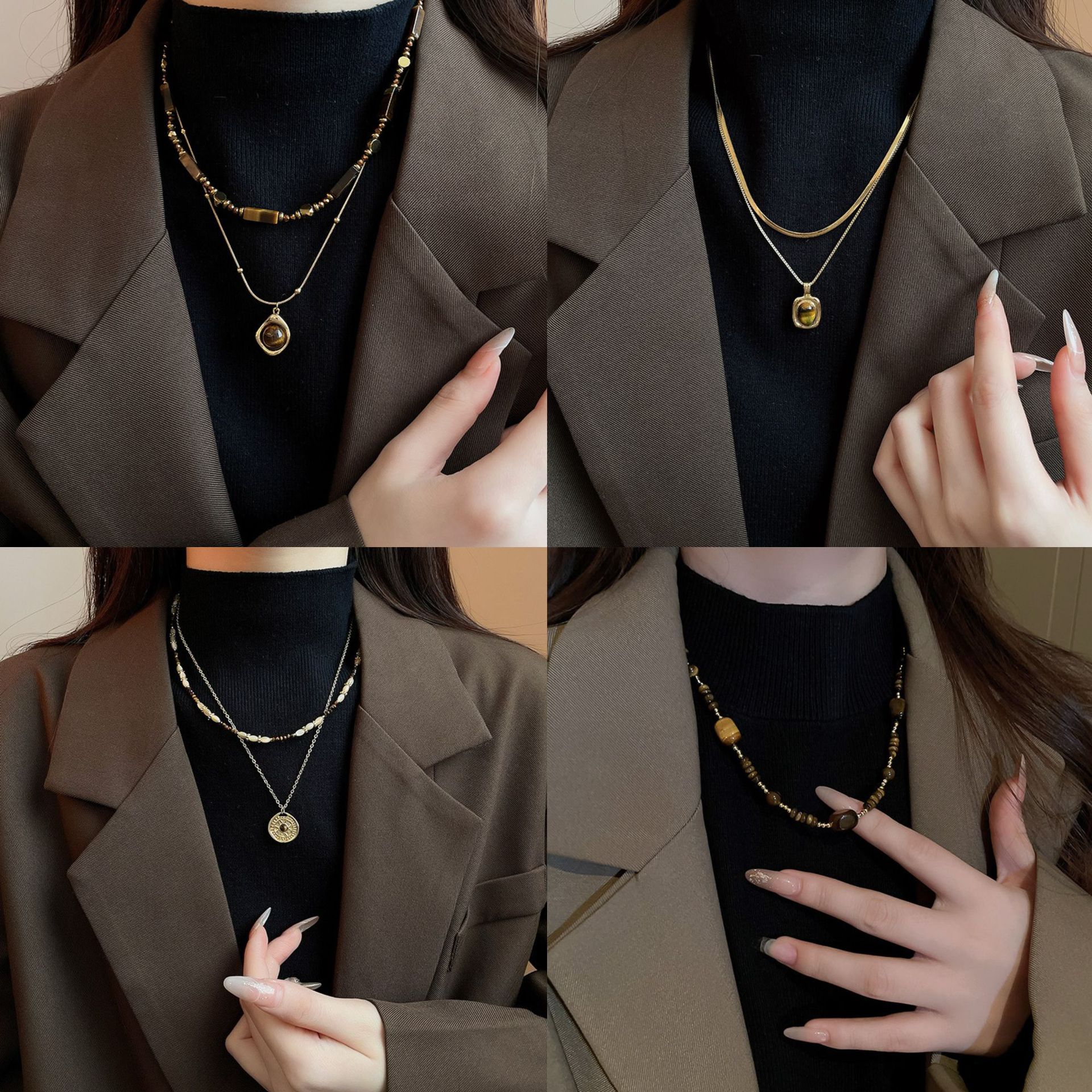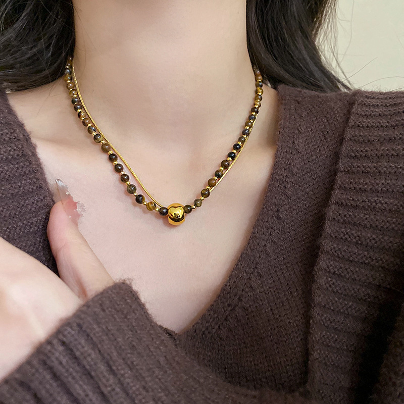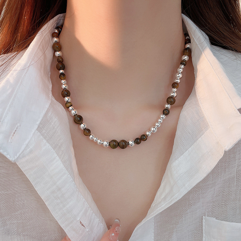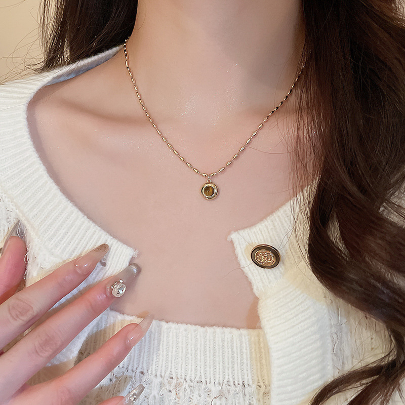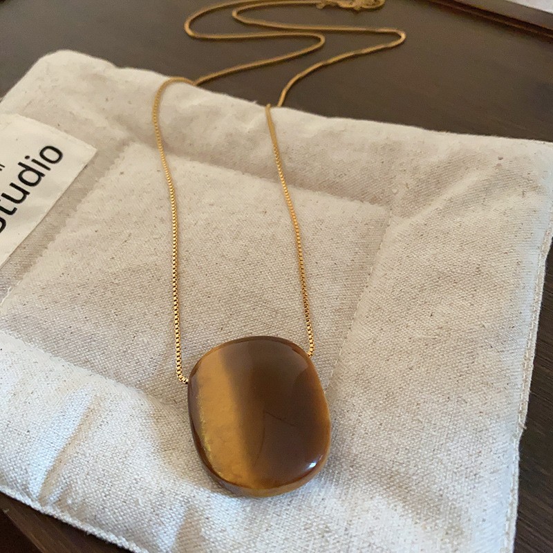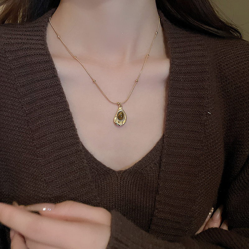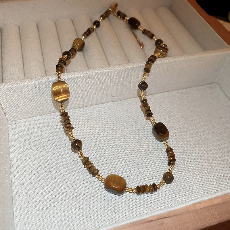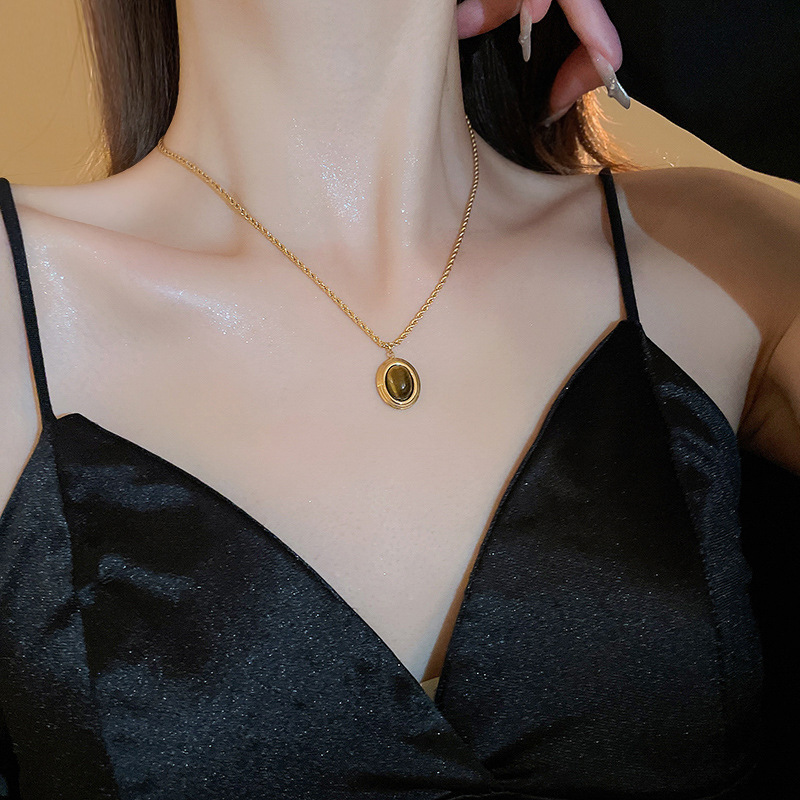 Maillard Oval Tiger Eye Necklace Women's Light Luxury Niche Autumn and Winter Collarbone Chain Fashion High-end Jewelry Accessories