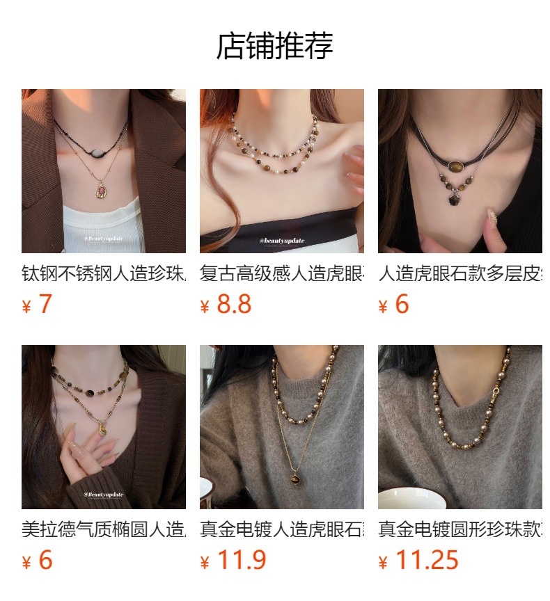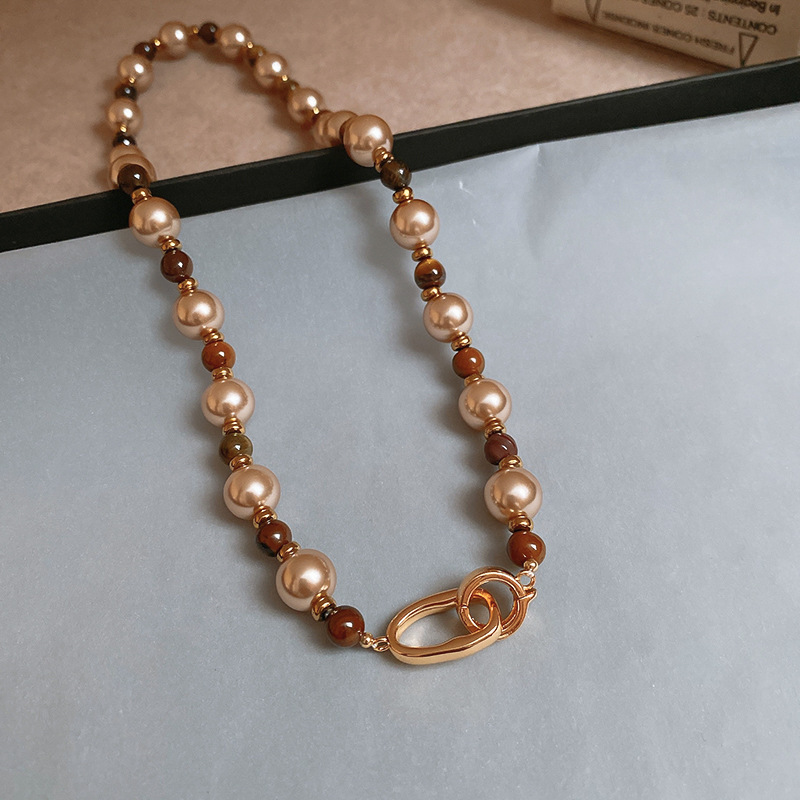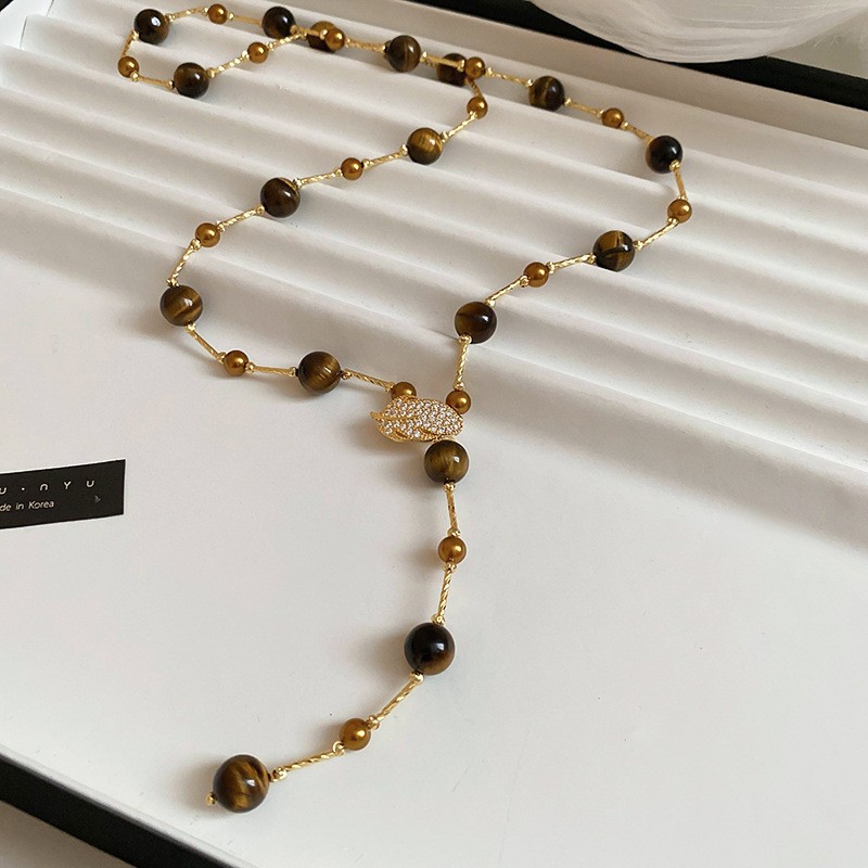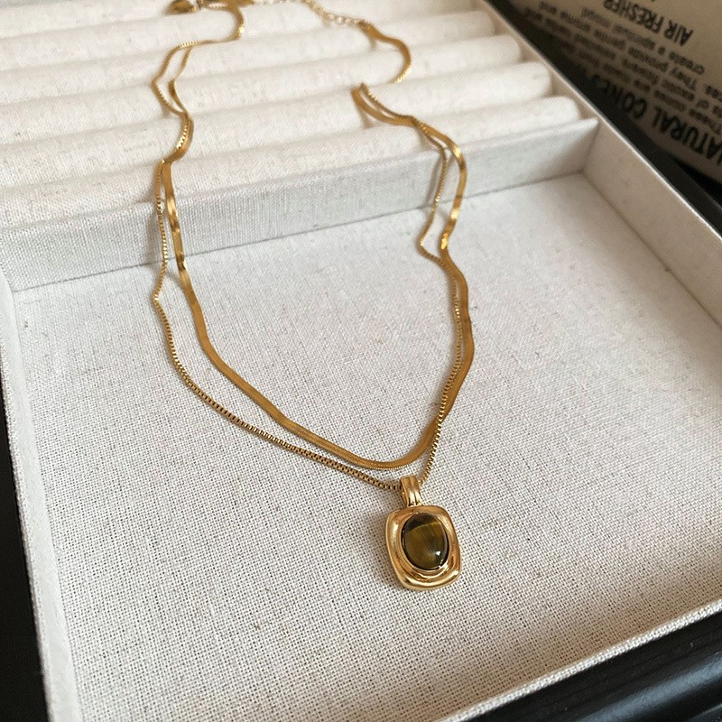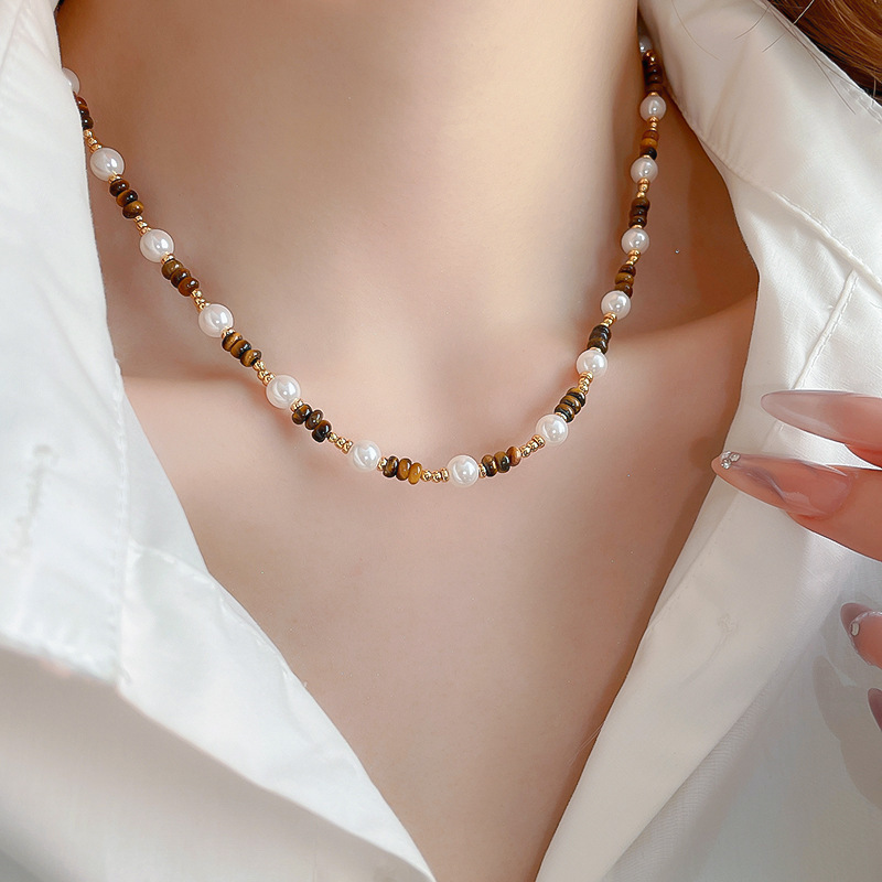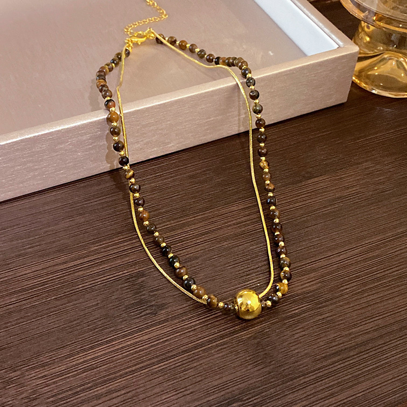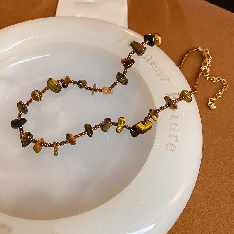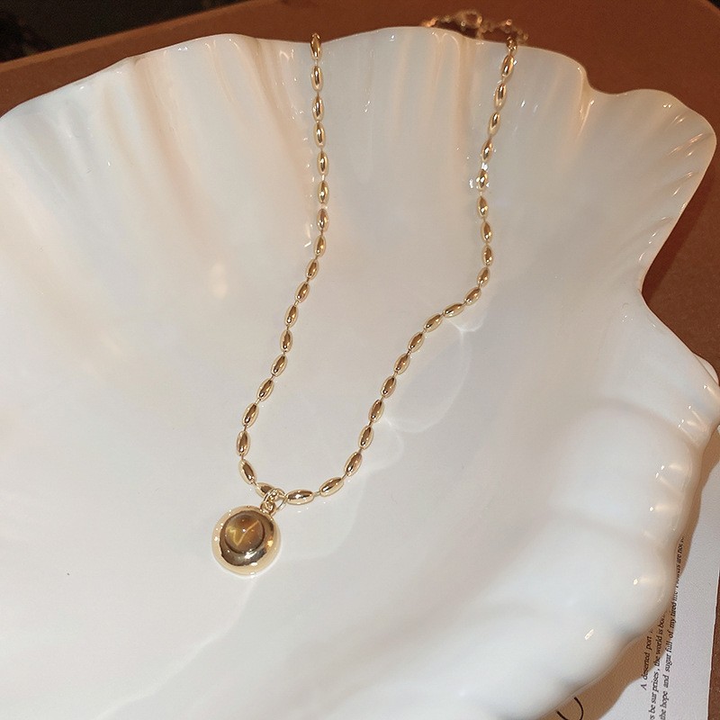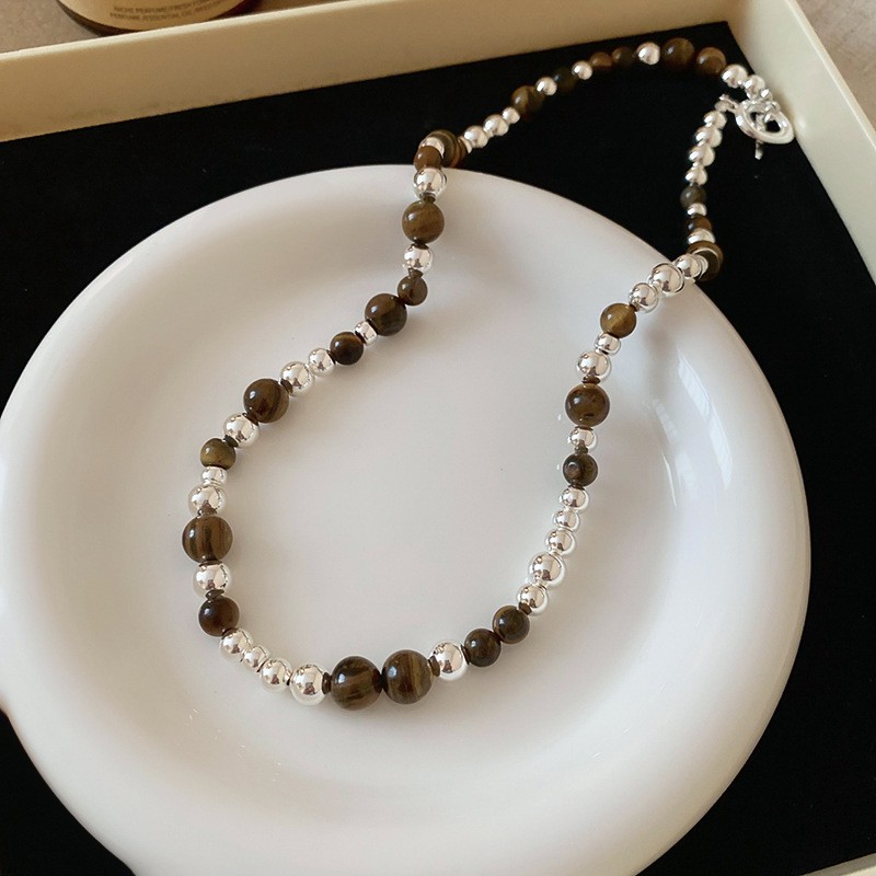 Maillard Oval Tiger Eye Necklace Women's Light Luxury Niche Autumn and Winter Collarbone Chain Fashion High-end Jewelry Accessories