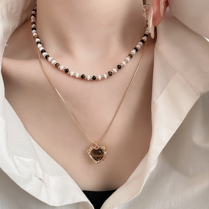 Color: 6 # Necklace-brown two-piece set (real gold plating)