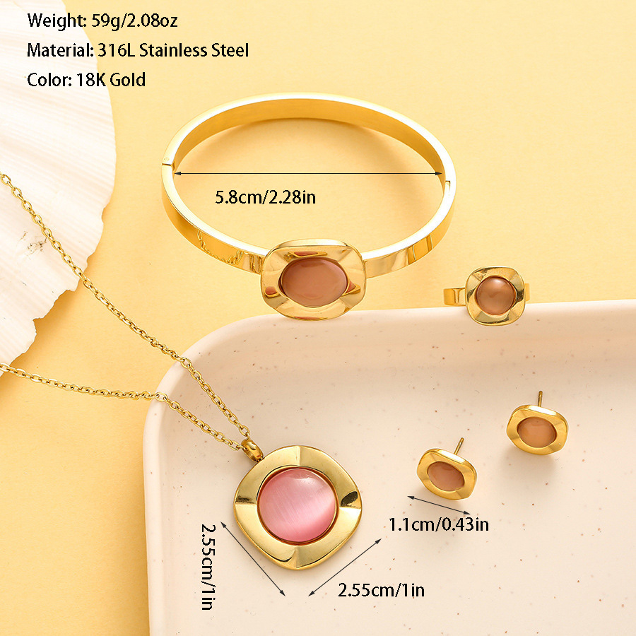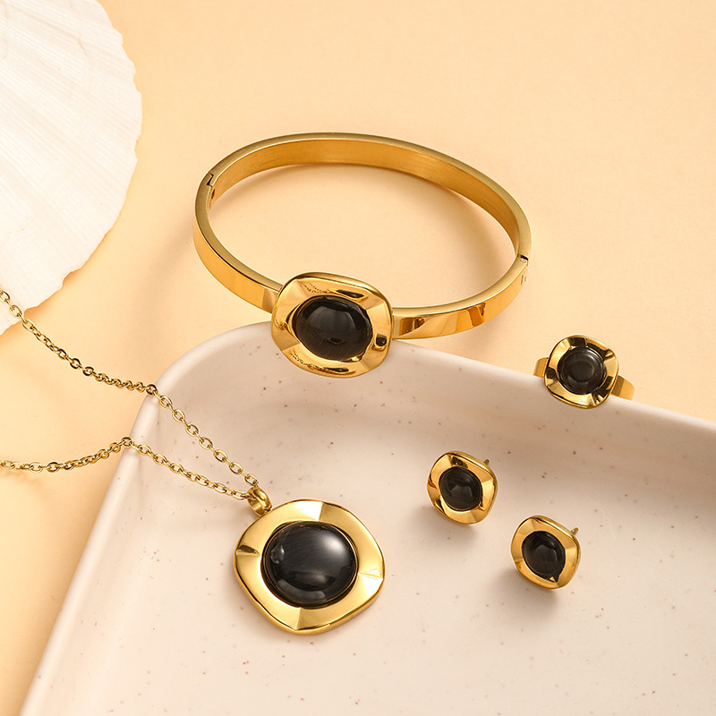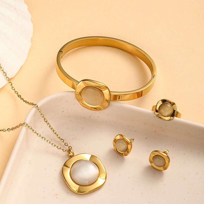 Cross-border Europe and the United States new jewelry opals necklace temperament stainless steel jewelry suit (four-piece)