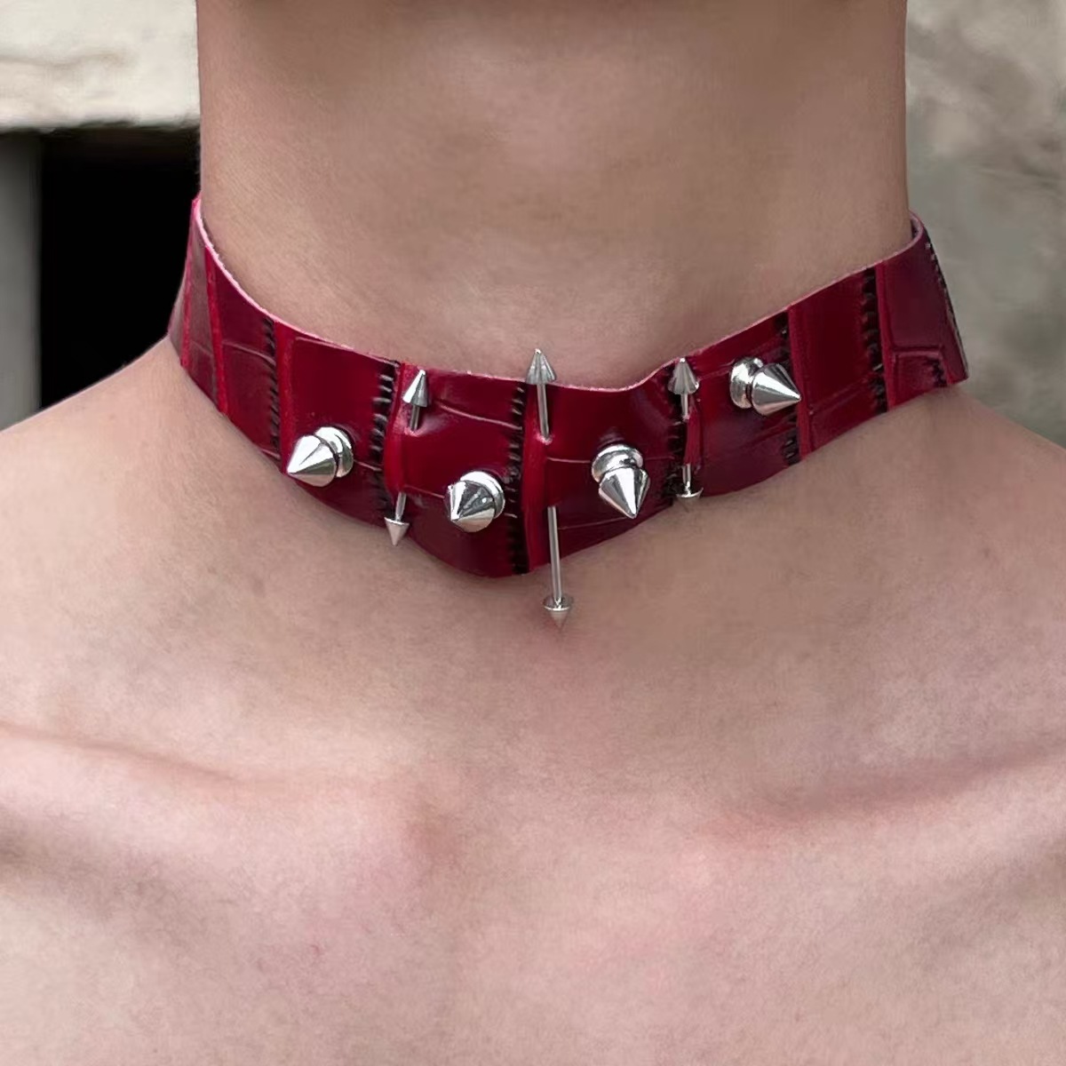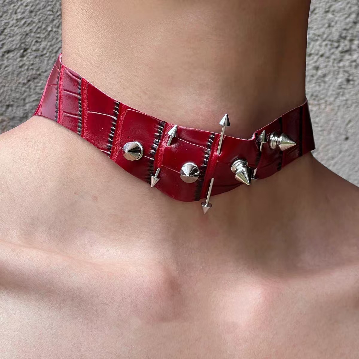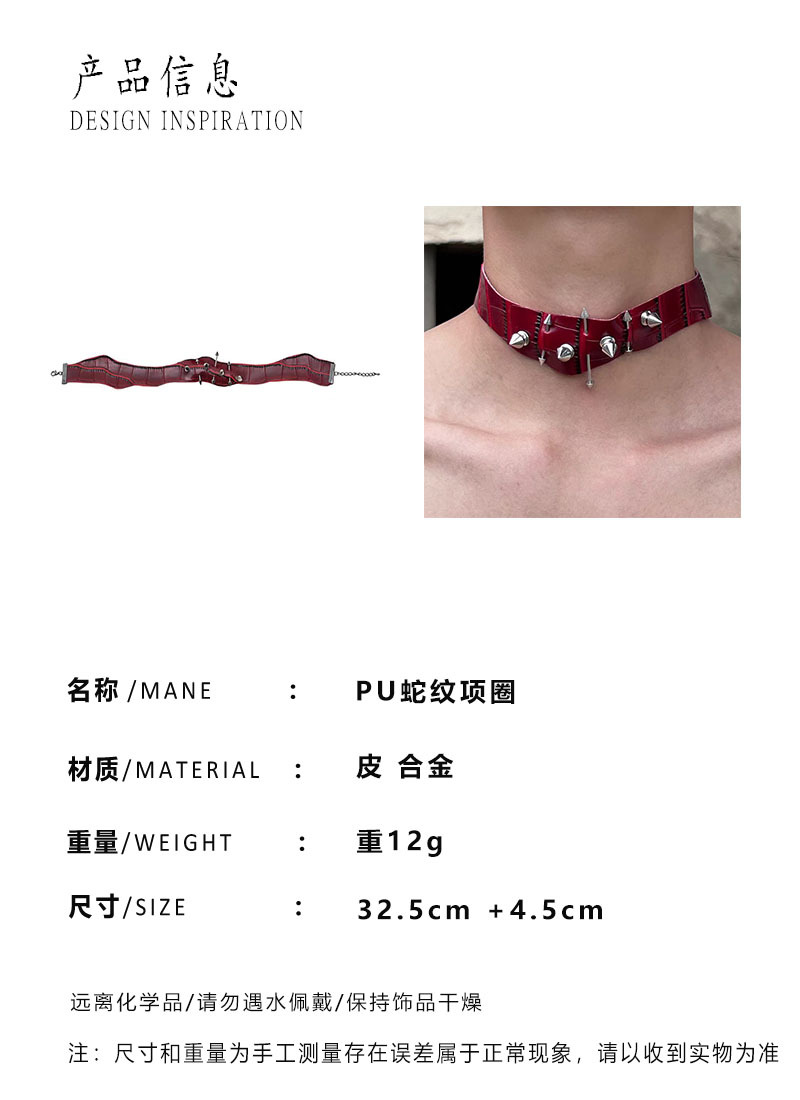 Punk style subculture sweet cool hot girl snake pattern rivet choker diablo y2k exaggerated design personality collar