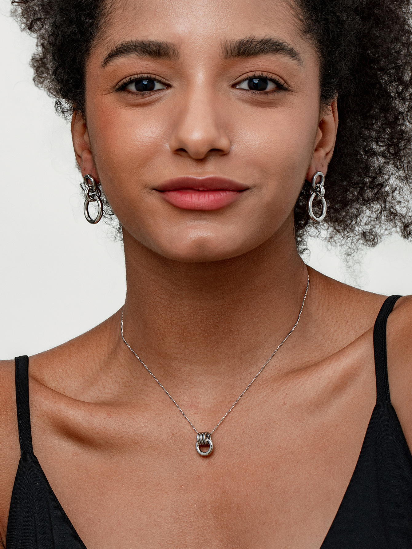 Color: Steel color set (necklace) (big earrings) (small earrings)