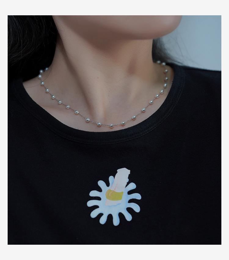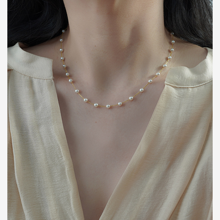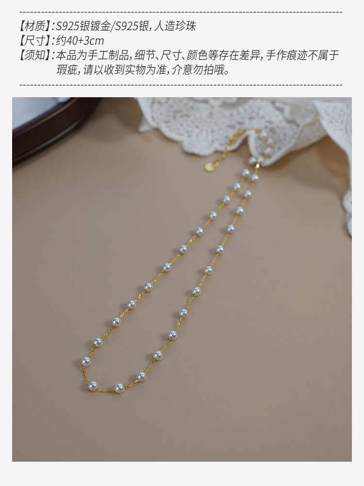 Niche Design Sense Thirty Little Pearl Necklace 925 Sterling Silver All Over the Sky Star Clavicle Chain Commuter Women's 40982