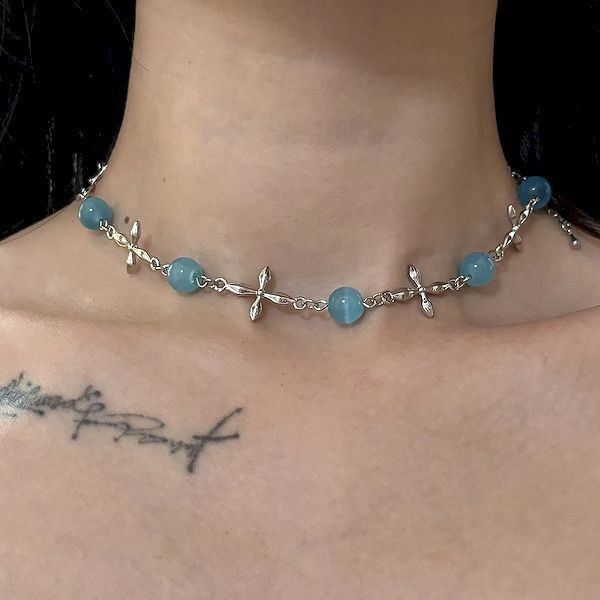 Color: 79#Collar-blue denim cross flower chokerc1069