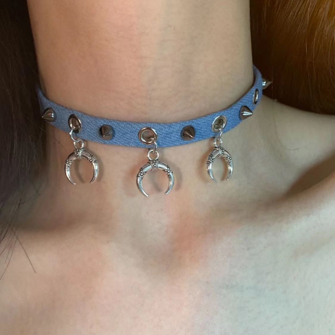 Color: 77#Collar-crescent denim blue multi pendant c1219