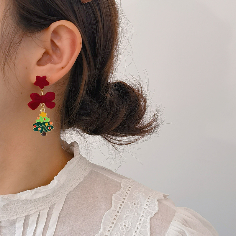 2024 new cross-border new products retro wine red velvet Christmas tree Christmas earrings niche design earrings