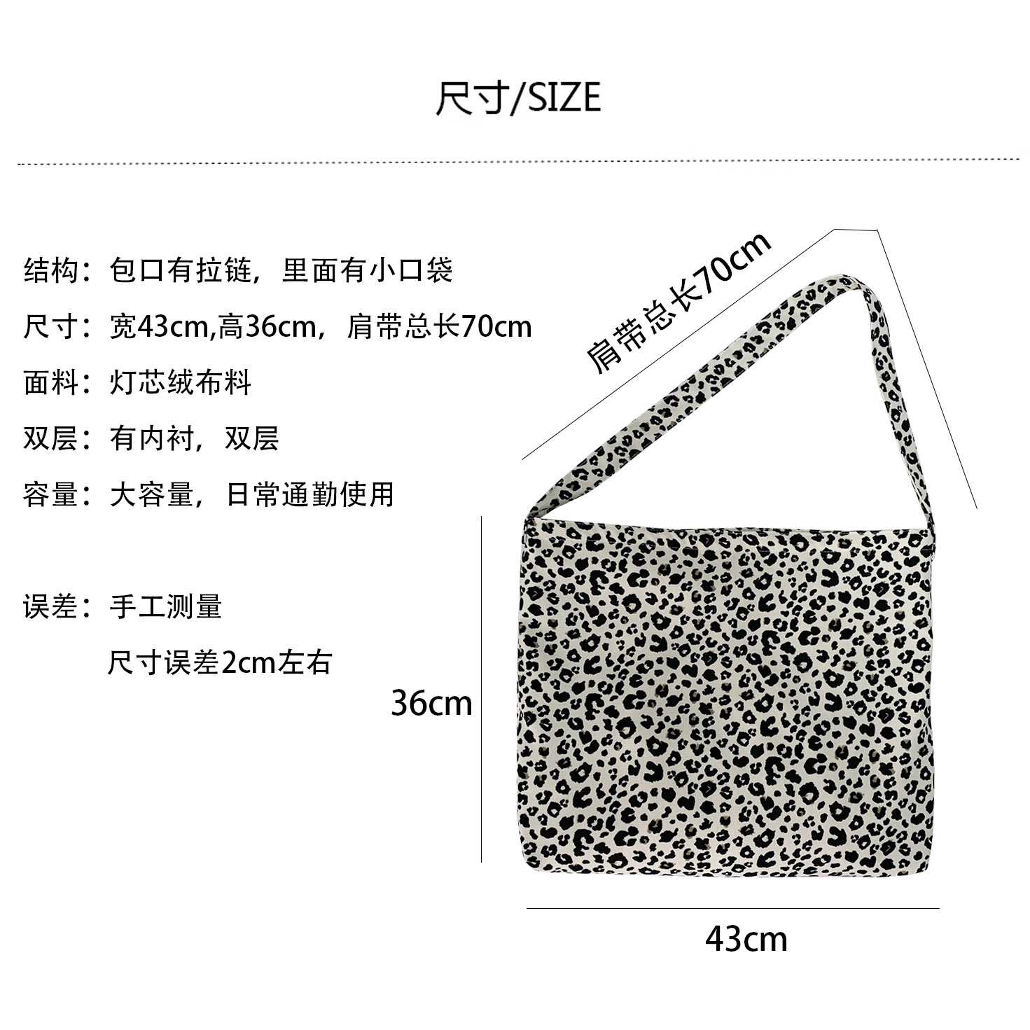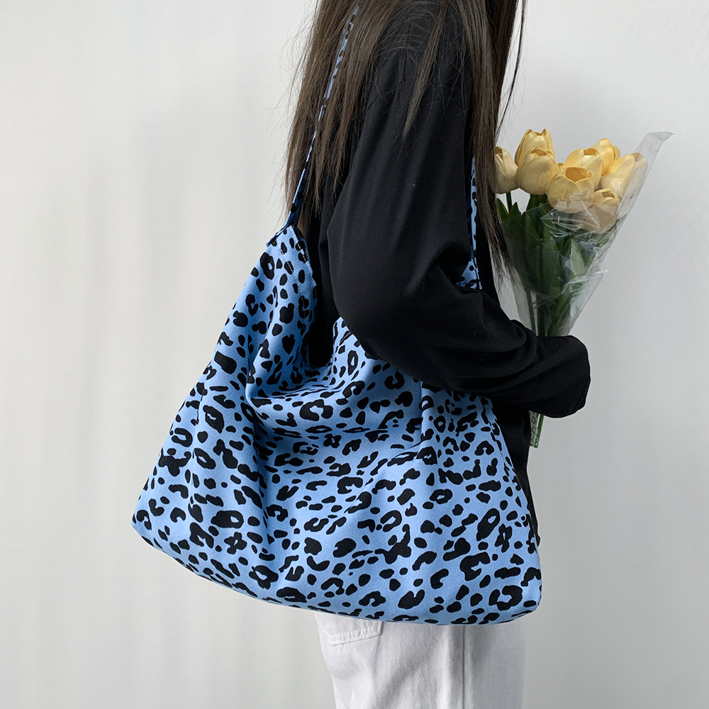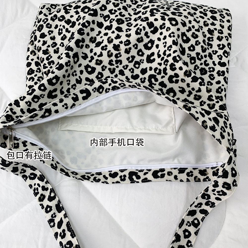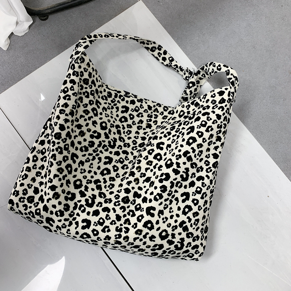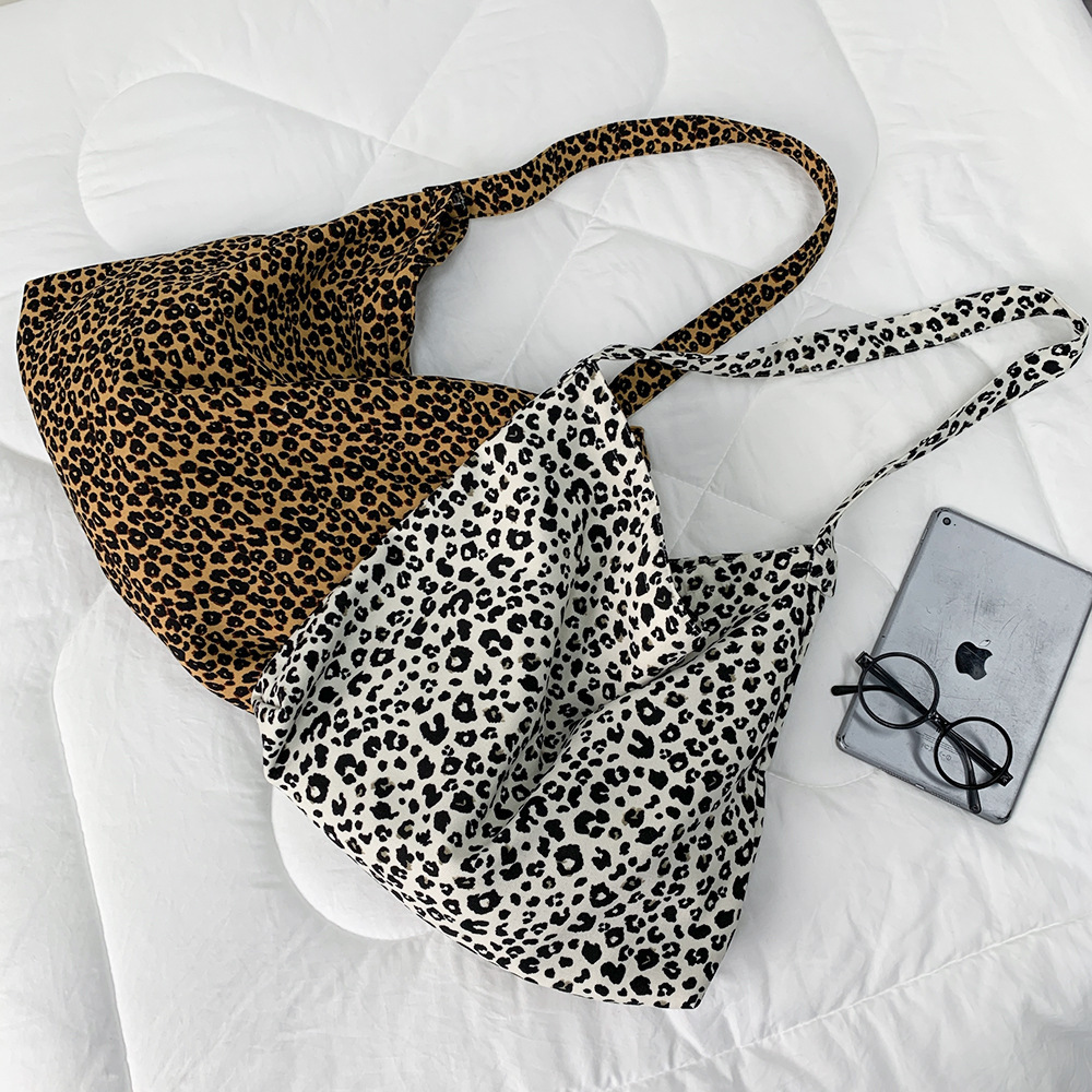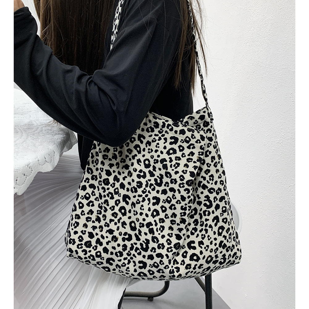 Fashionable corduroy leopard print diagonal bag large capacity single shoulder shopping bag student canvas bag women's wholesale