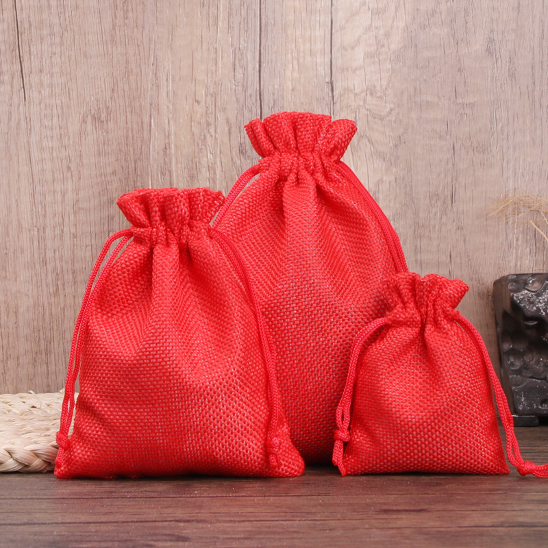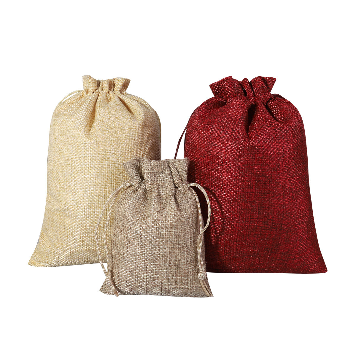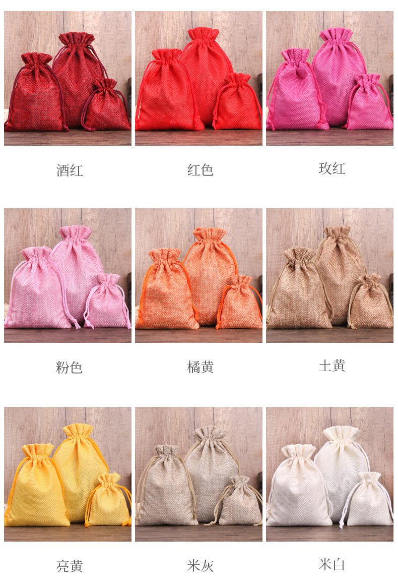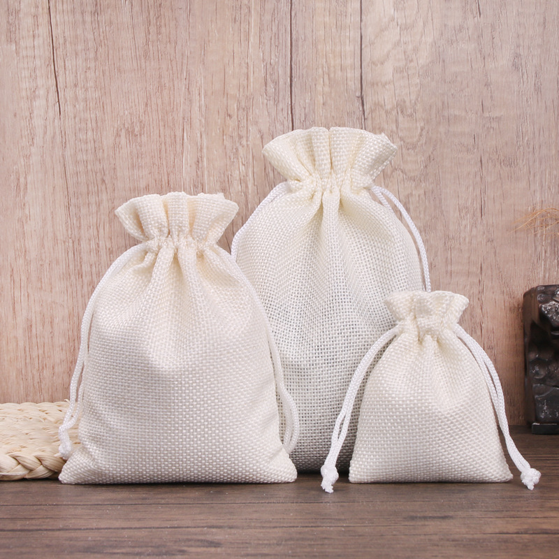 Linen Drawstring Bag Composite Faux Linen Bag in Stock Drawstring Linen Bag Jewelry Gift Packaging Bag for Weddings