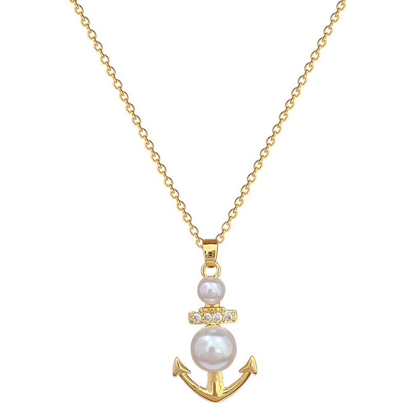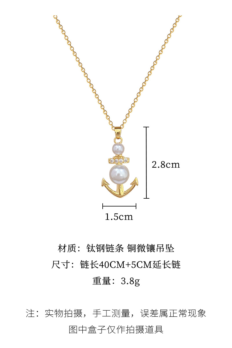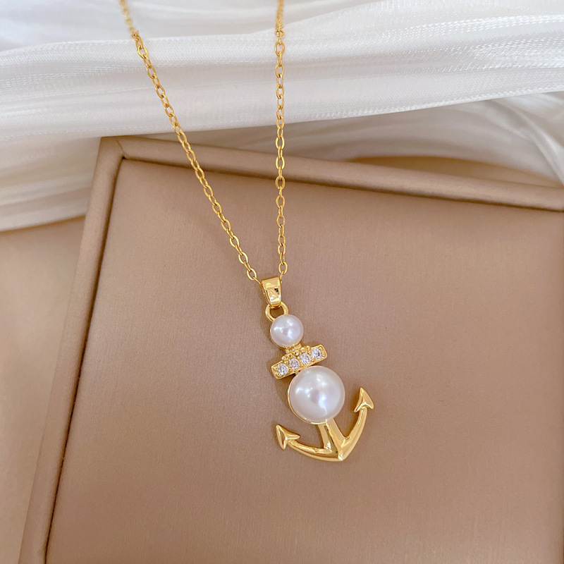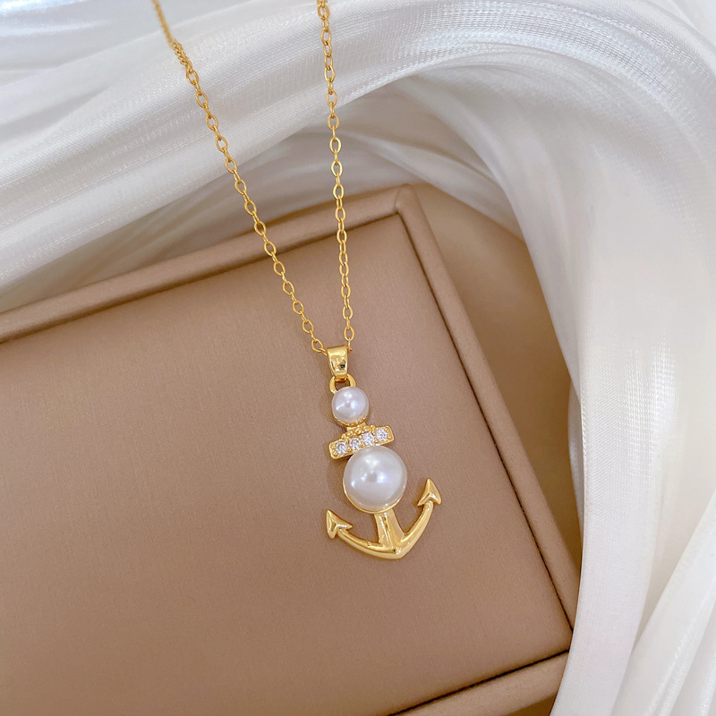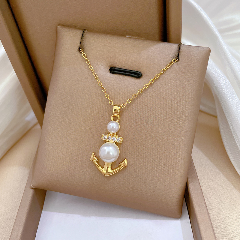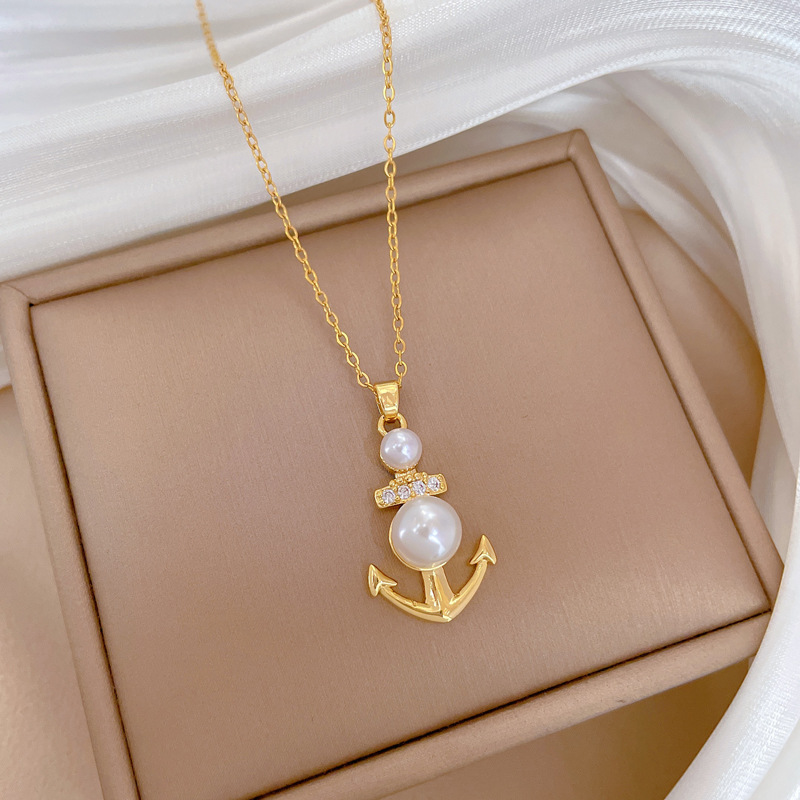 [Titanium Steel] Pearl Ship Anchor Light Luxury Elegant Gorgeous Diamond Necklace Women's All-match Clavicle Chain Titanium Steel Chain