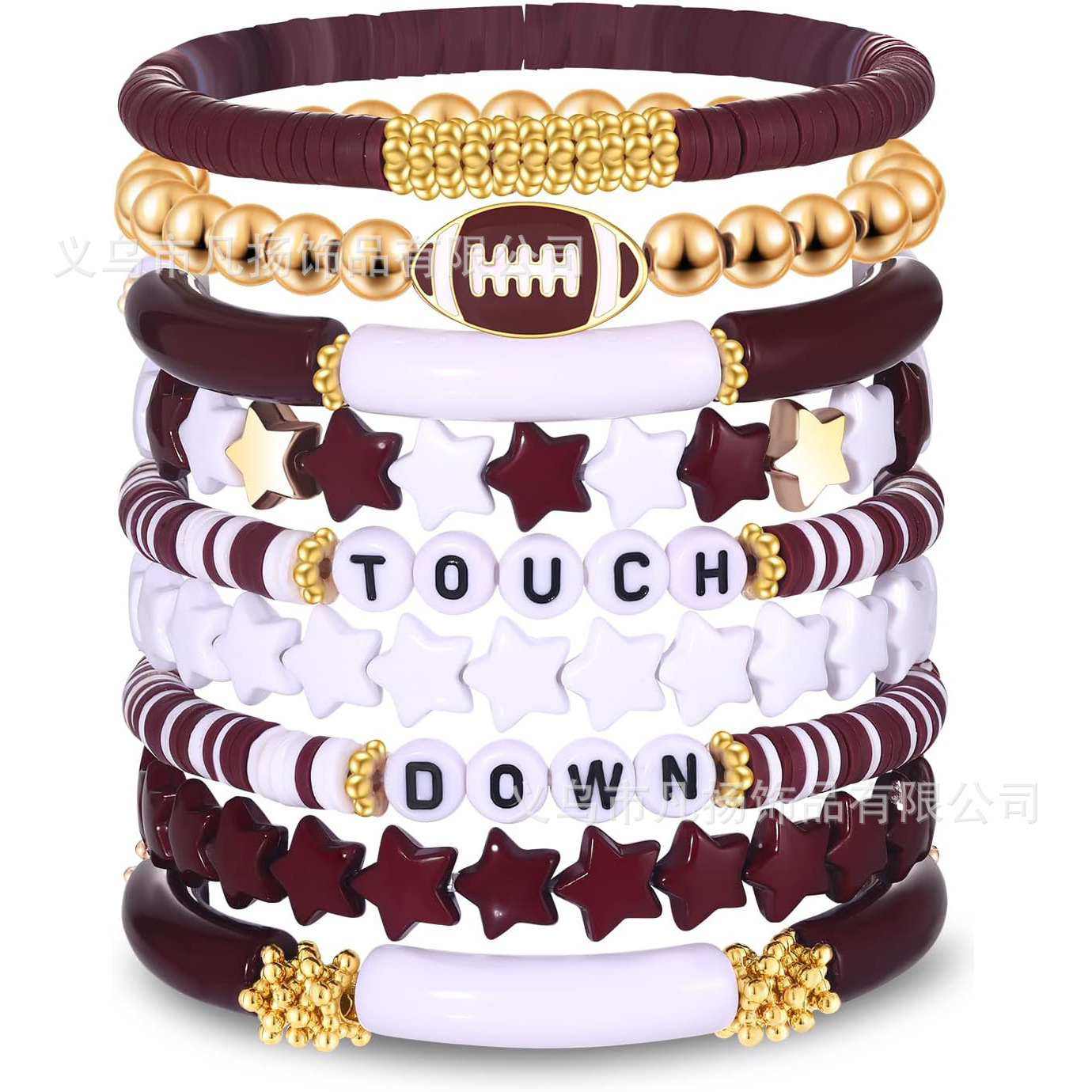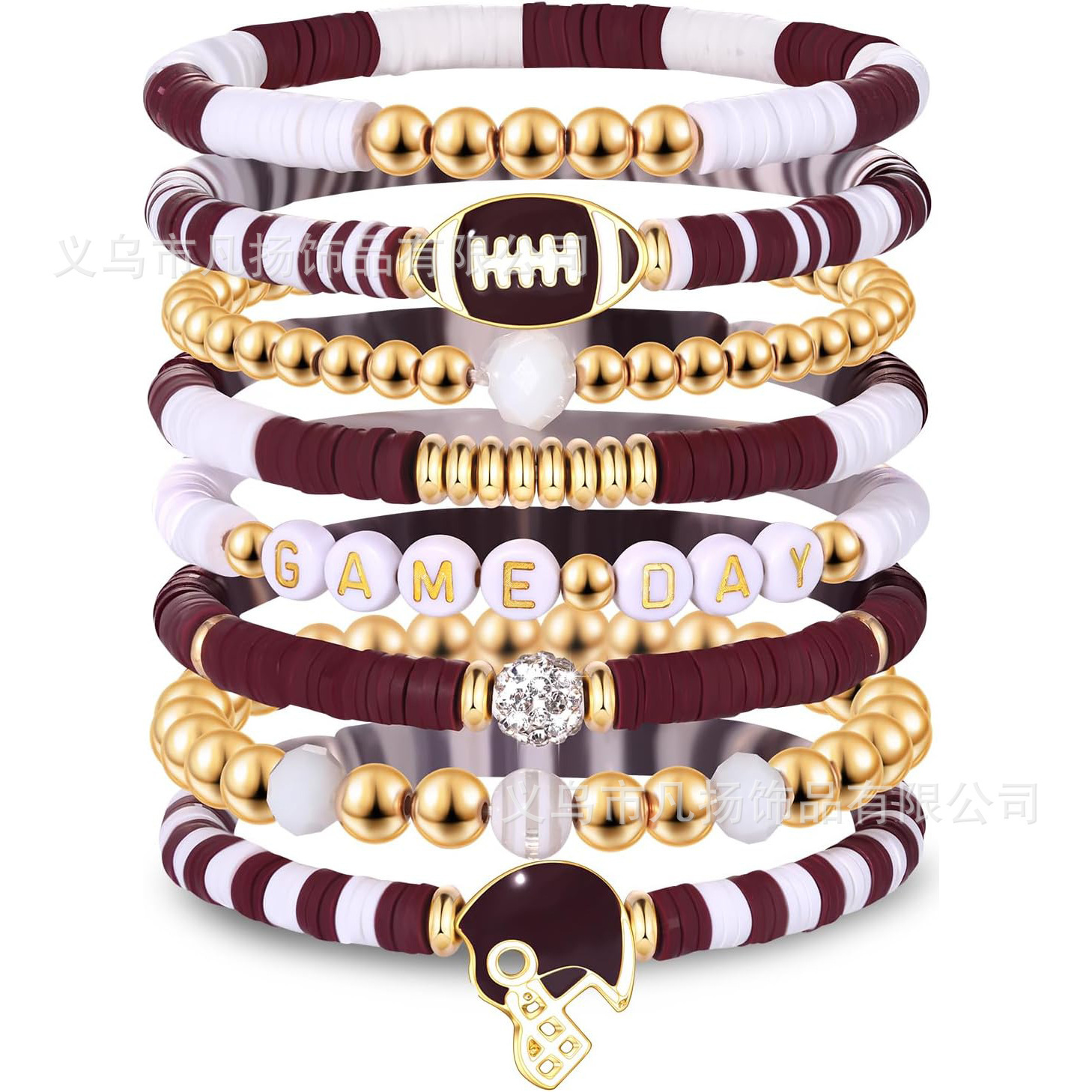 in stock Amazon Super Bowl Football Multi-Layer Bracelet Bracelet suit Crystal Five-Star Soft Ceramic Bracelet