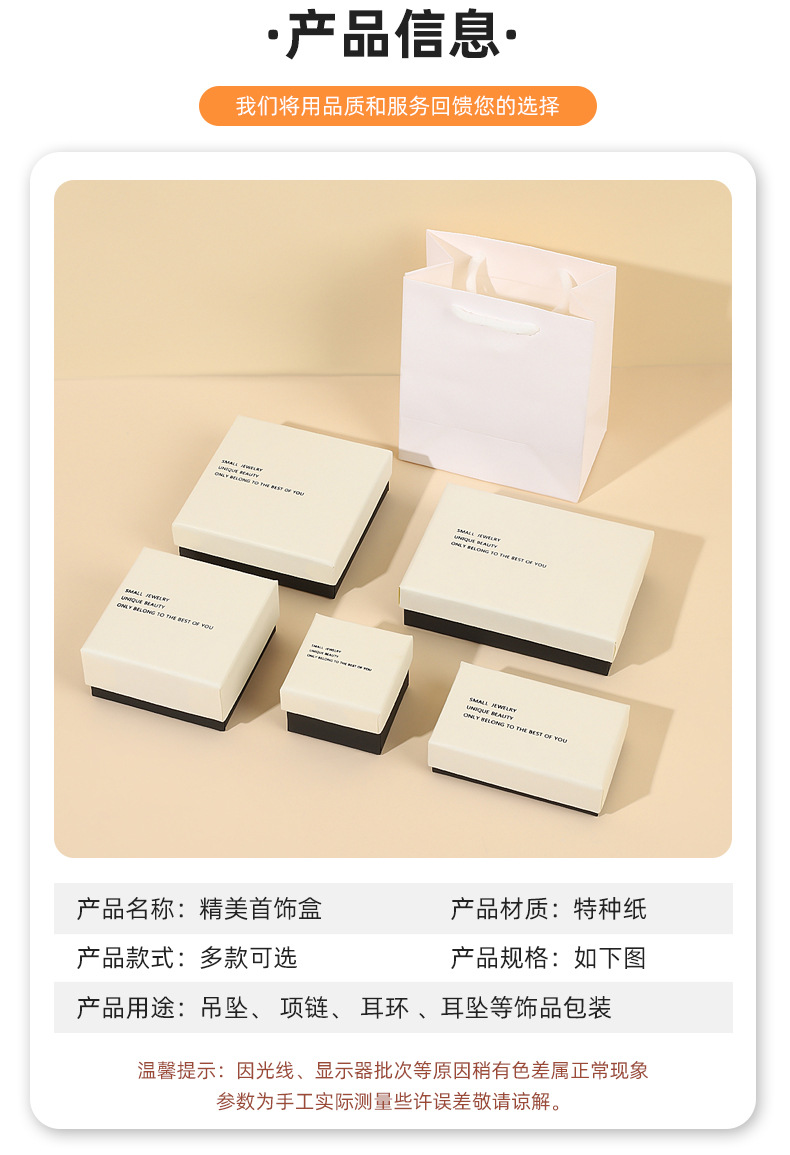 Specification model: White and black; 7.3*7.3*3.7 necklace/earring box with sponge