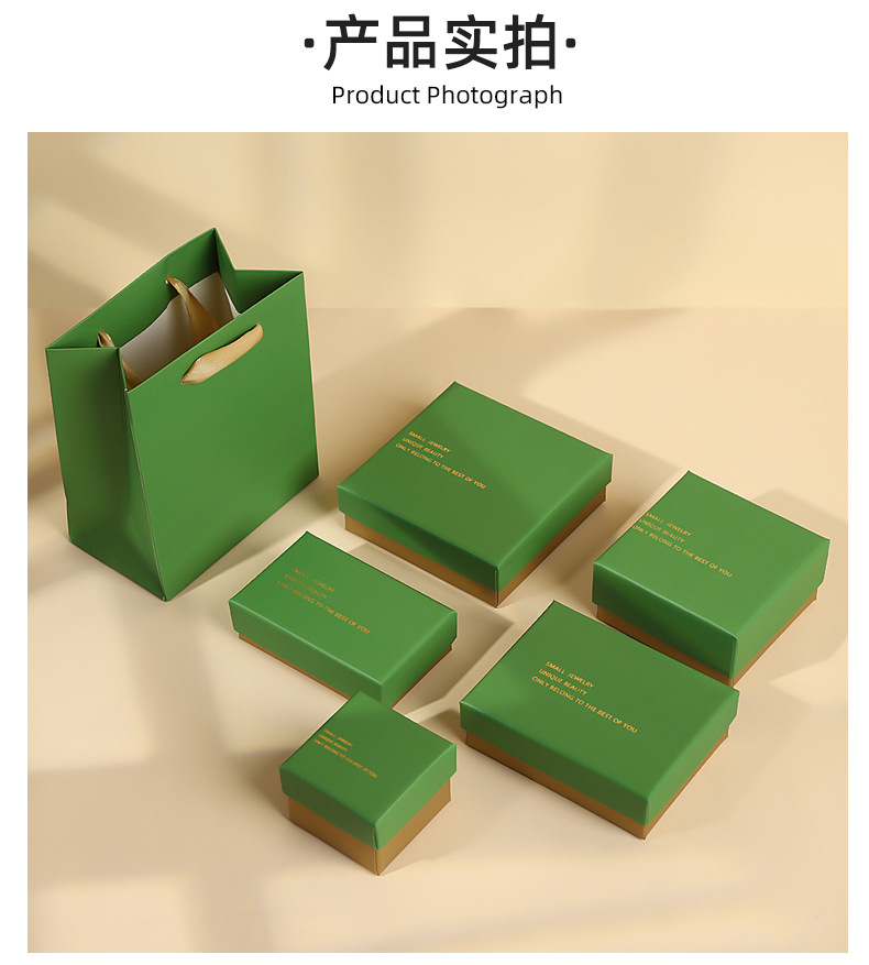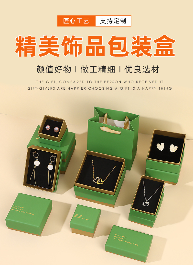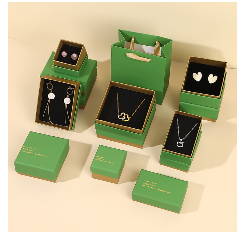 Specification model: Green gold; 9*7*3 earrings/pendant box with sponge
