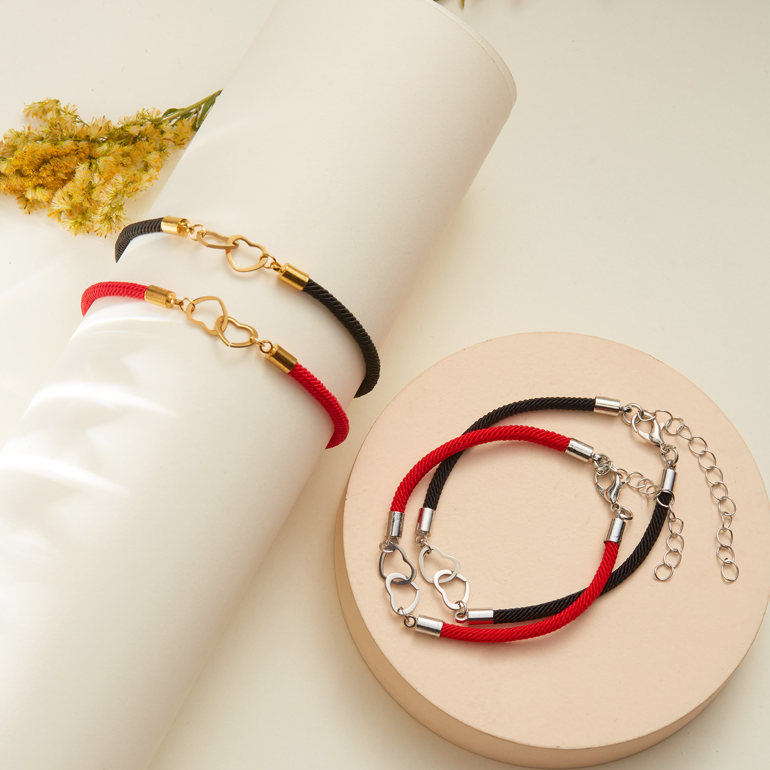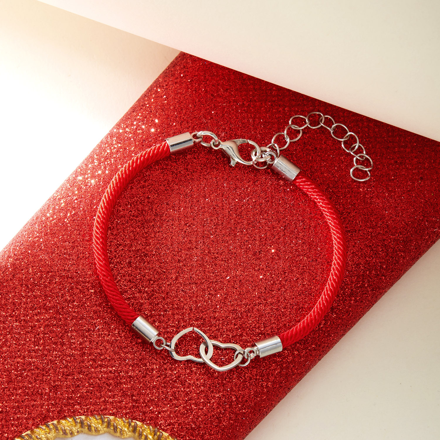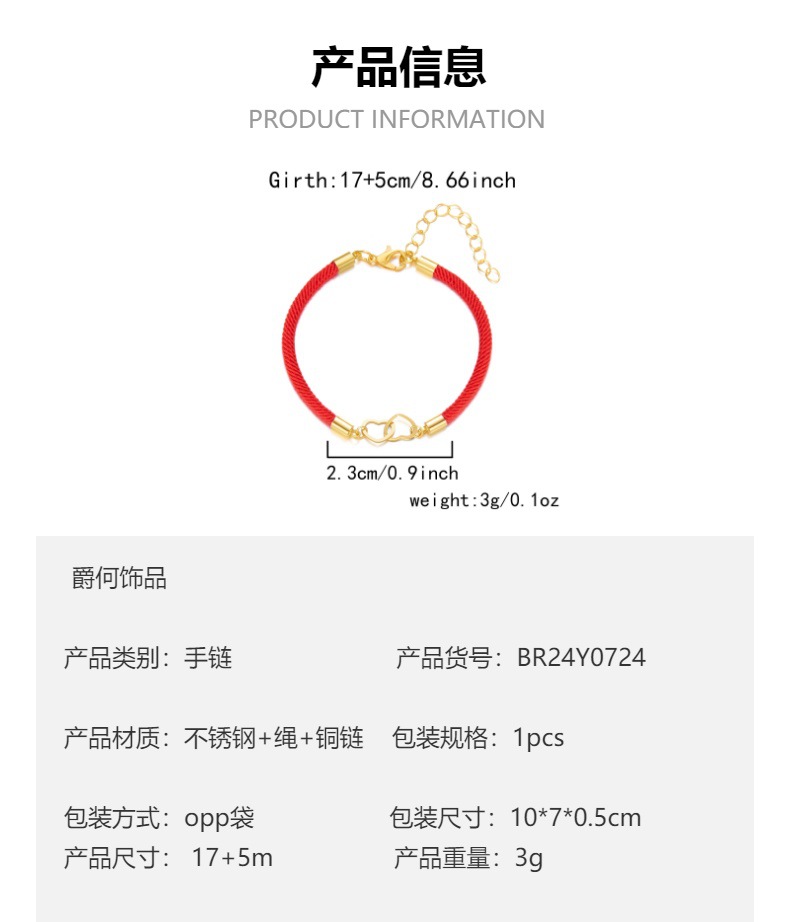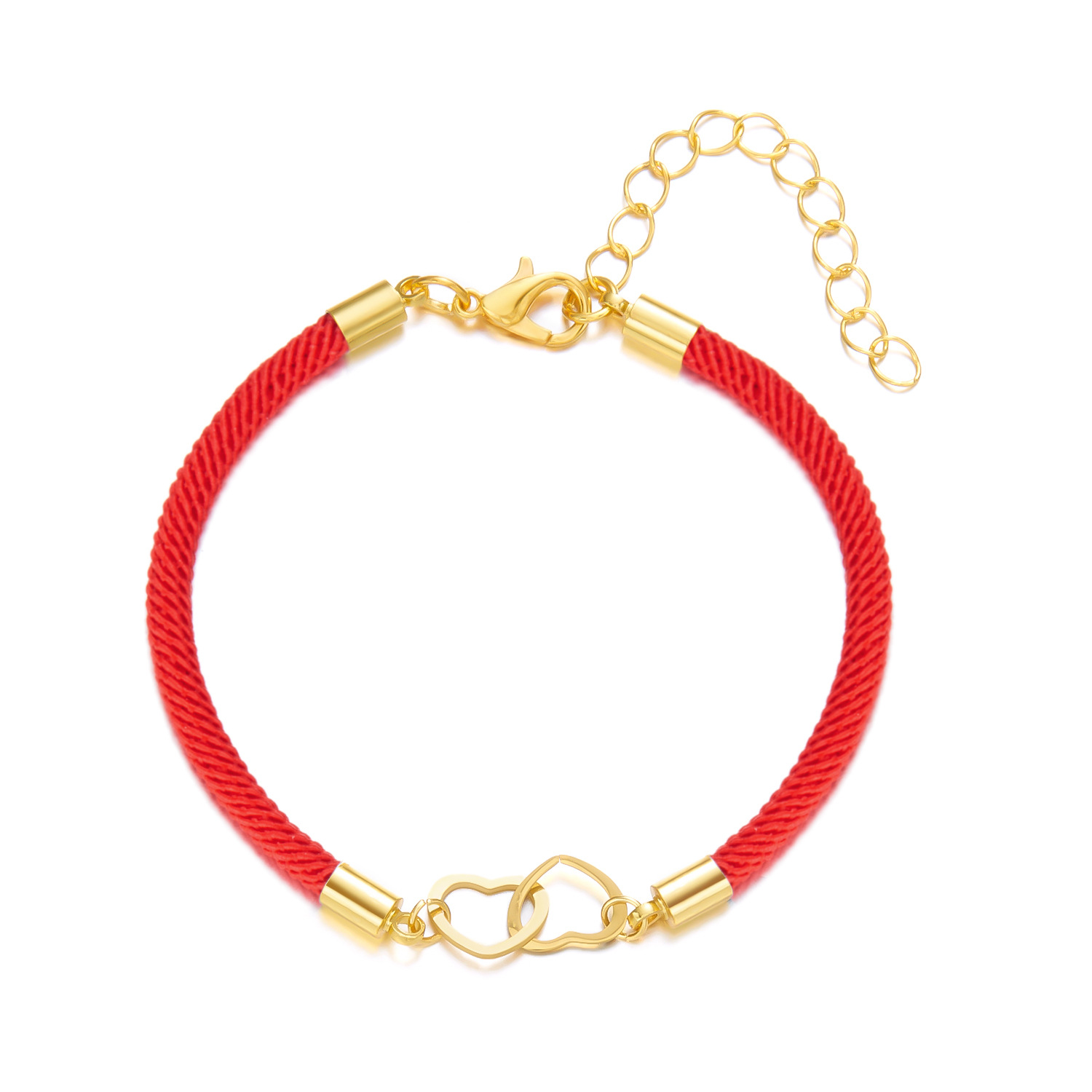 Cross-border New Woven Love Bracelet Stainless Steel Double-ring Peach Heart Red Rope Heart to Heart Couple Lucky Bracelet Gift
