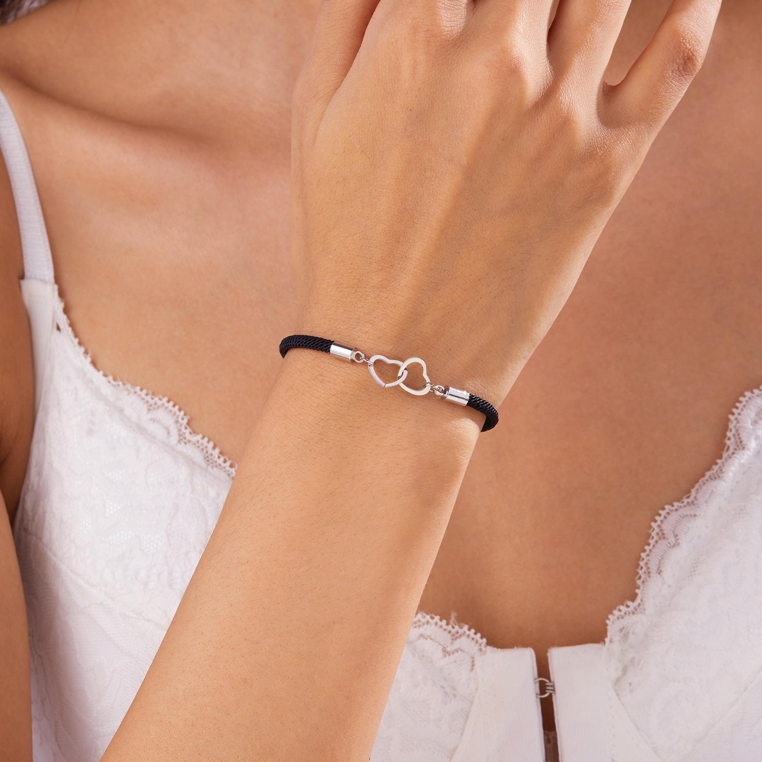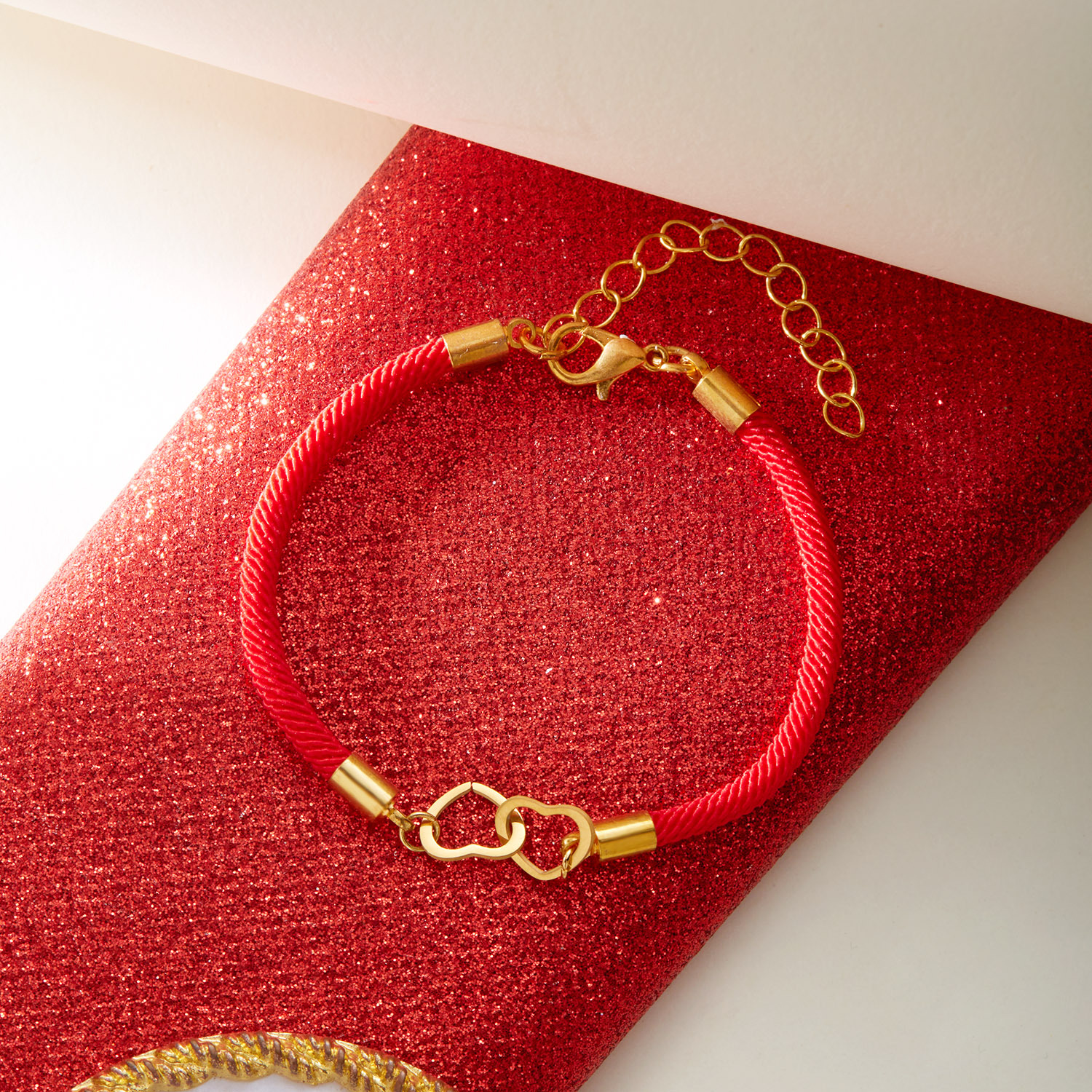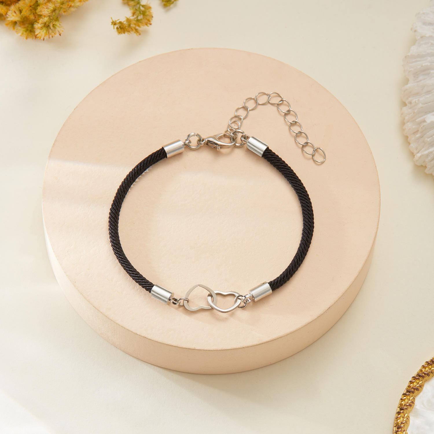 Cross-border New Woven Love Bracelet Stainless Steel Double-ring Peach Heart Red Rope Heart to Heart Couple Lucky Bracelet Gift