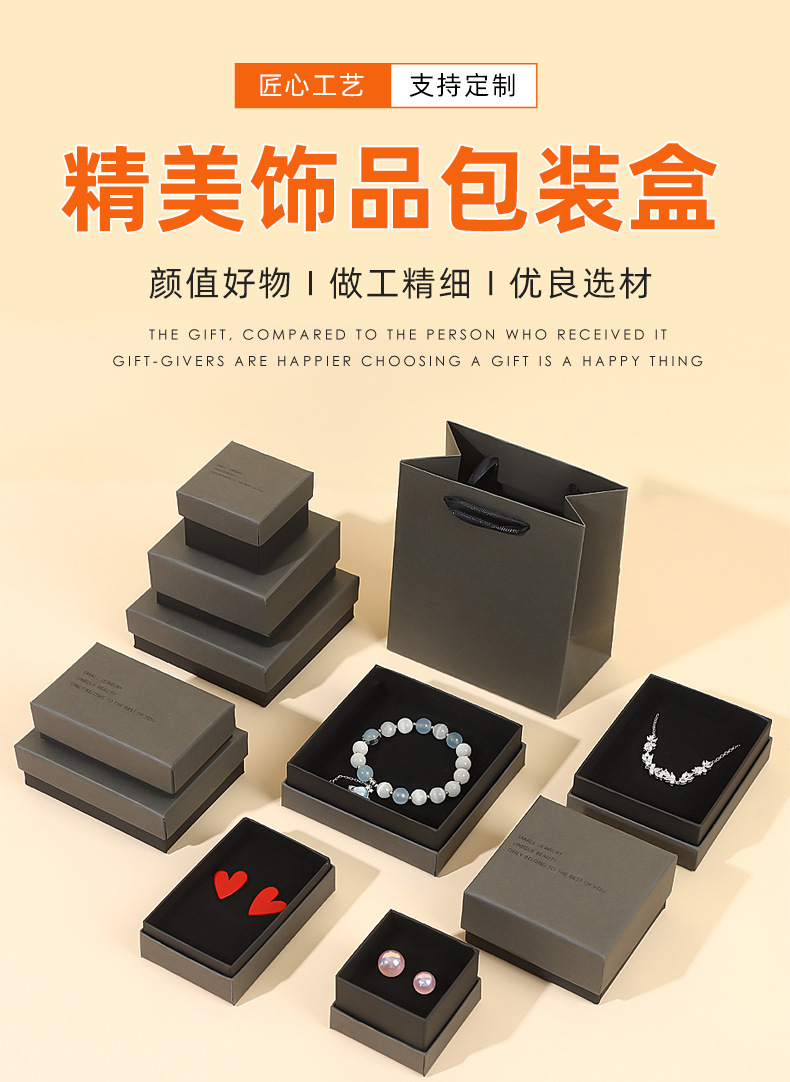 Specification model: Black and gray; 7.3*7.3*3.7 necklace/earring box with sponge