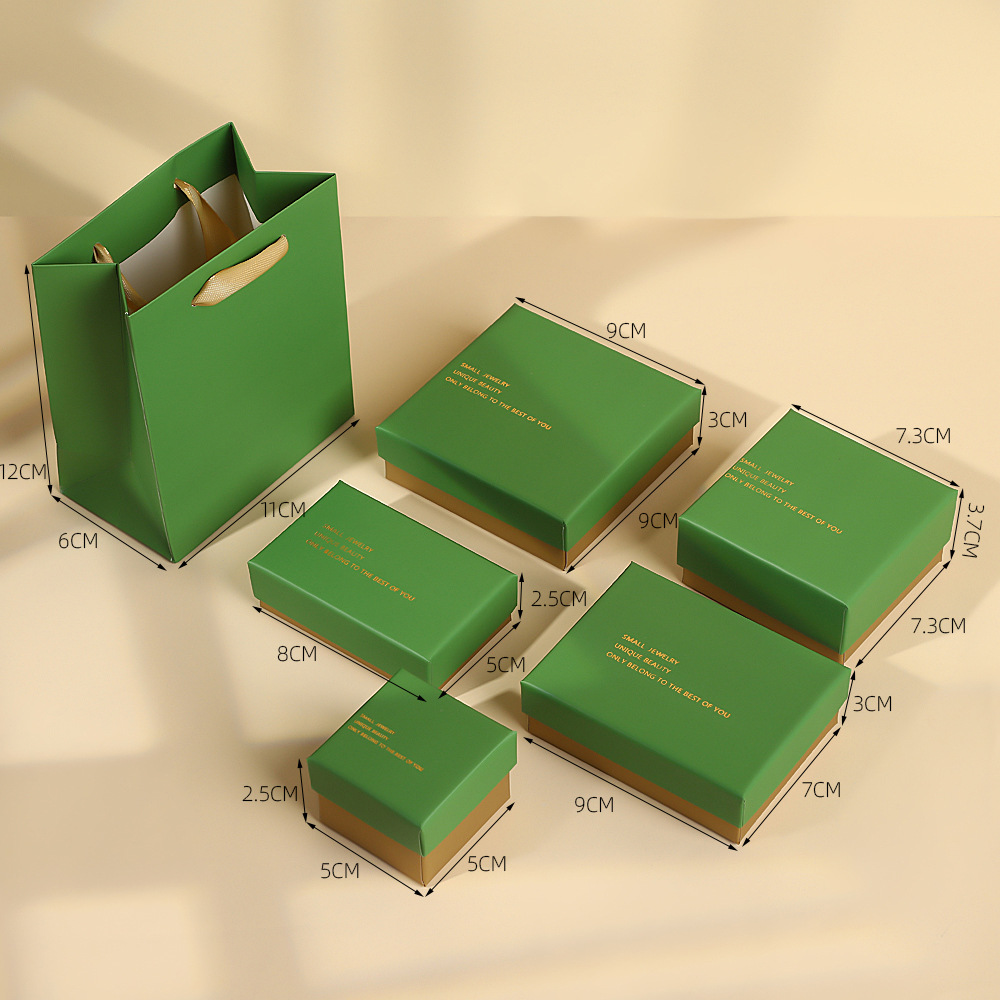 Specification model: Green gold; 9*7*3 earrings/pendant box with sponge
