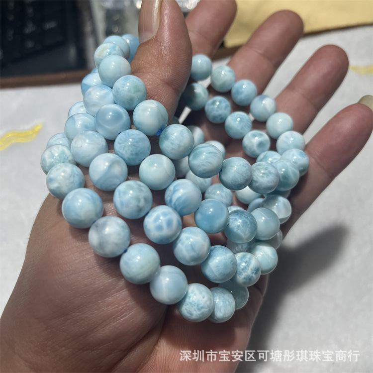 Natural Dominican Sea Stripe Stone 10mm Handstring Texture Clear Turtle Back Pattern Clear Lalima Round Bead Hand Wholesale