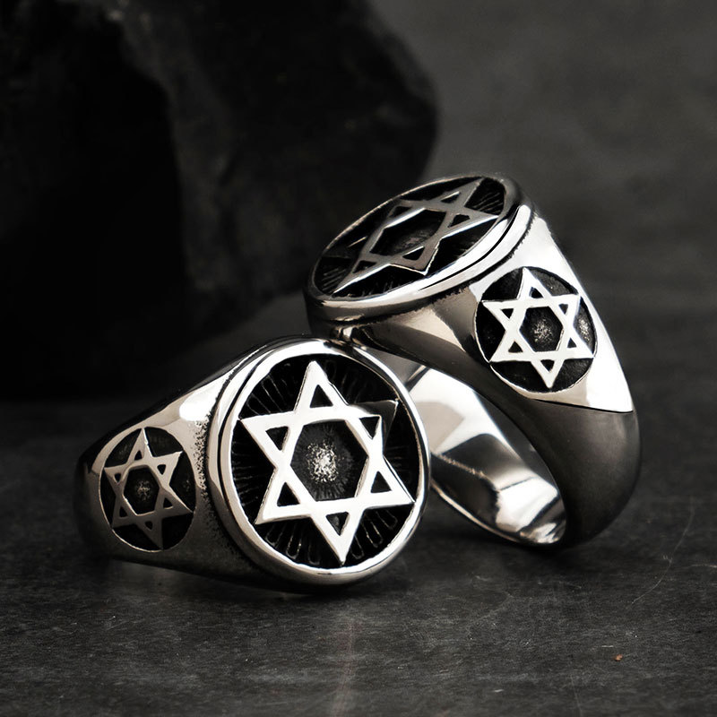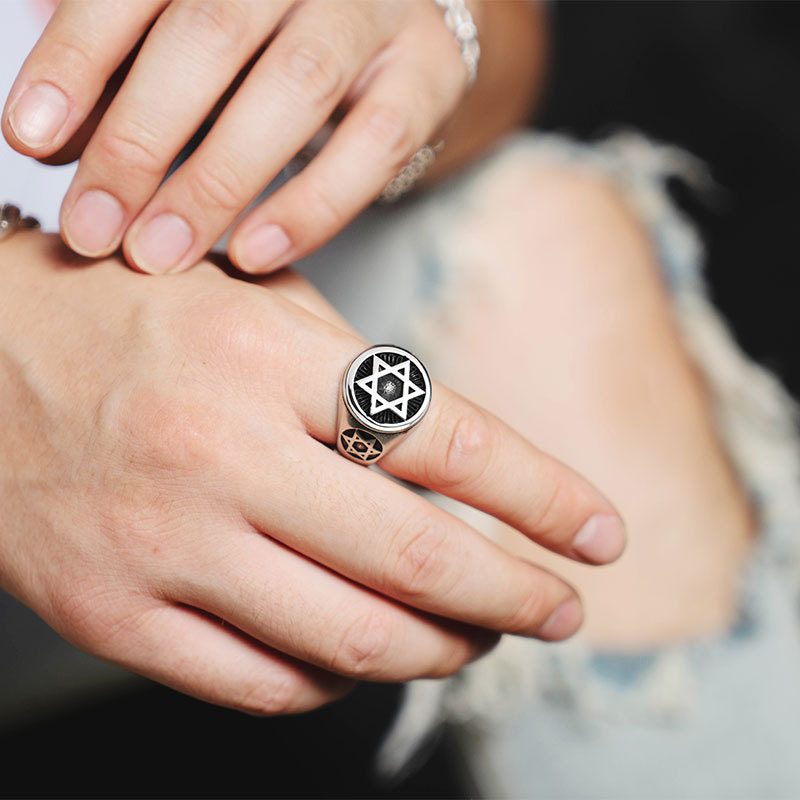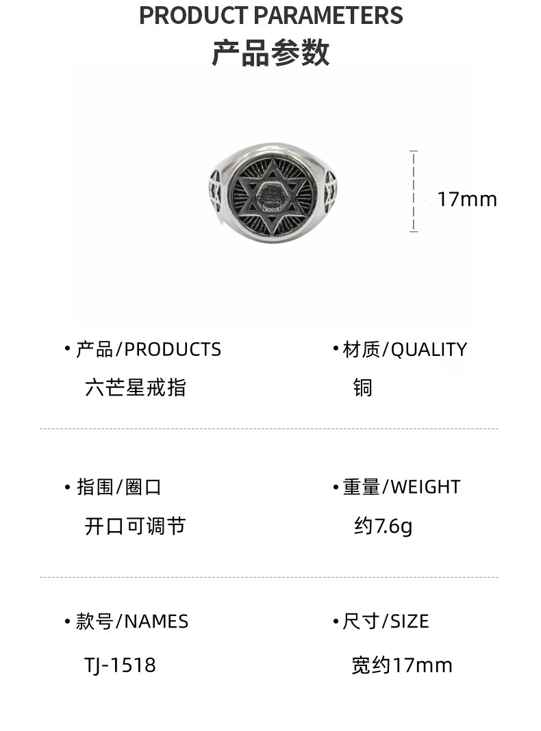 Tygu European and American Retro Six-pointed Star Ins Ring Men's Trendy Hip-hop Domineering Single Ring Thai Silver Index Finger Open Ring