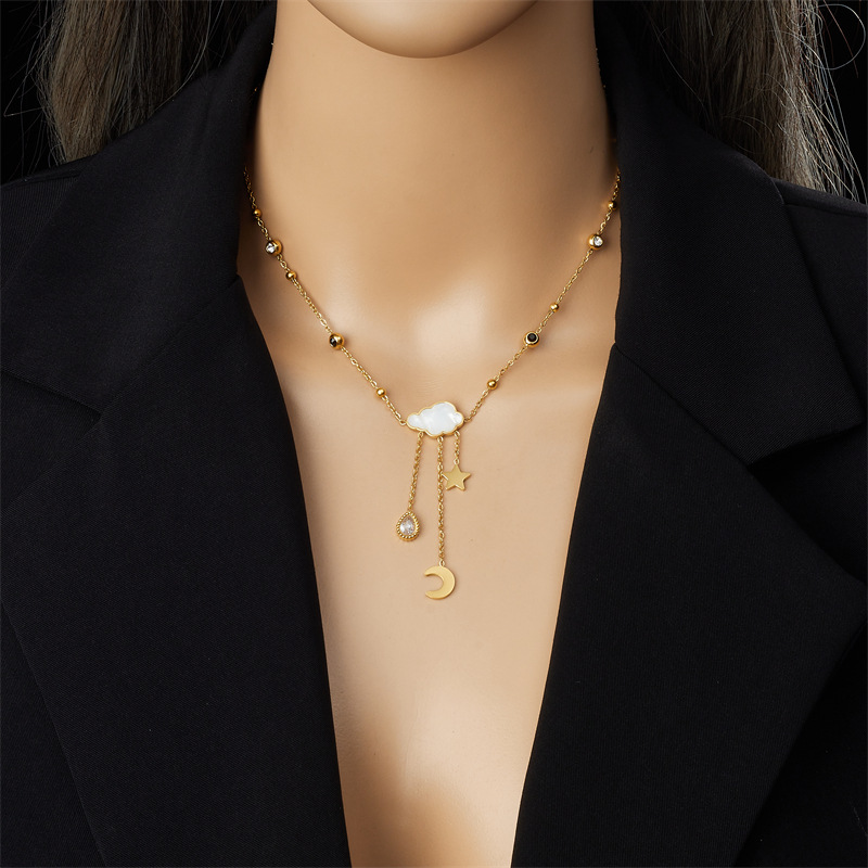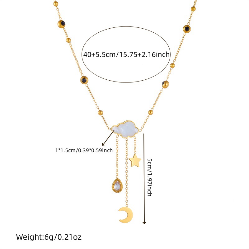 Korean-style White Bay Cloud Star Moon Necklace Long Tassel Earrings Niche Fashion suit Stainless Steel Color Preservation Jewelry