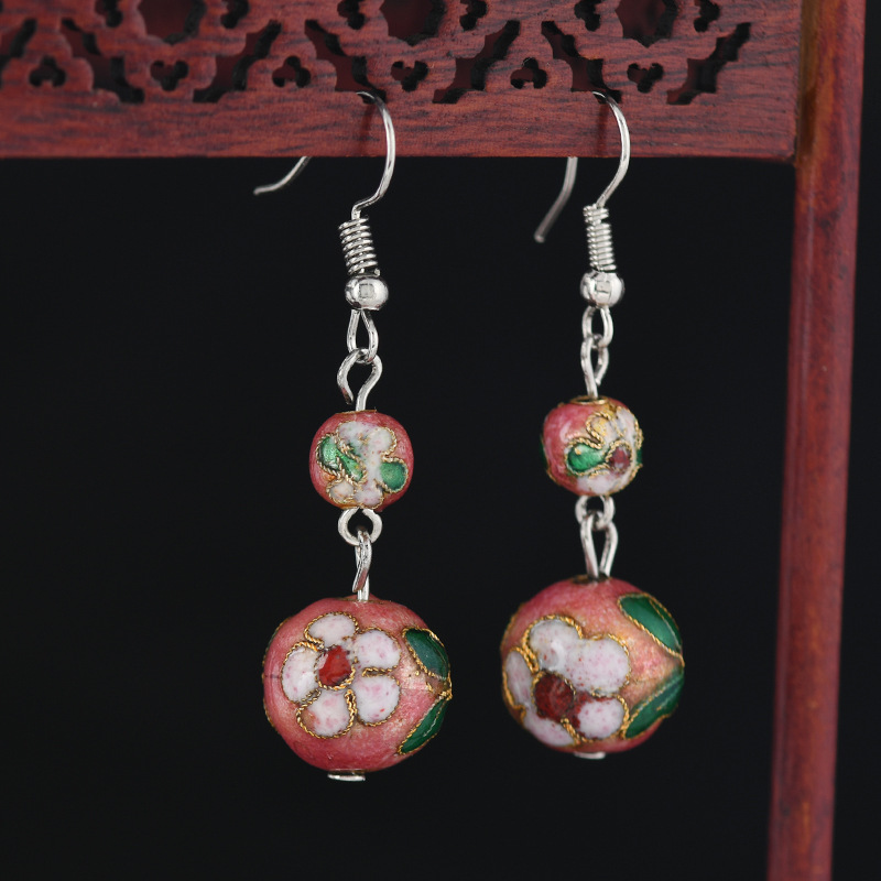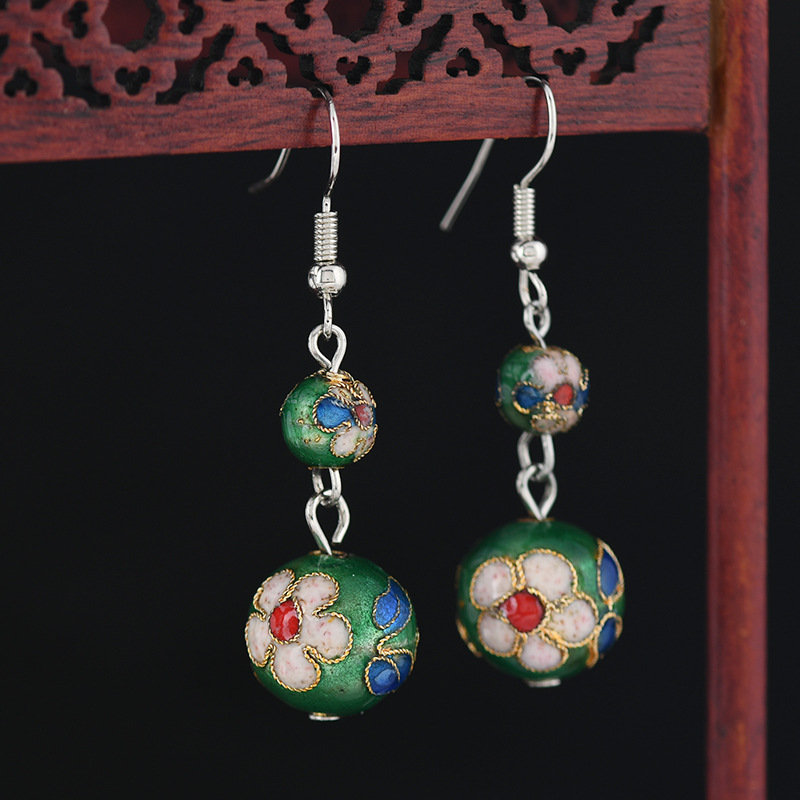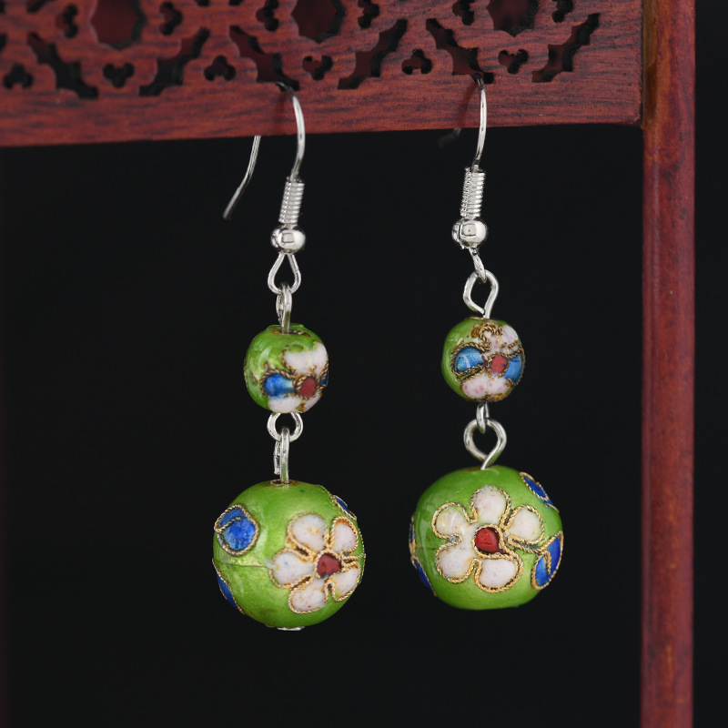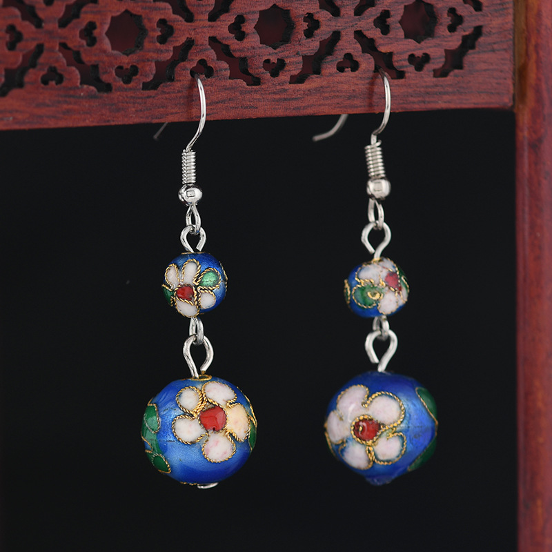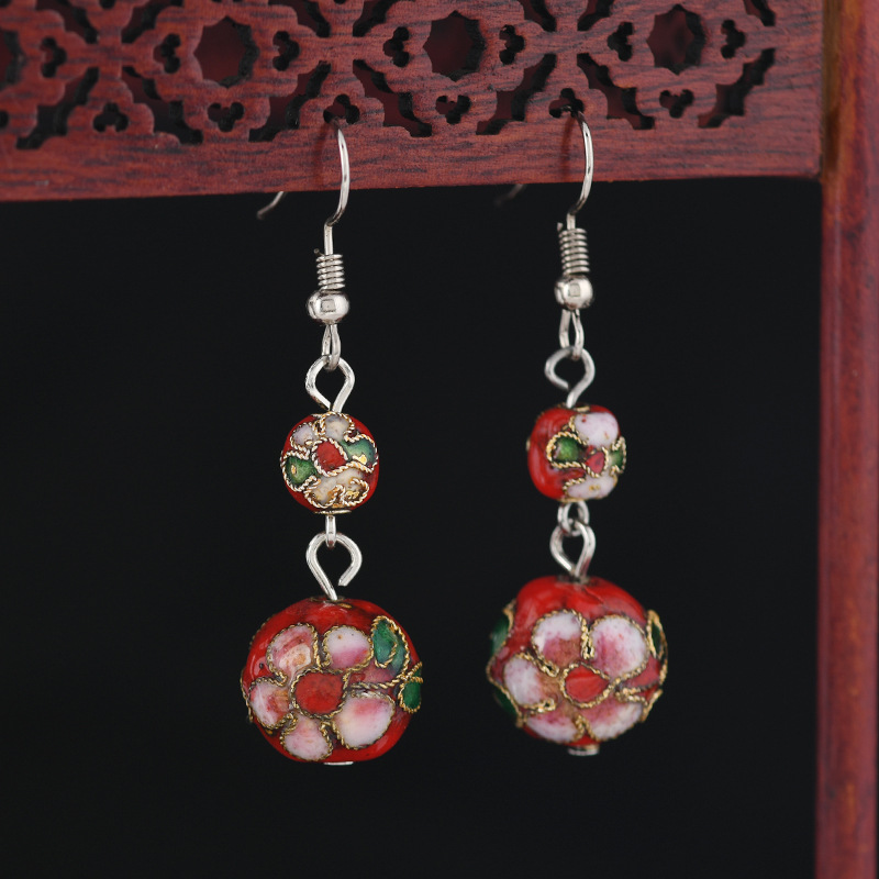 Cloisonne Chinese Vintage Round Bead Earrings Handmade Cloisonne Enamel Earrings Women's Simple National Style Cheongsam Earrings 14mm