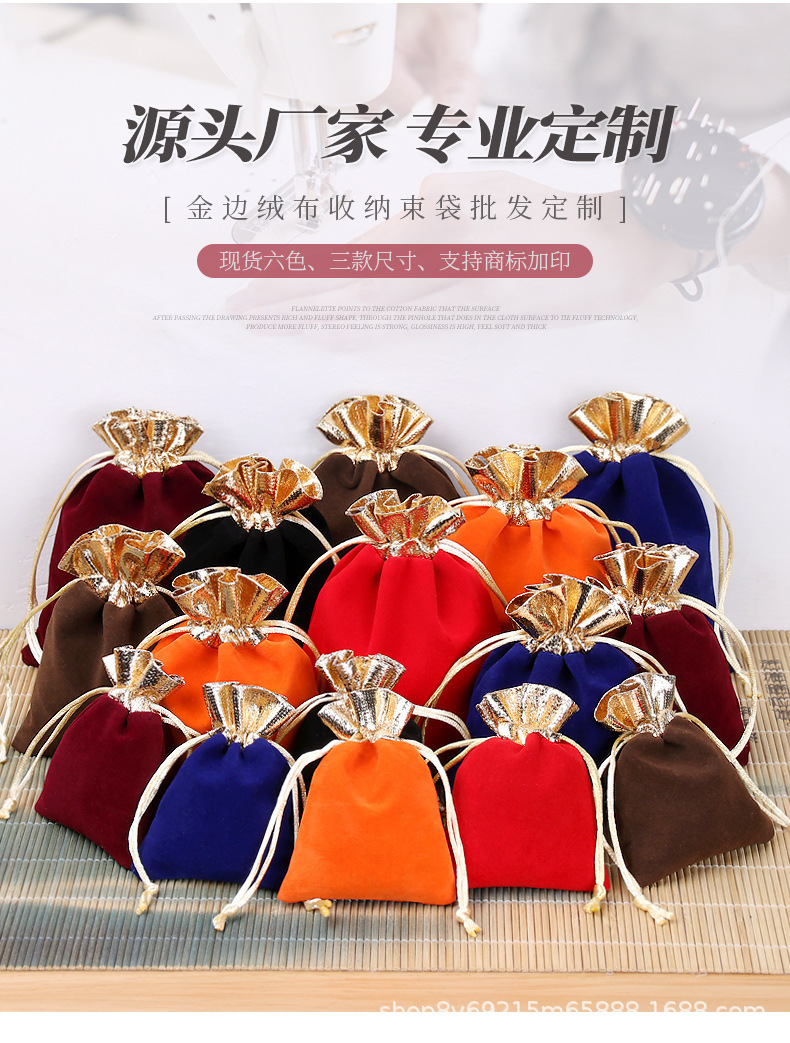 Velvet Jewelry Pouch, Brocade Bag, Gold-Edged Storage Bag, Drawstring Pouch, Gift Packaging Velvet Bag