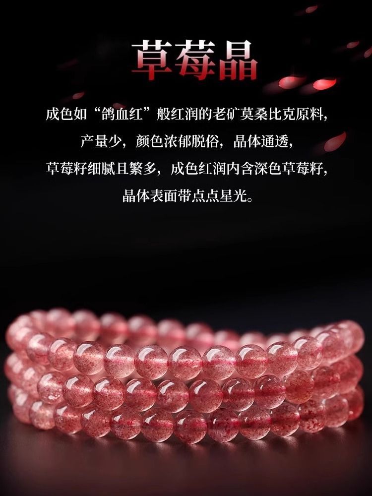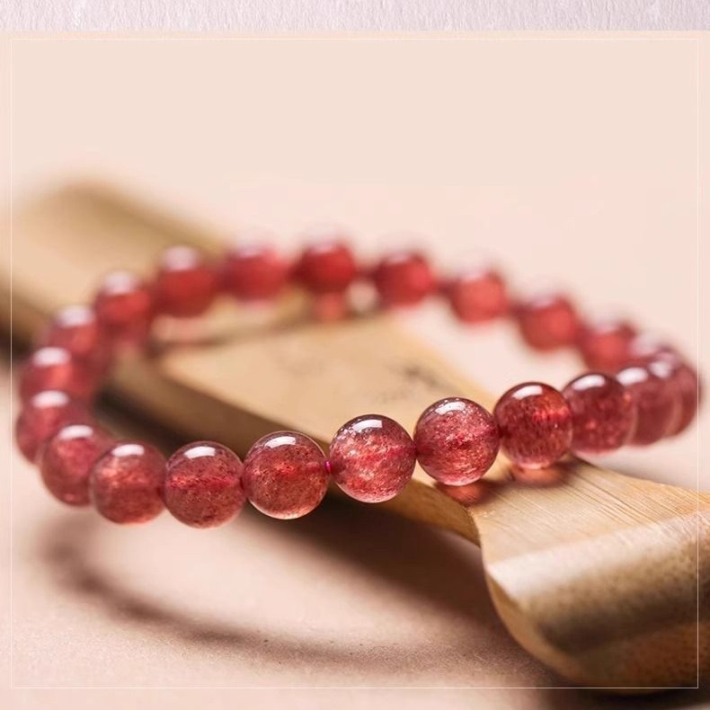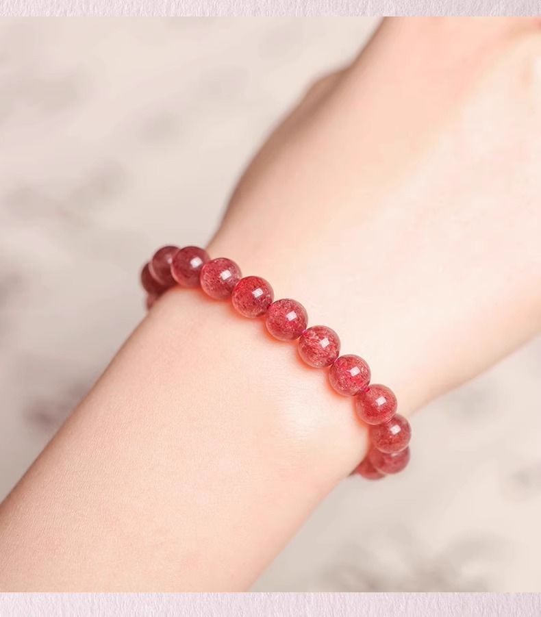 Pigeon Red Strawberry Crystal Female Red Strawberry Stone Transfer Single Circle Bracelet Crystal Bracelet Sweet Girl Natural Stone