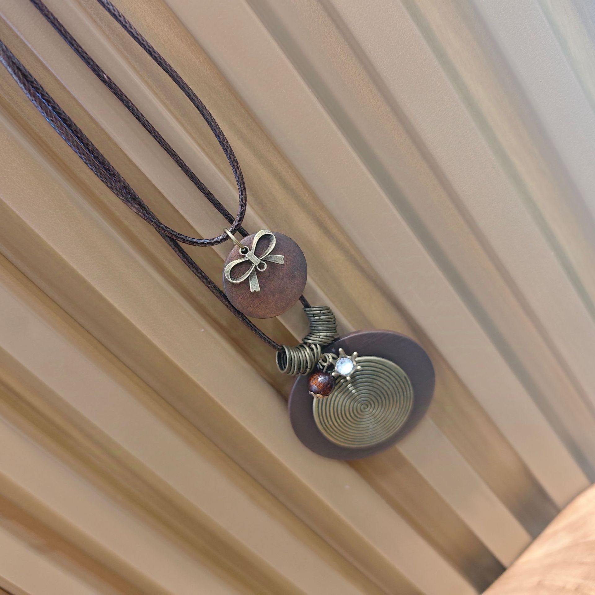 Color: Bronze threaded disc necklace