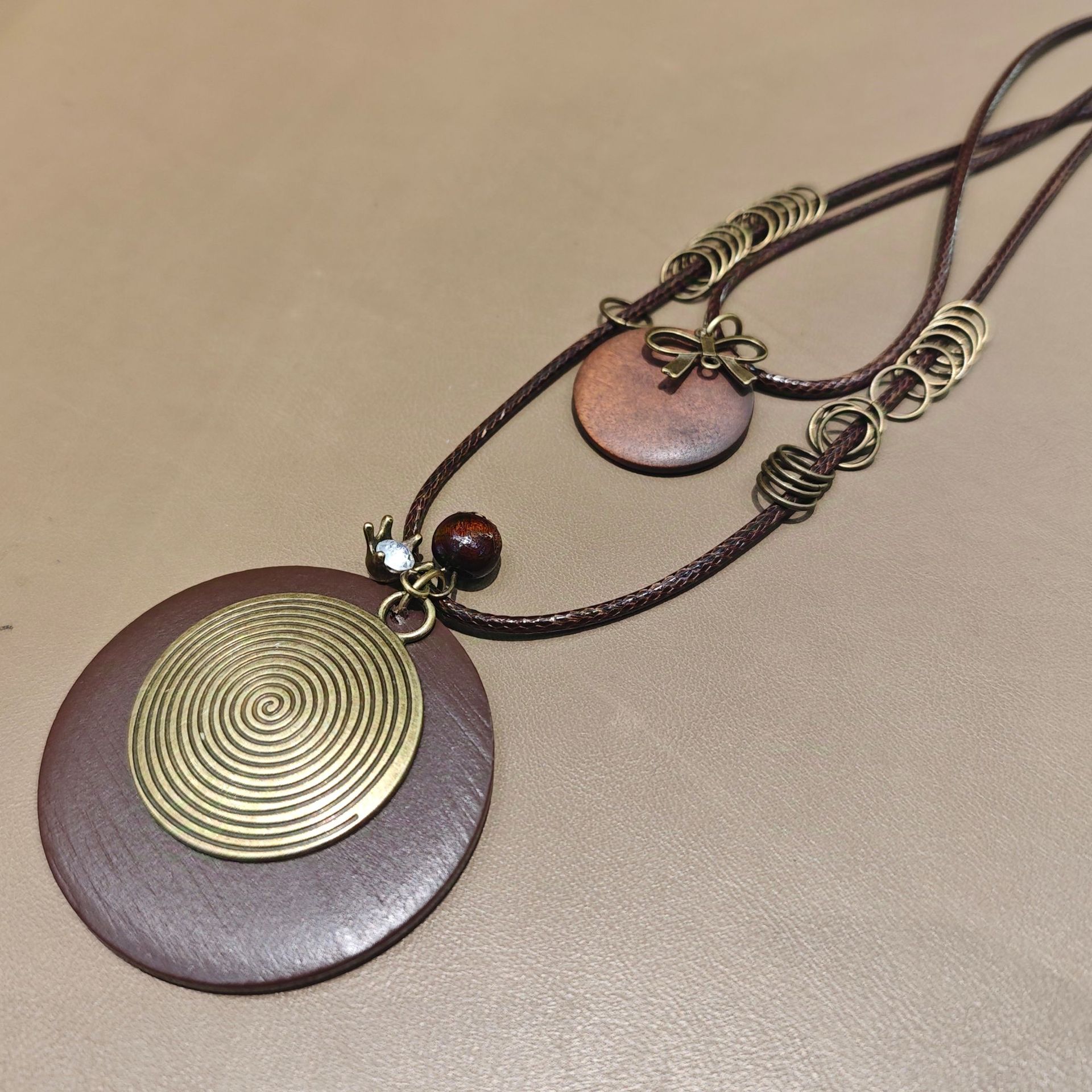 Cross-border Zen Bronze Thread Disc Long Stacked Necklace Women's Retro Ethnic Woolen Chain Bohemian Accessories